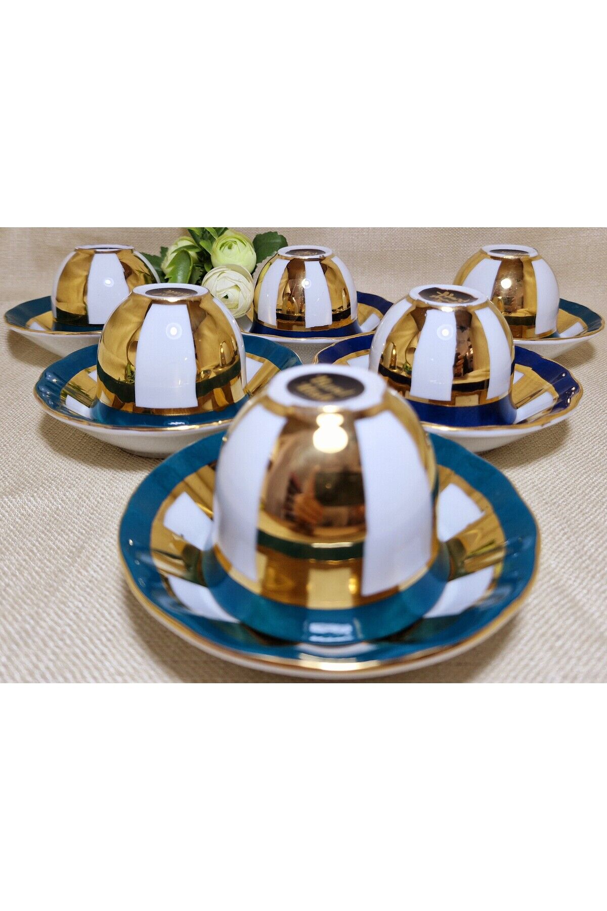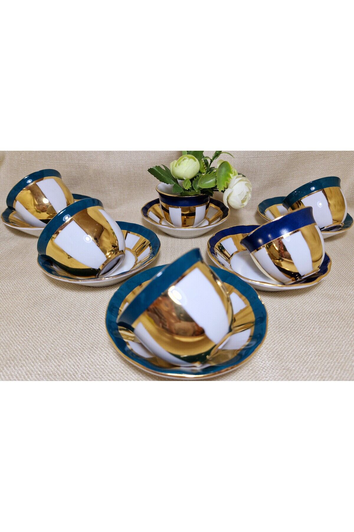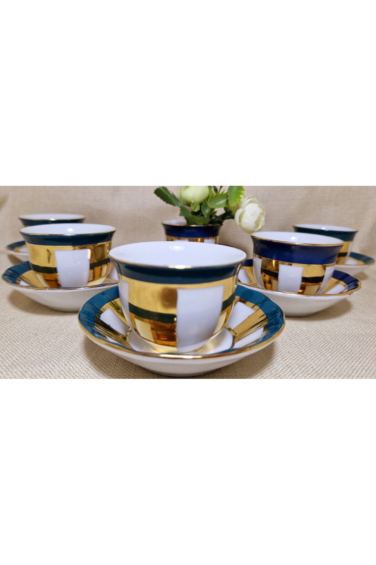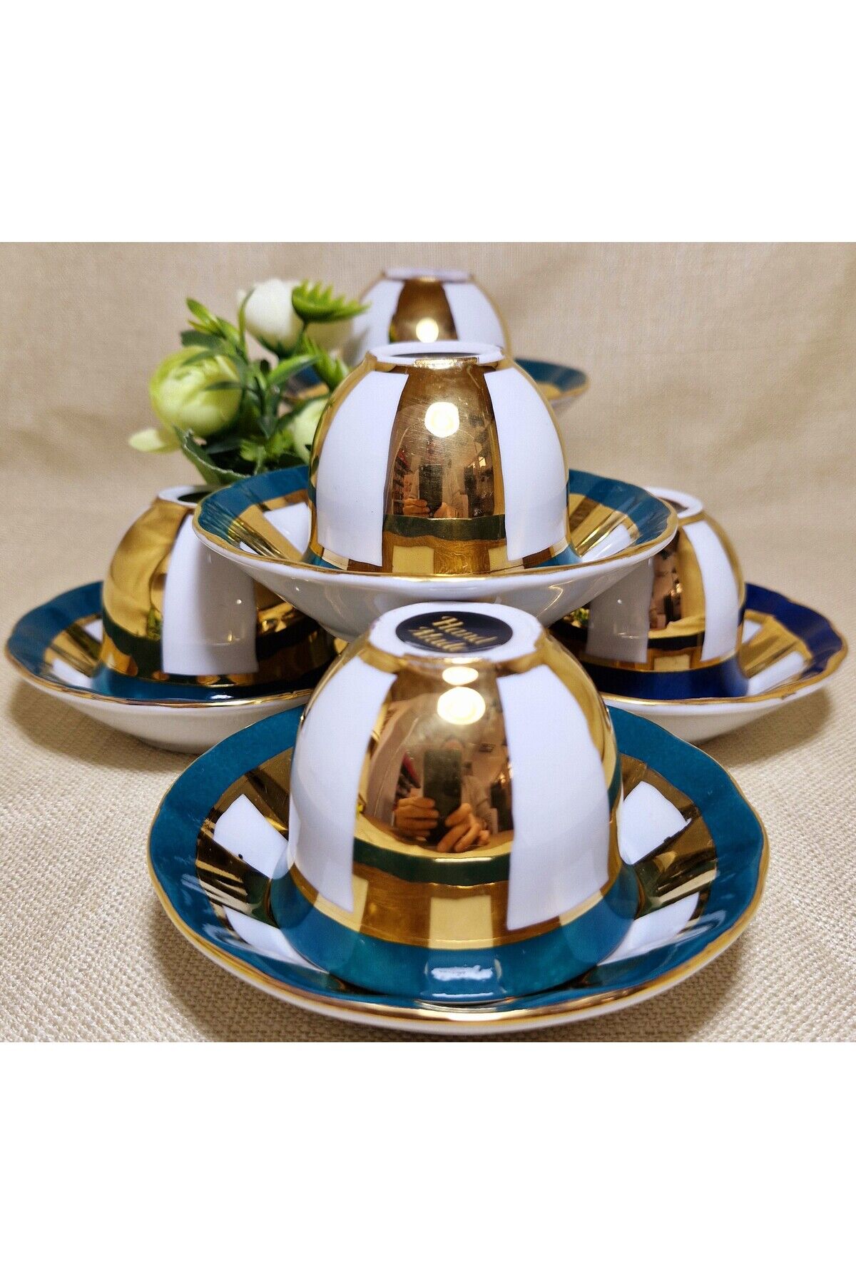 Sizin için özel olarak seçilen bu eşsiz ALTIN HARMONİ Porselen El Boyama 6 Adet Mırra seti, zarif ve göz alıcı bir masa dekorasyonunu tamamlamanız için mükemmel bir seçenektir.; Ürünlerimiz tamamen elde boyanmış olup 24 ayar altınla bezen mistir.; Her bir parça elde boyanmış ve özenle süslenmiştir, bu nedenle her biri benzersizdir.; Ürün İçeriği: 6 Adet Mırra 6 Adet Mırra Tabağı Malzeme: Yüksek kaliteli Porselen Bu şahane set, sadece zarif bir sofra düzenlemesi sağlamakla kalmaz, aynı zamanda özel günlerde veya özel misafirleriniz için muhteşem bir hediye seçeneği sunar.; Temizlik Talimatları: Bu porselen ürünler, uzun ömürlerini ve mükemmel görünümlerini korumak için bulaşık makinesinde yıkanmamalıdır.; Lütfen elde yıkama veya yumuşak bir bezle temizlik yapmayı tercih edin.; Porselen El Boyama Mırra 6'lı seti ile sofranızı dönüştürün ve misafirlerinizi büyüleyin.
