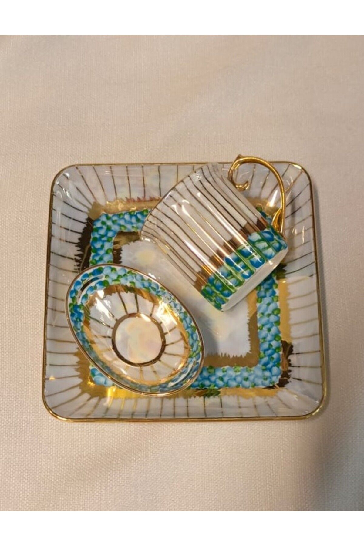 ARNİ PORSELEN EL BOYAMA TEK KİŞİLİK KAHVE FİNCAN SETİ