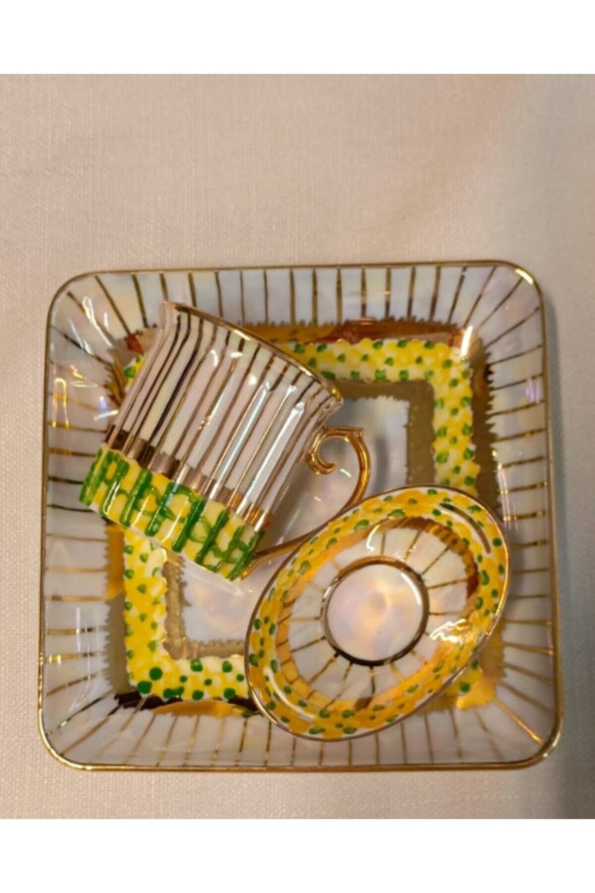 ARNİ PORSELEN EL BOYAMA TEK KİŞİLİK KAHVE FİNCAN SETİ