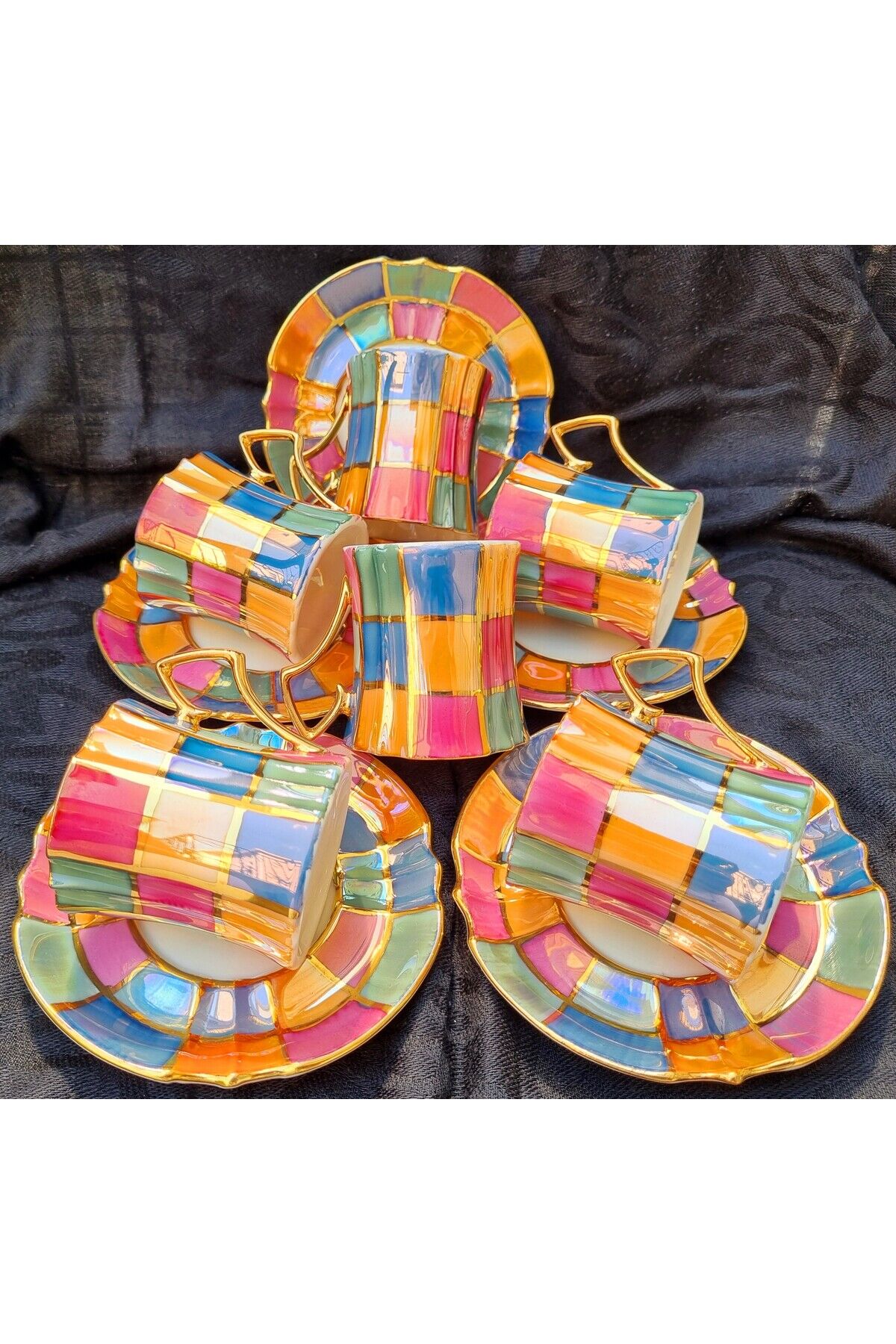 Porselen malzemesi sayesinde uzun ömürlü ve dayanıklı kullanım sunar; Modern tasarımı ile mutfak dekorasyonunuza şık bir dokunuş katar; Altı kişilik kapasitesi, arkadaşlarınız veya ailenizle keyifli kahve sohbetleri için idealdir;