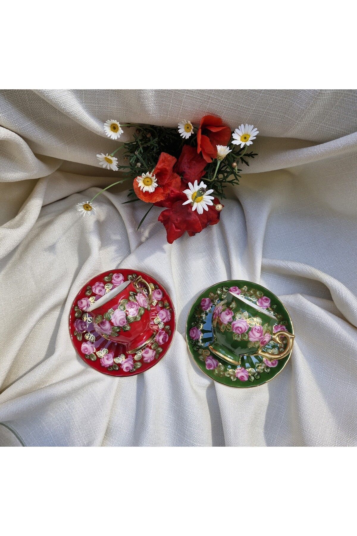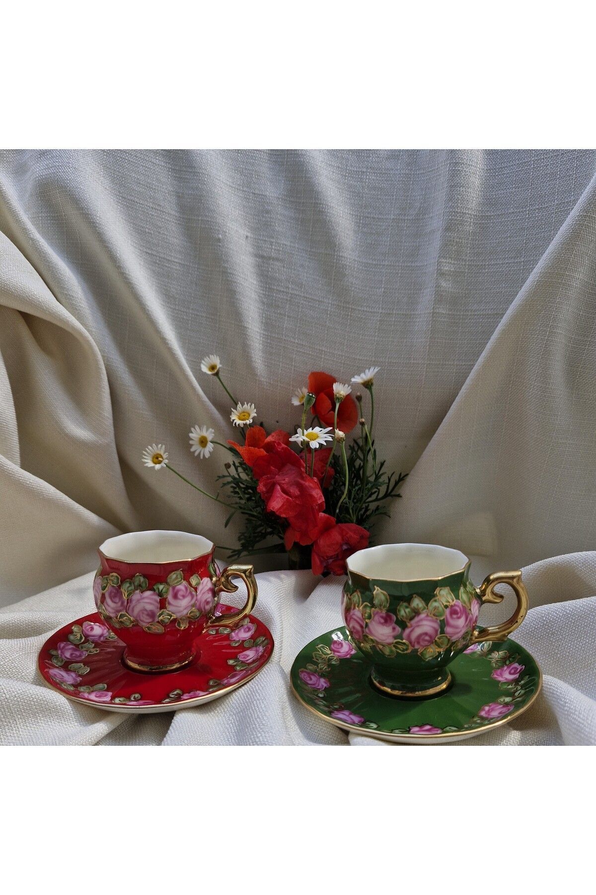 Bergen Porselen El Boyaması 2li Fincan Takımı
