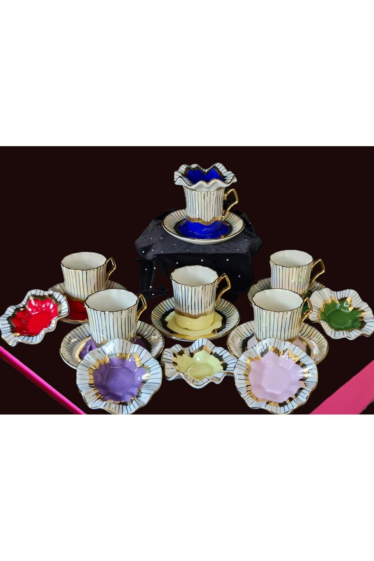 BİLO PORSELEN EL BOYAMA KAHVE FİNCANI VE LOKUMLUK SETİ