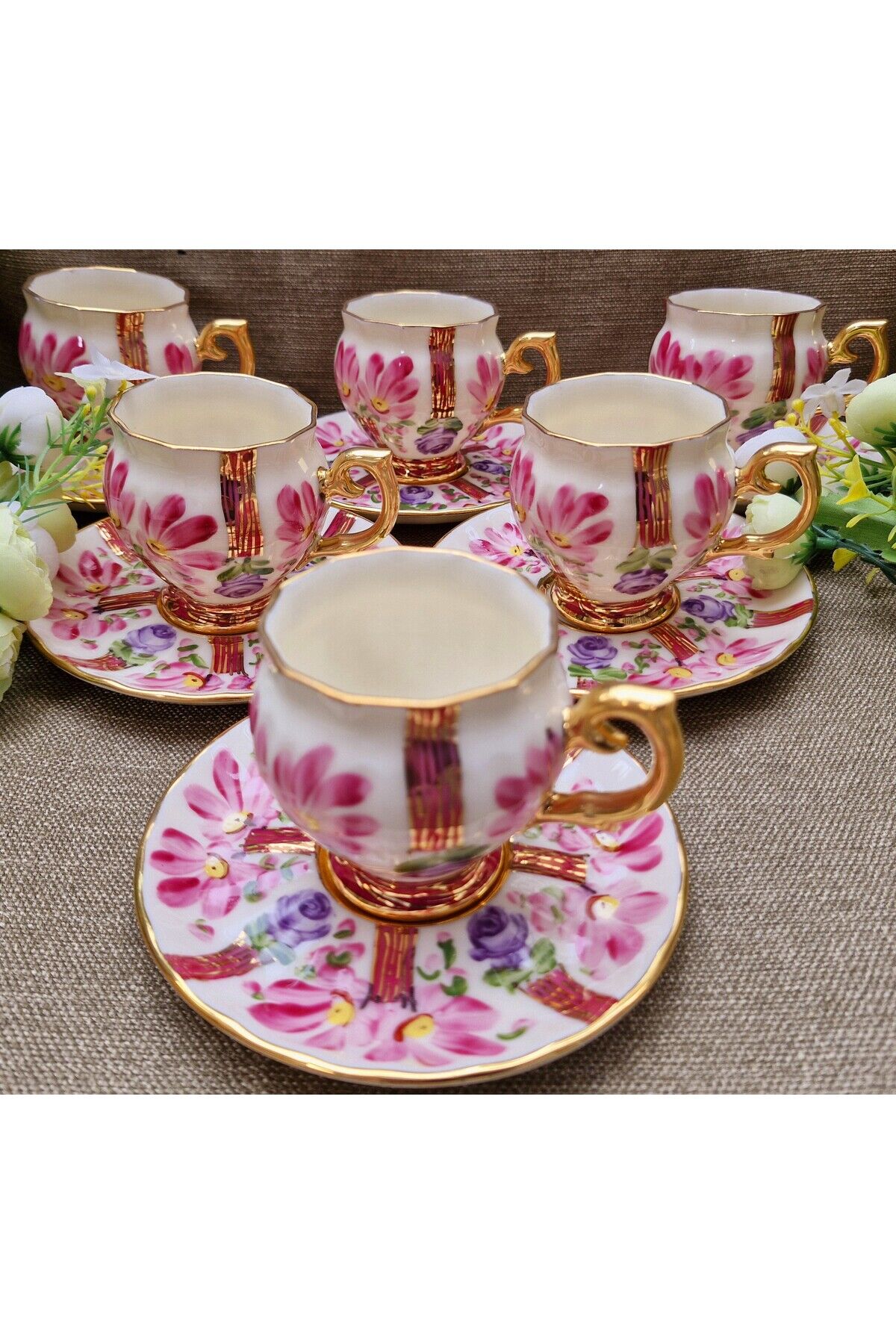 PORSELEN EL BOYAMA KAHVE FİNCAN TAKIMI; ALTI ADET FİNCAN, ALTI ADET FİNCAN TABAĞI.; ÜRÜNLERİMİZ SANATÇILARIMIZ TARAFINDAN TAMAMEN ELDE BOYANMIŞ OLUP 24AYAR ALTINLA ZENGİNLEŞMİŞTİR.; BULAŞIK MAKİNASINA GİRER ANCAK DAHA UZUN ÖMÜRLÜ OLMASI AÇISINDAN TAVSİYE ETMİYORUZ.; KİMYASALLARDAN UZAK TUTUN (ÇAMAŞIRSUYU, KİREÇ SÖKÜCÜ V.; S.; ) GELECEĞİN ANTİKASI