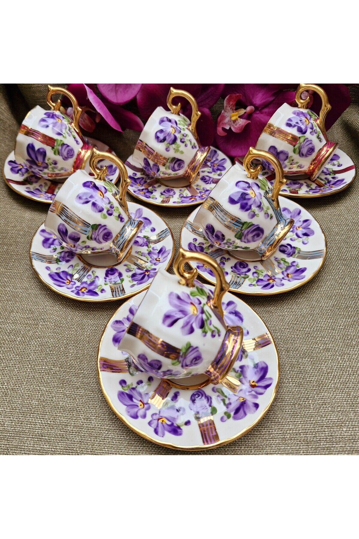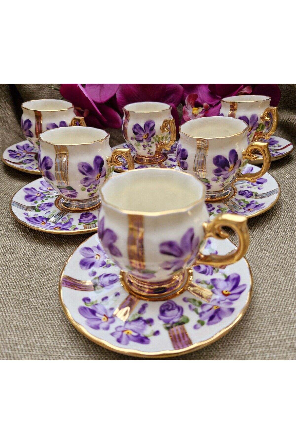 BUKET PORSELEN EL BOYAMA KAHVE FİNCAN TAKIMI