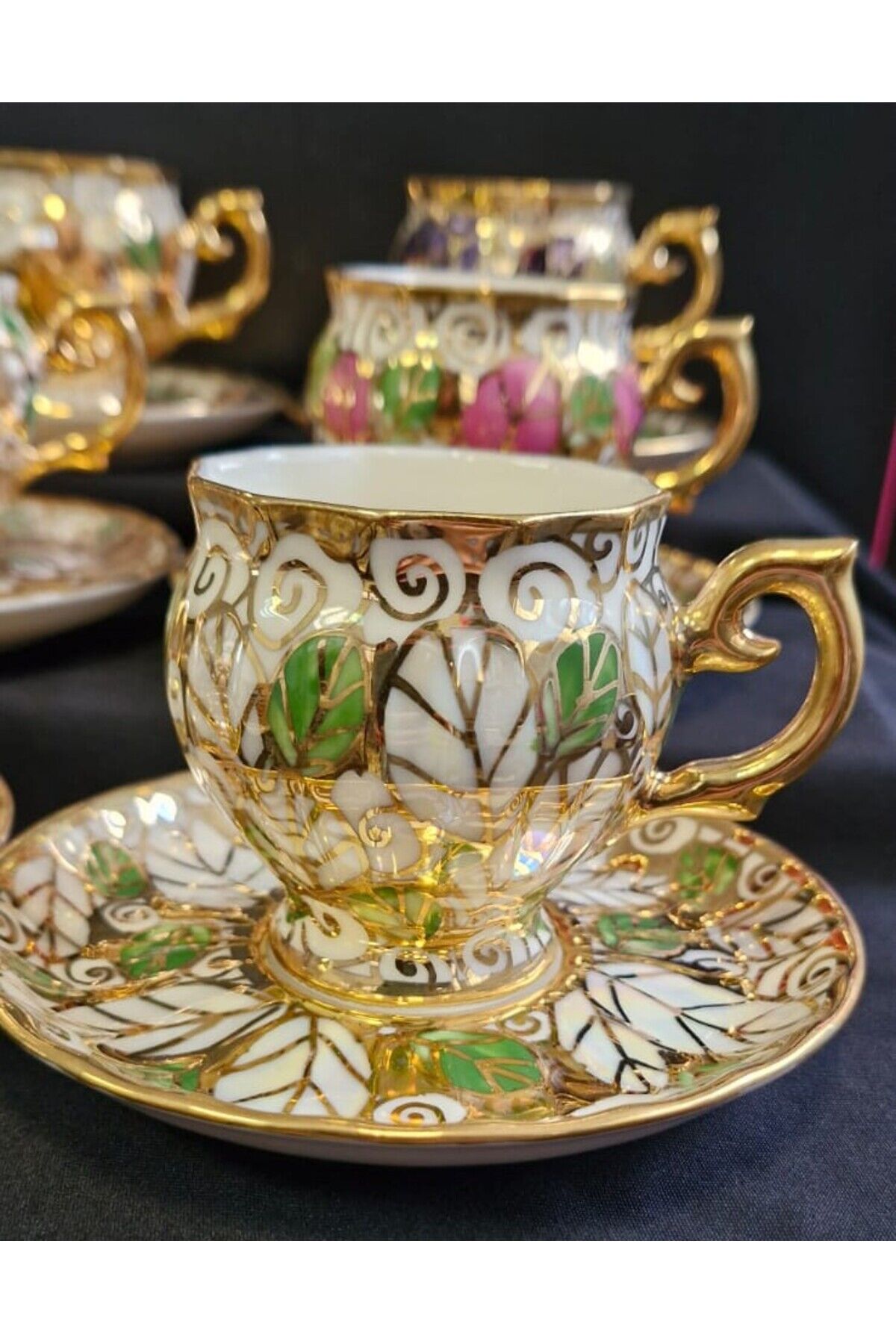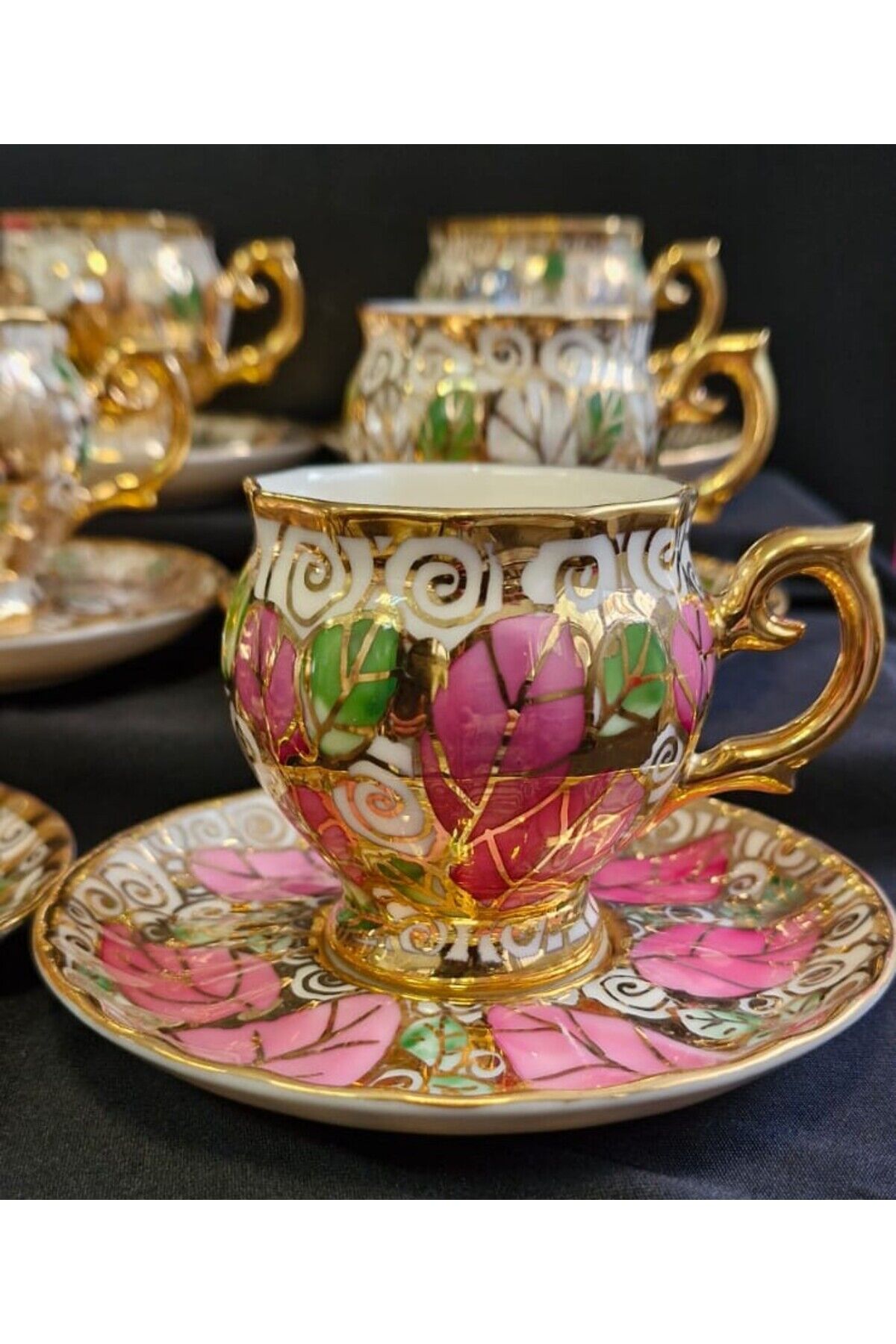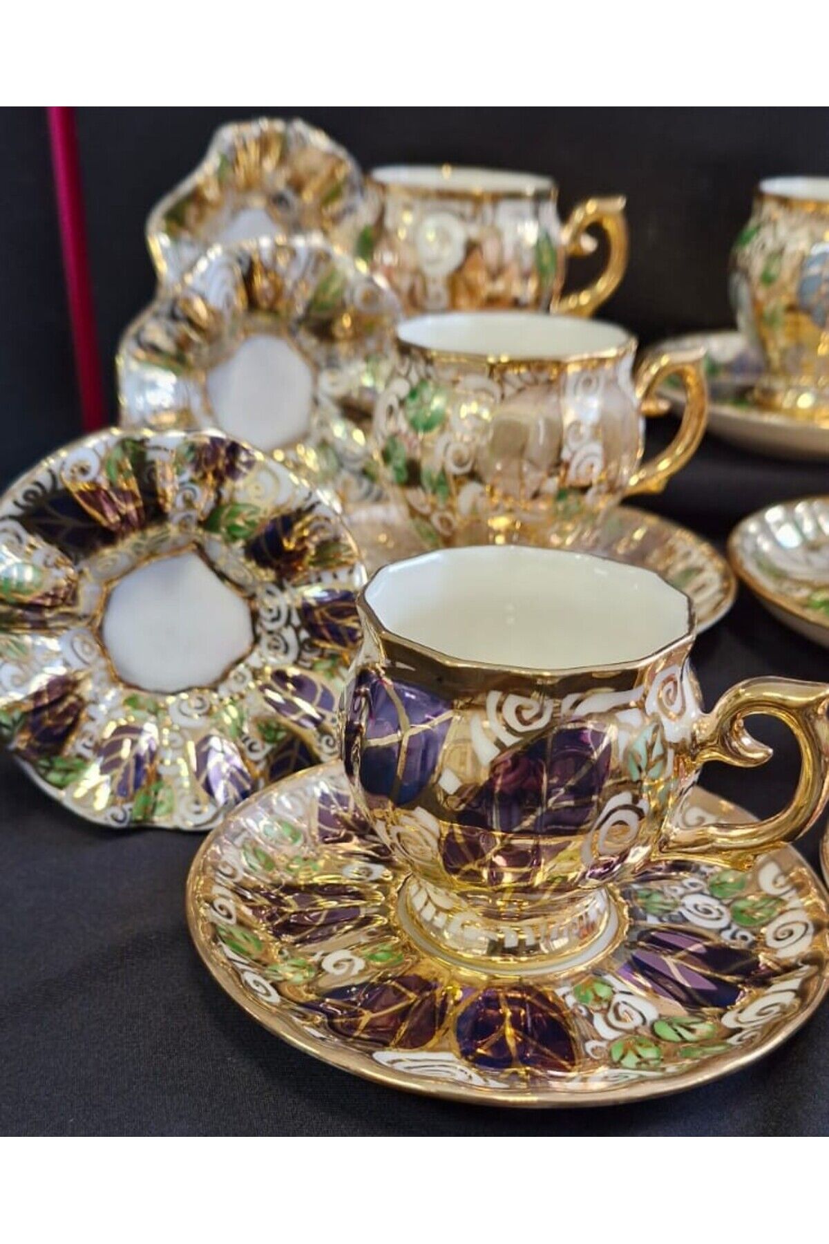 BÜKLÜM PORSELEN EL DEKOR BOYAMA FİNCAN TAKIMI VE LOKUMLUK