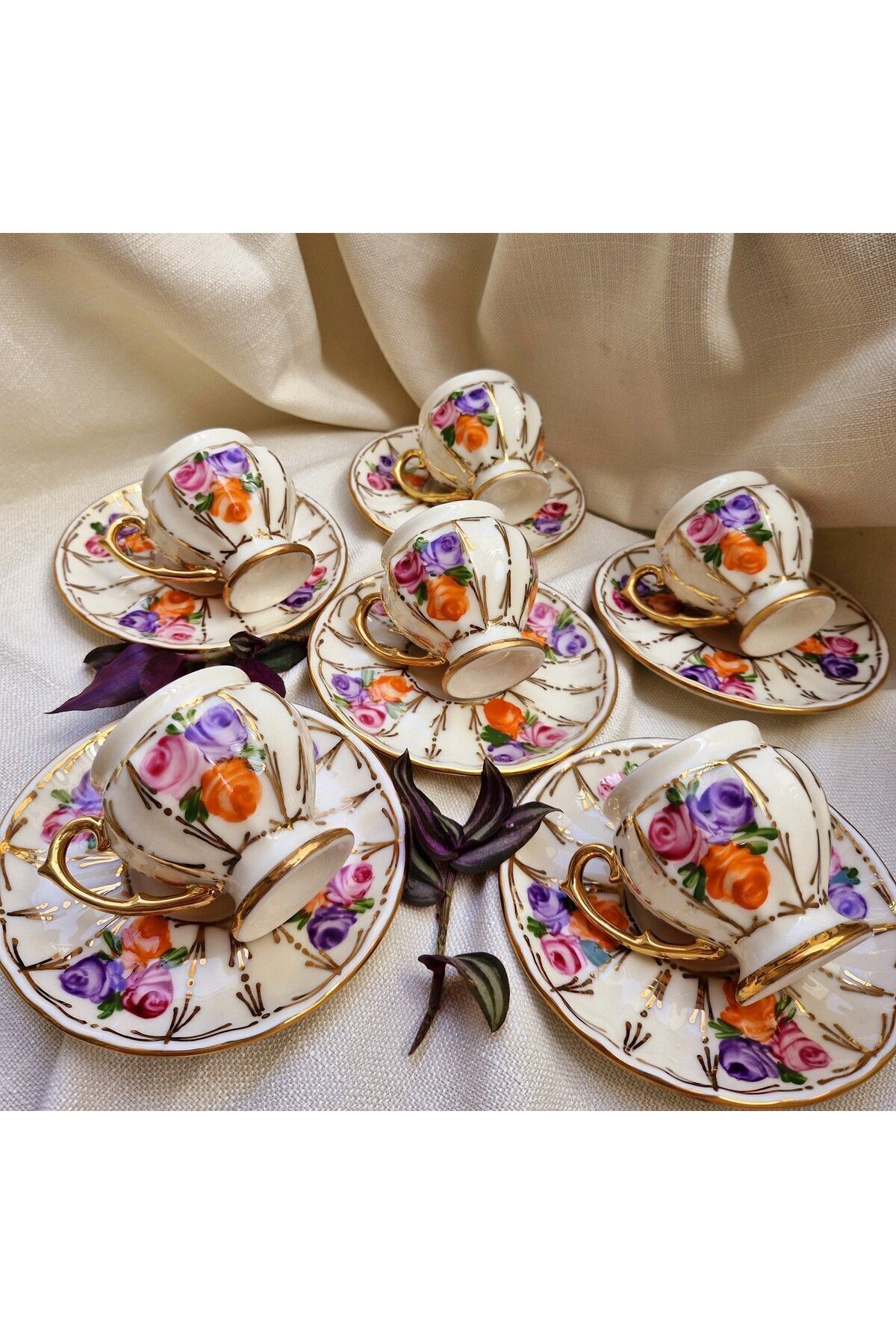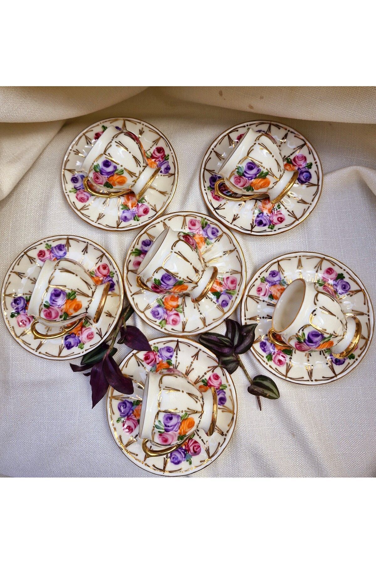ÇİÇEĞİM PORSELEN EL BOYAMA KAHVE FİNCAN TAKIMI