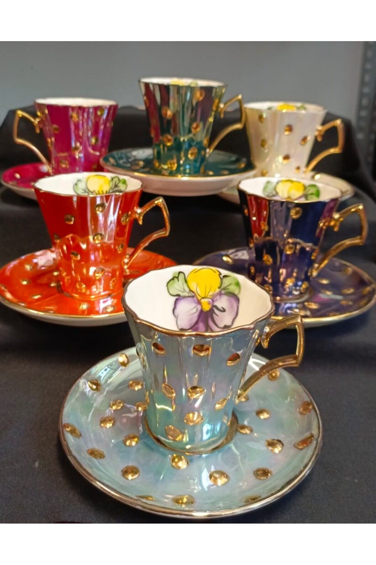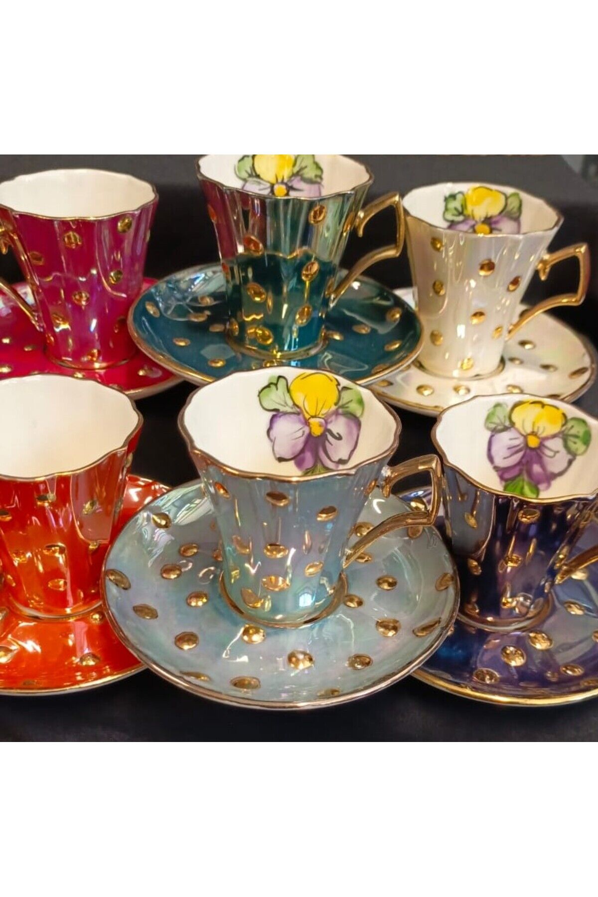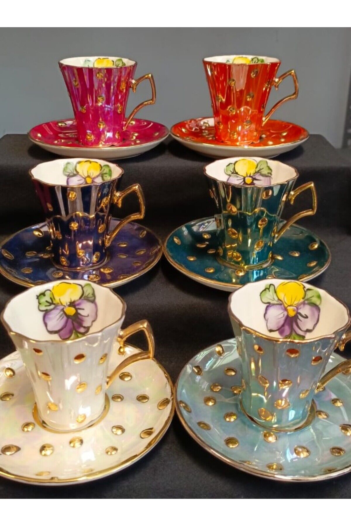DAMLA MENEKŞE PORSELEN EL DEKOR BOYAMA FİNCAN TAKIMI