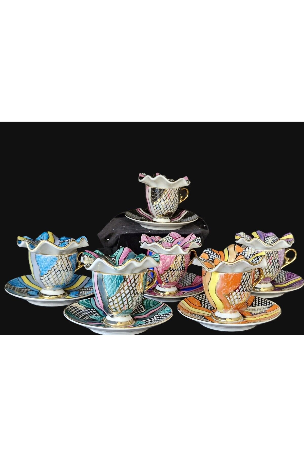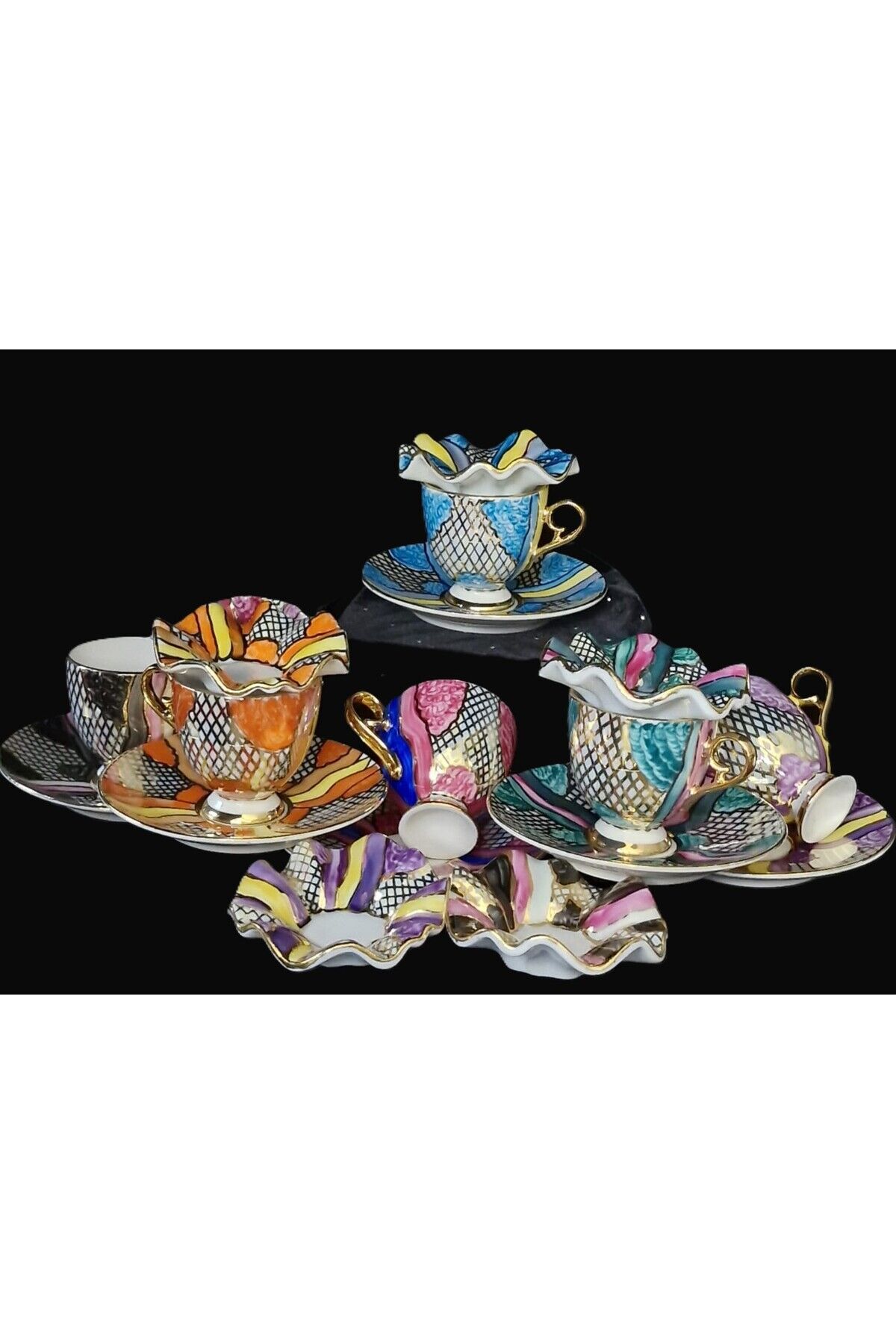 DENİZ KIZI PORSELEN EL BOYAMA KAHVE FİNCANI VE LOKUMLUK SETİ