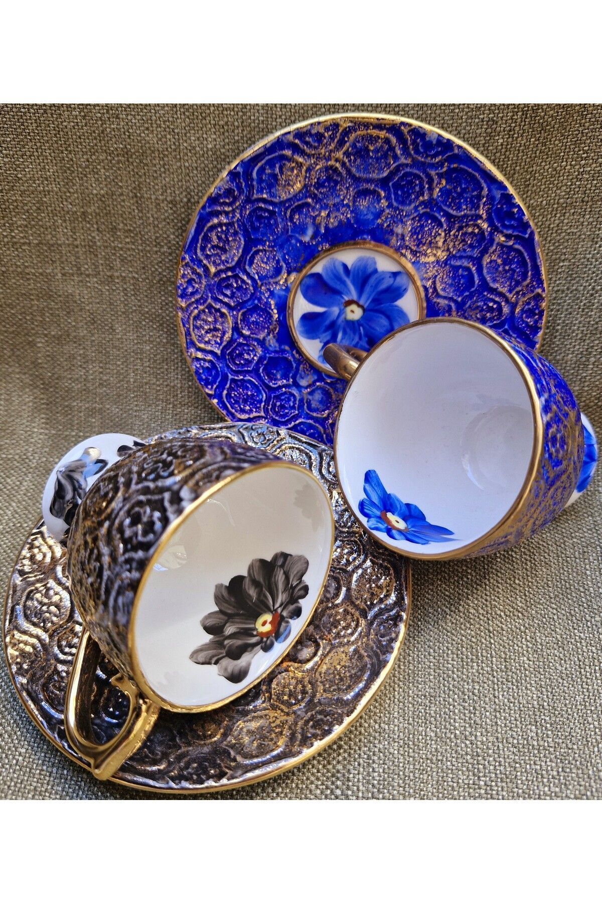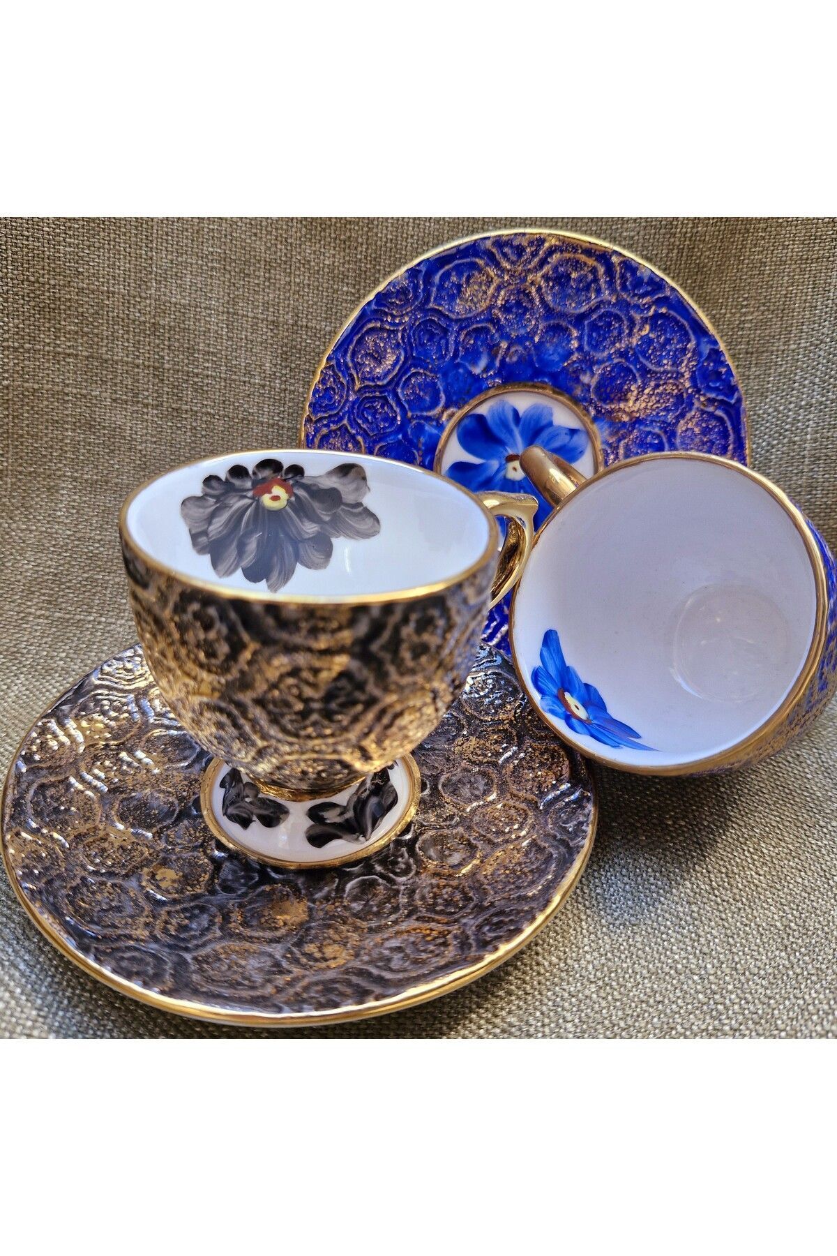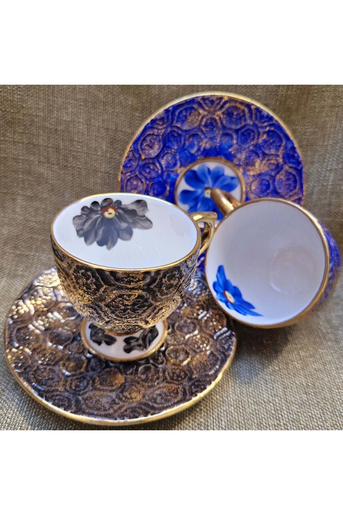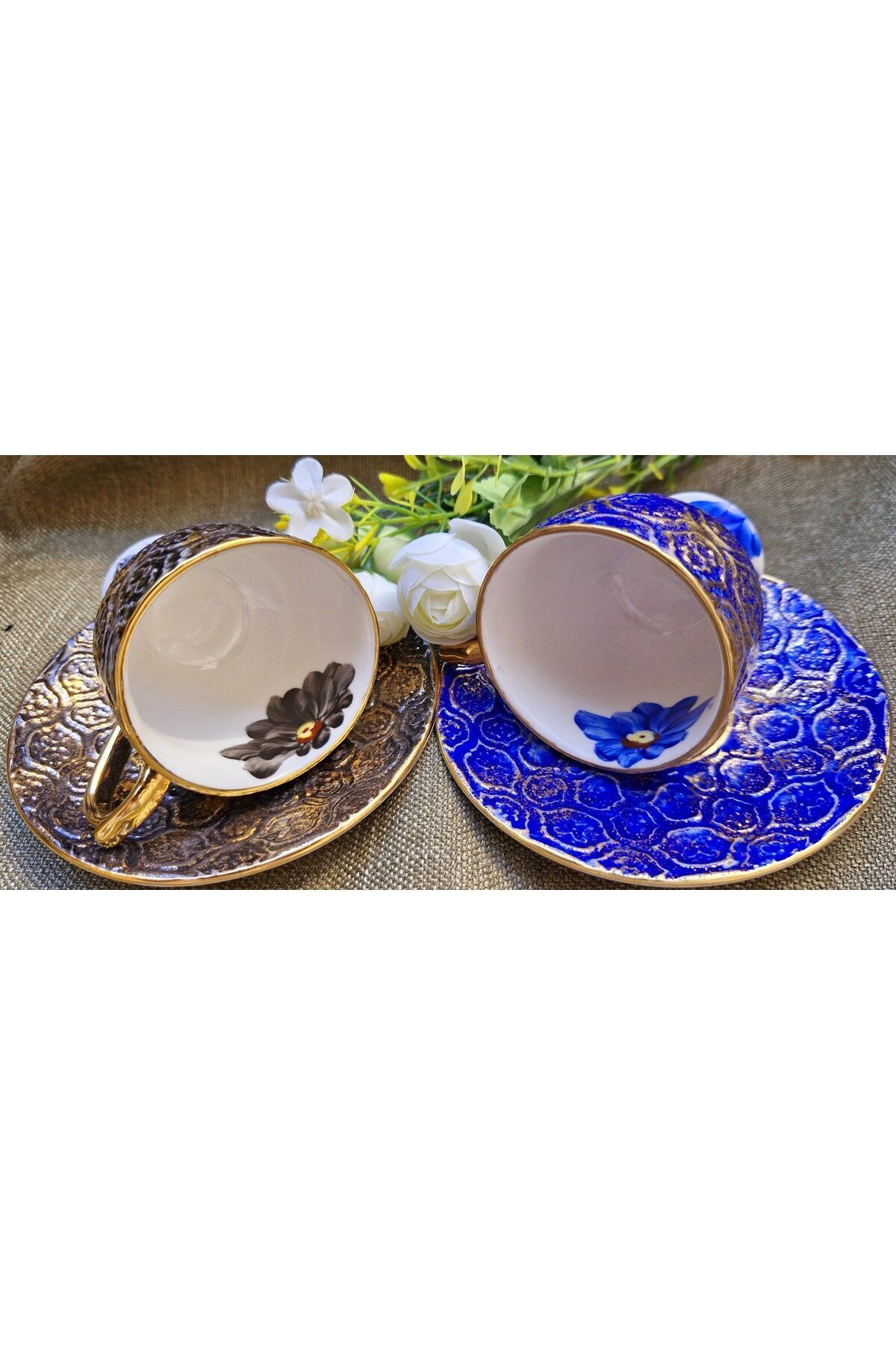 Eskitme Porselen El Boyama 2li Kahve Fincan Takımı