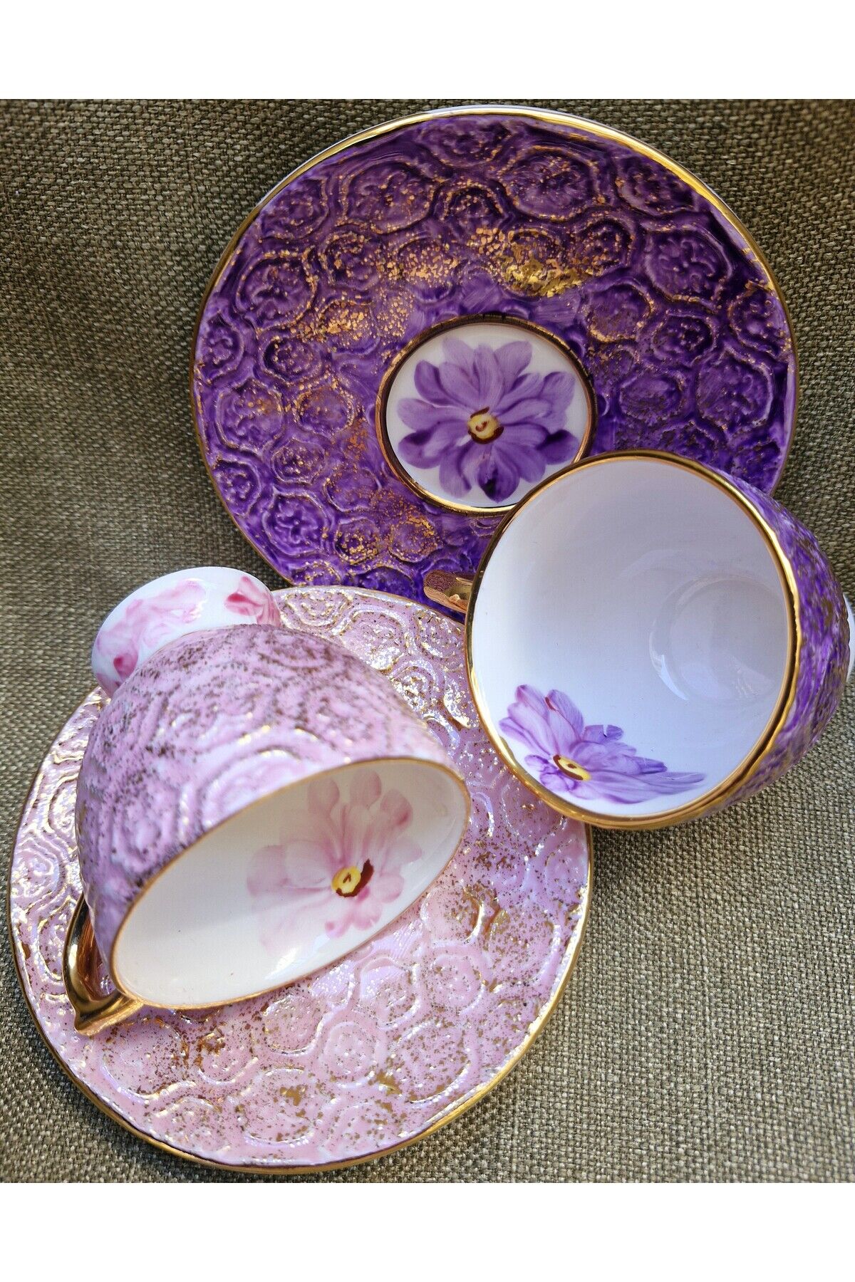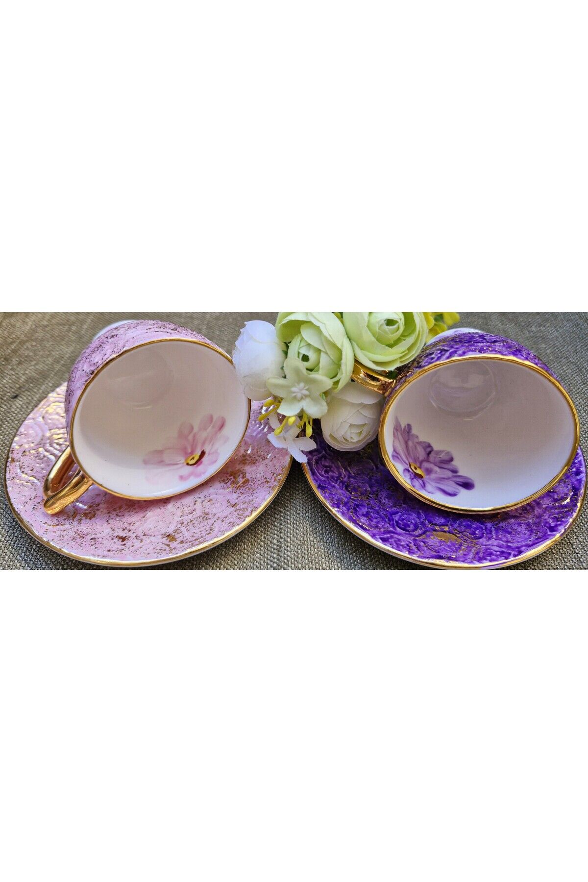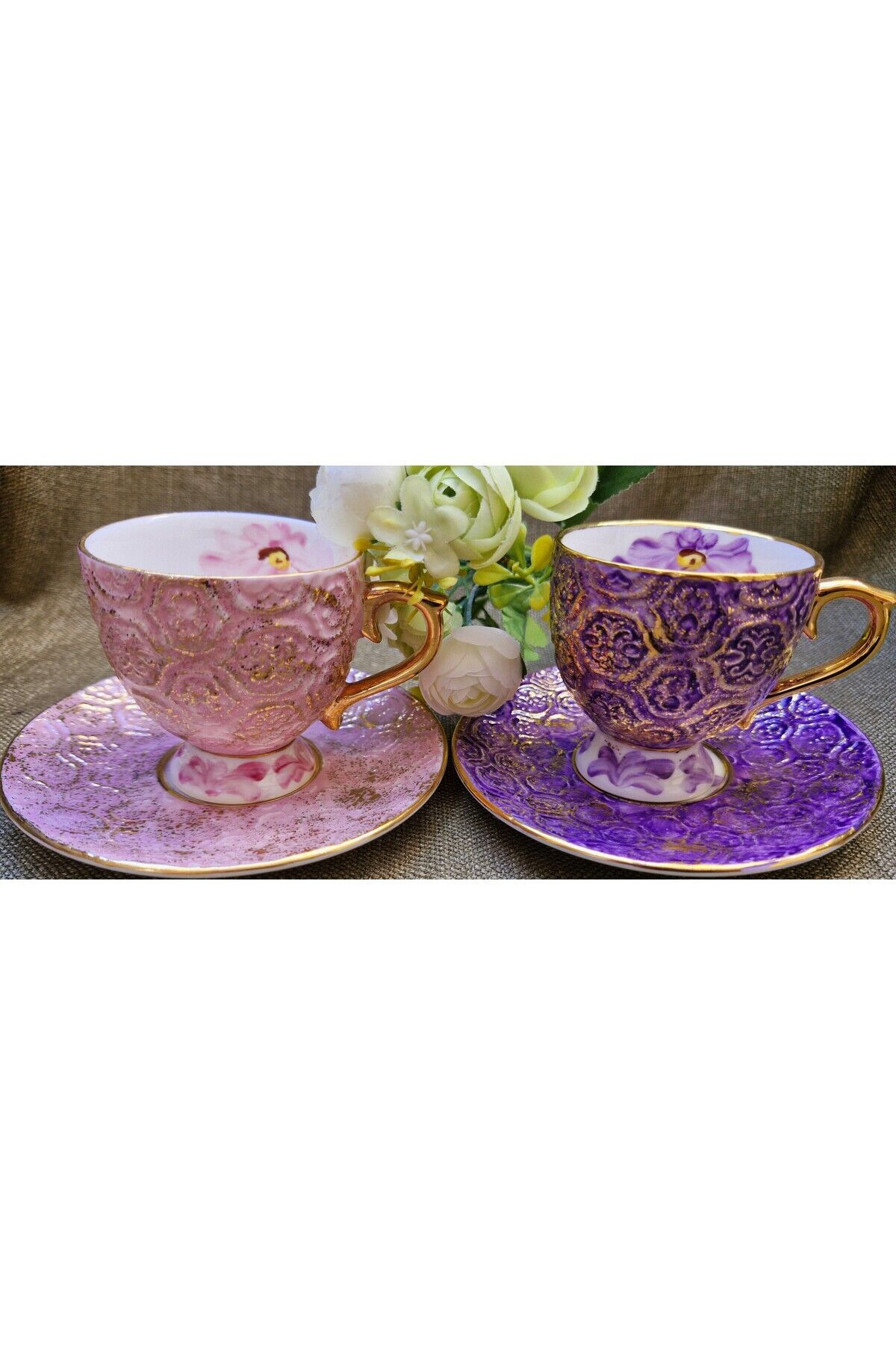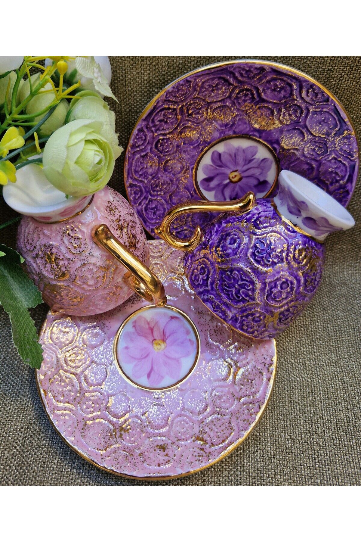 Eskitme Porselen El Boyama 2li Kahve Fincan Takımı