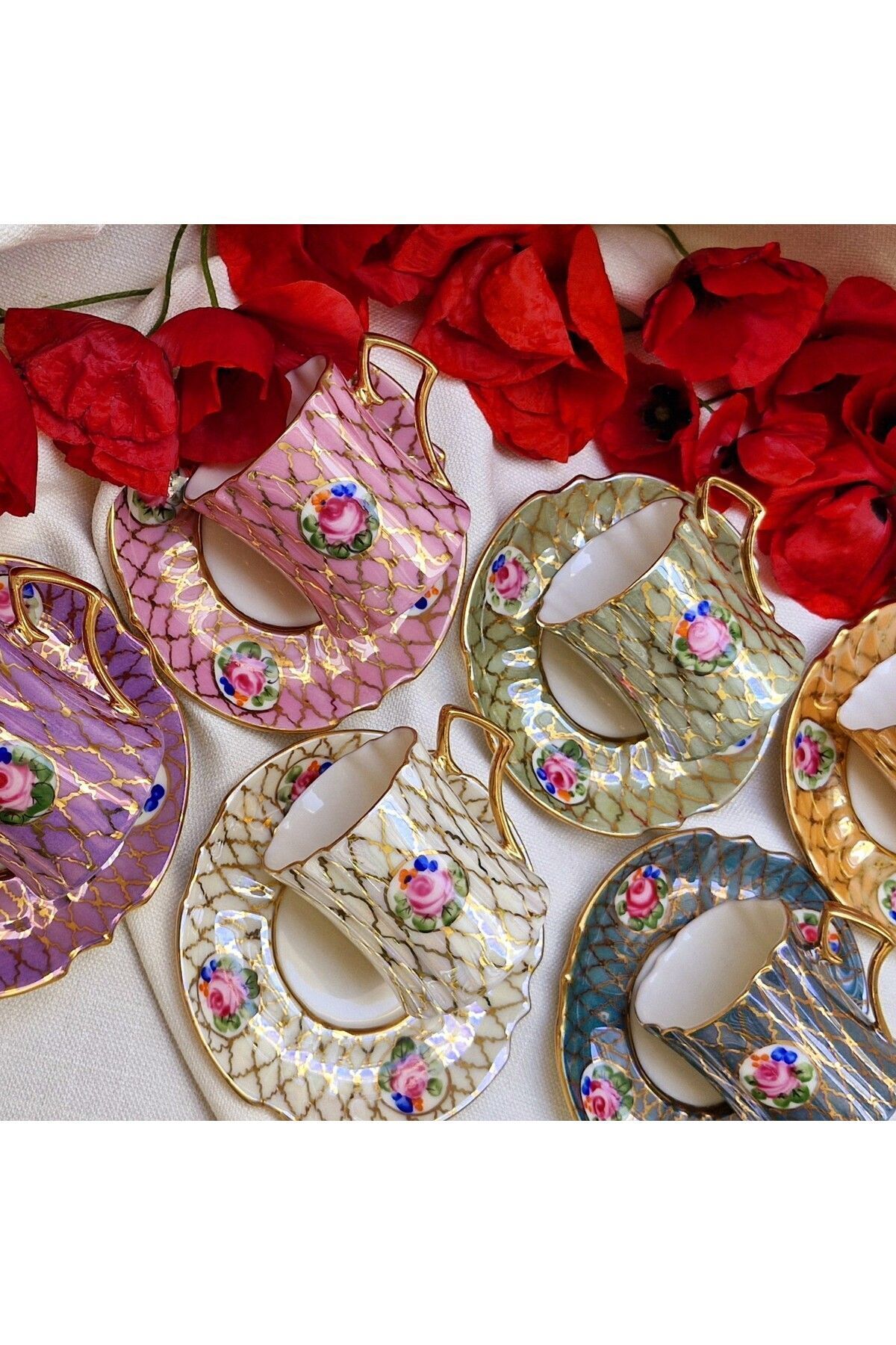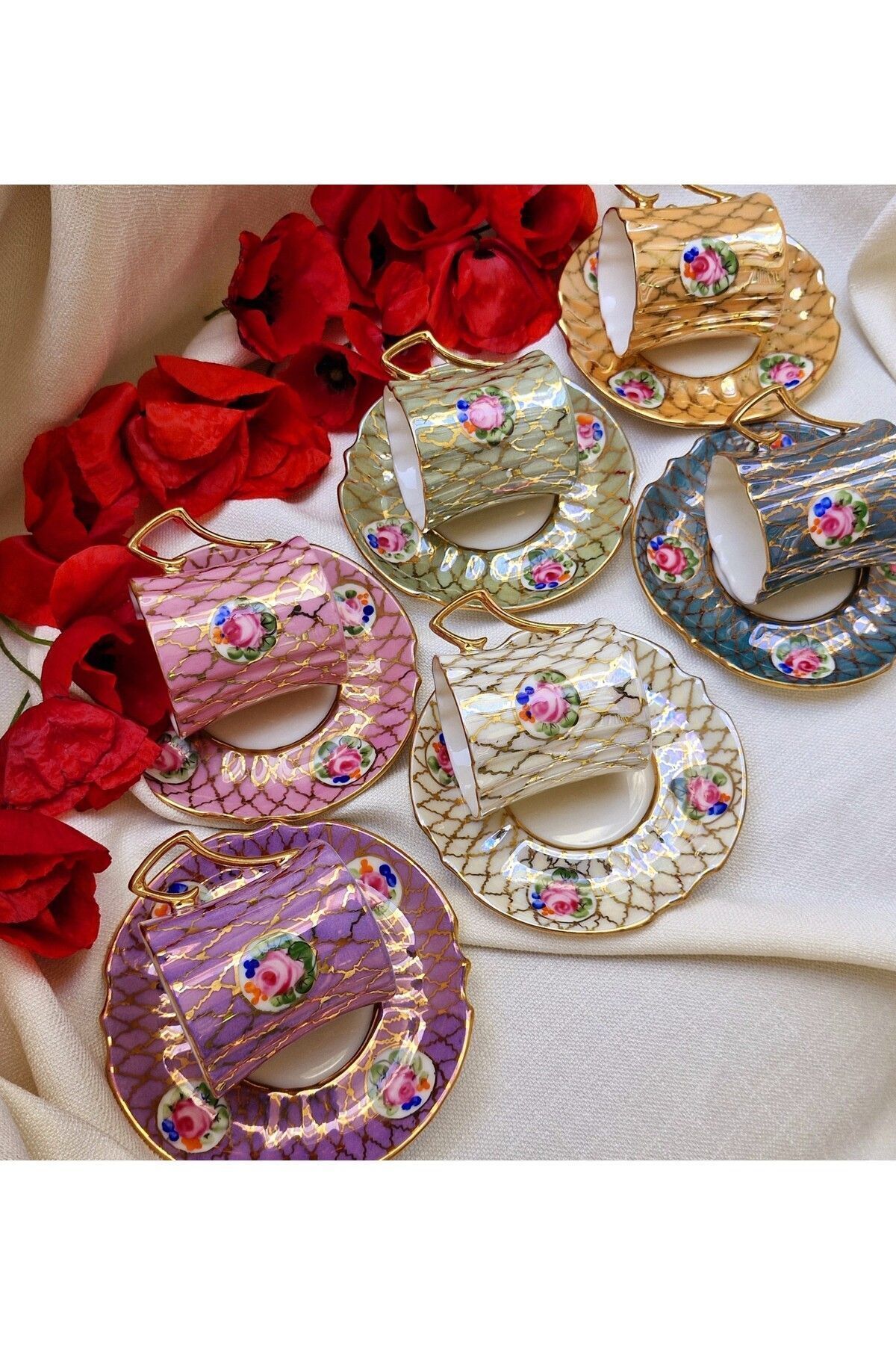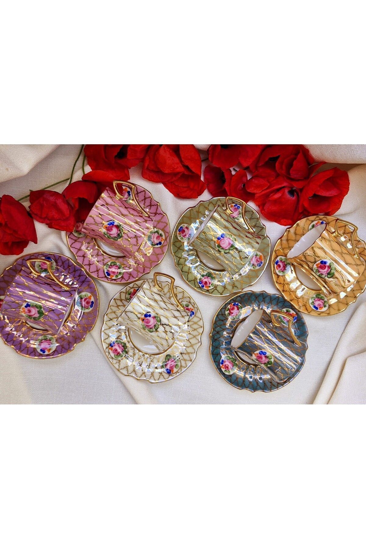 FİLİZCAN PORSELEN EL BOYAMA KAHVE FİNCAN TAKIMI