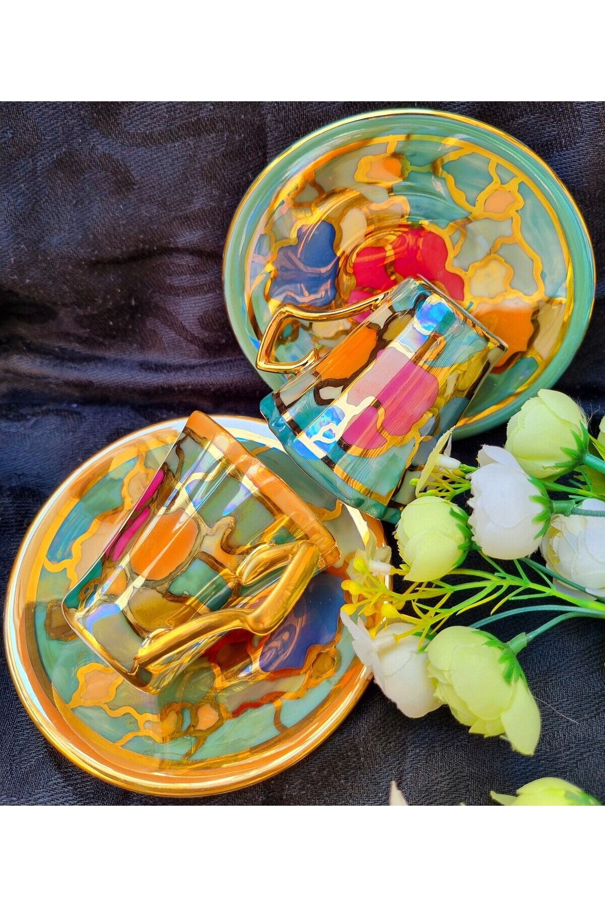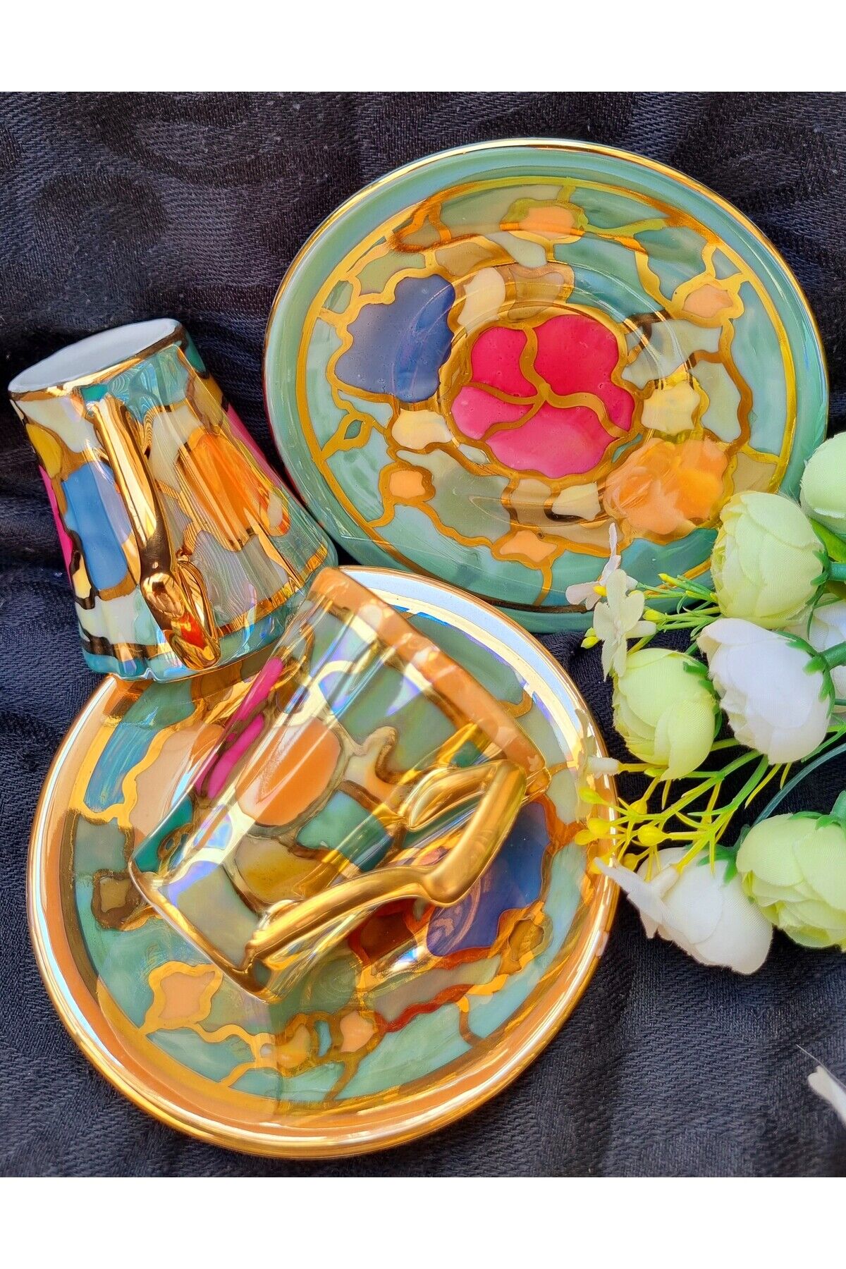 Forya Porselen El Boyama 2li Kahve Fincanı Takımı