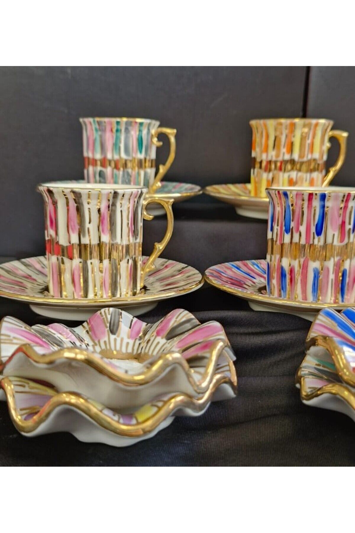 Gala Porselen El Dekor Boyama Fincan Takımı Ve Lokumluk Seti