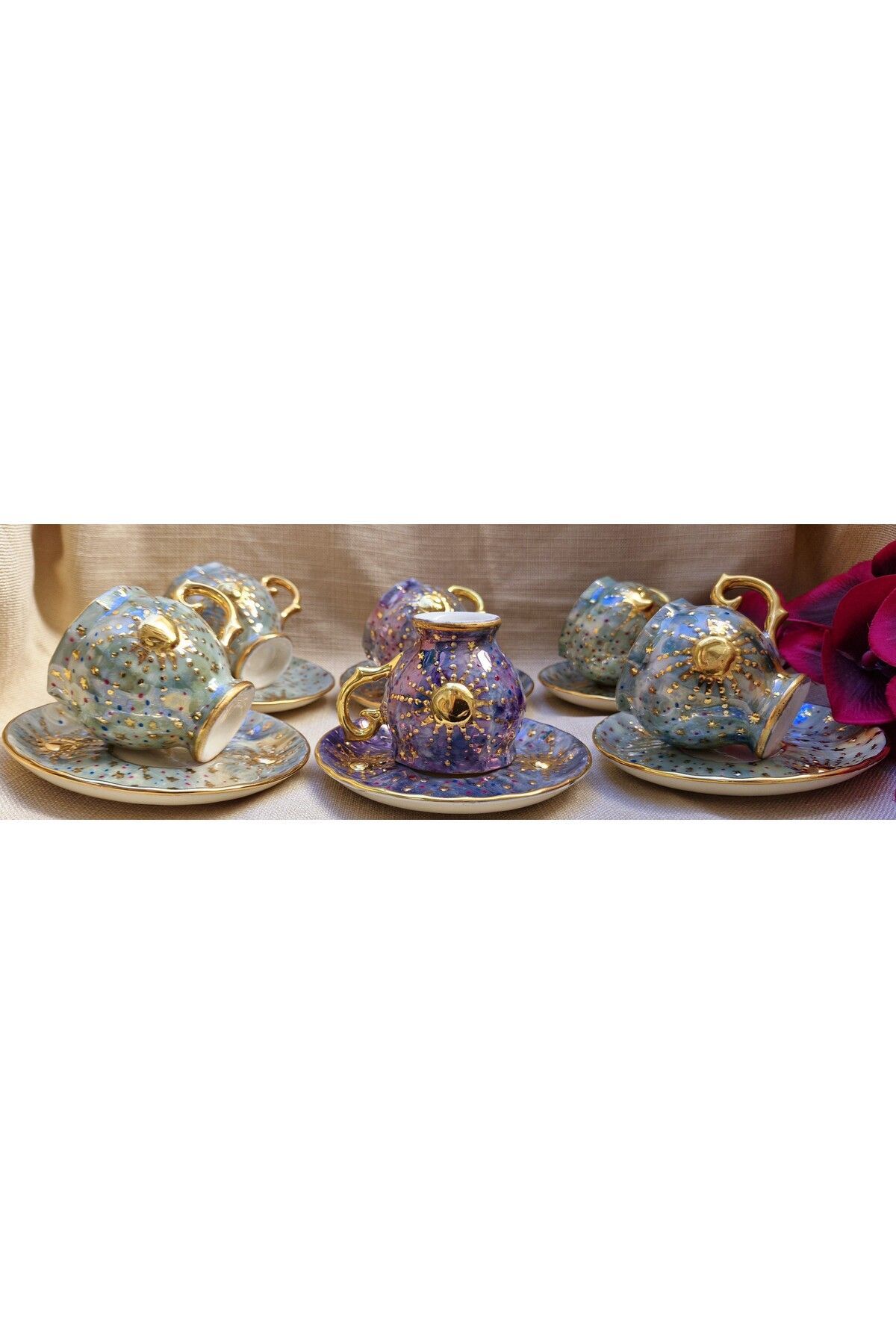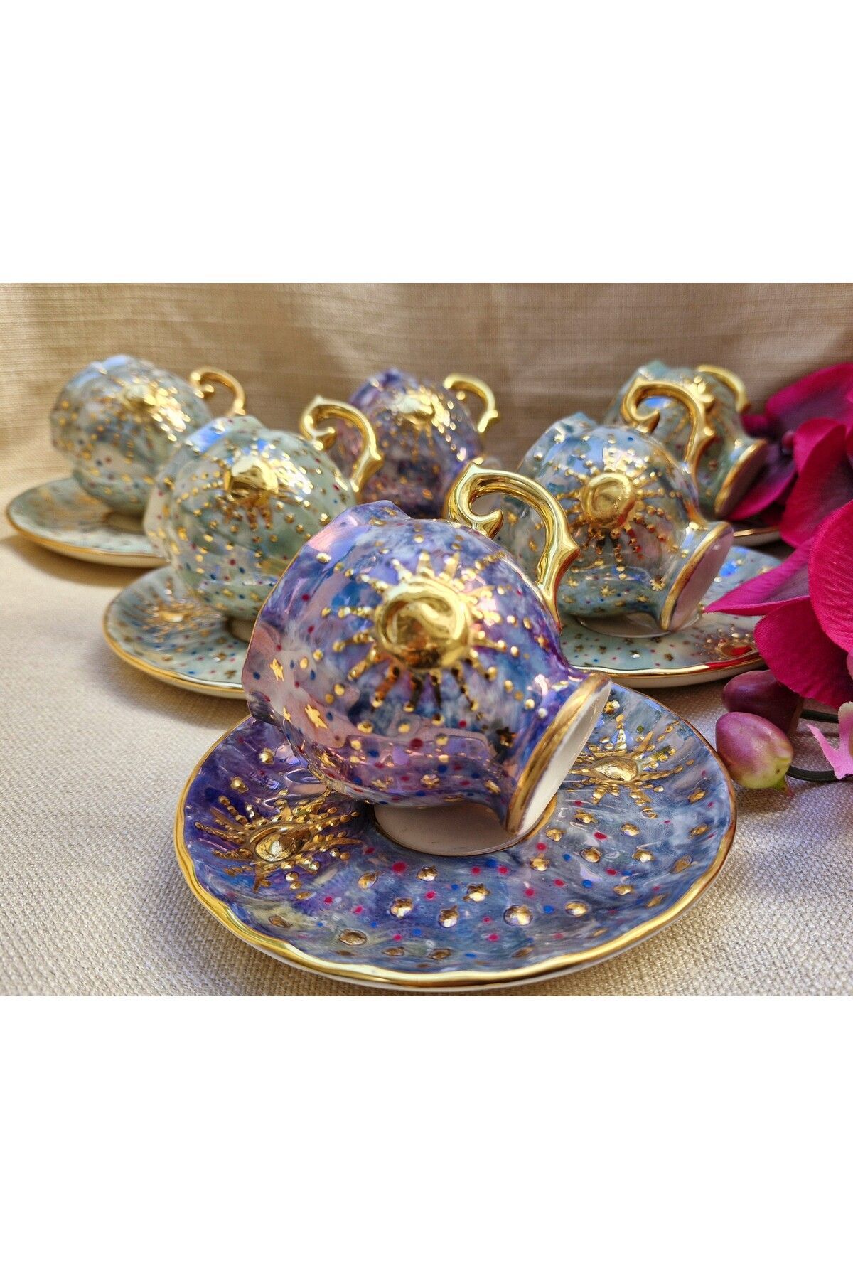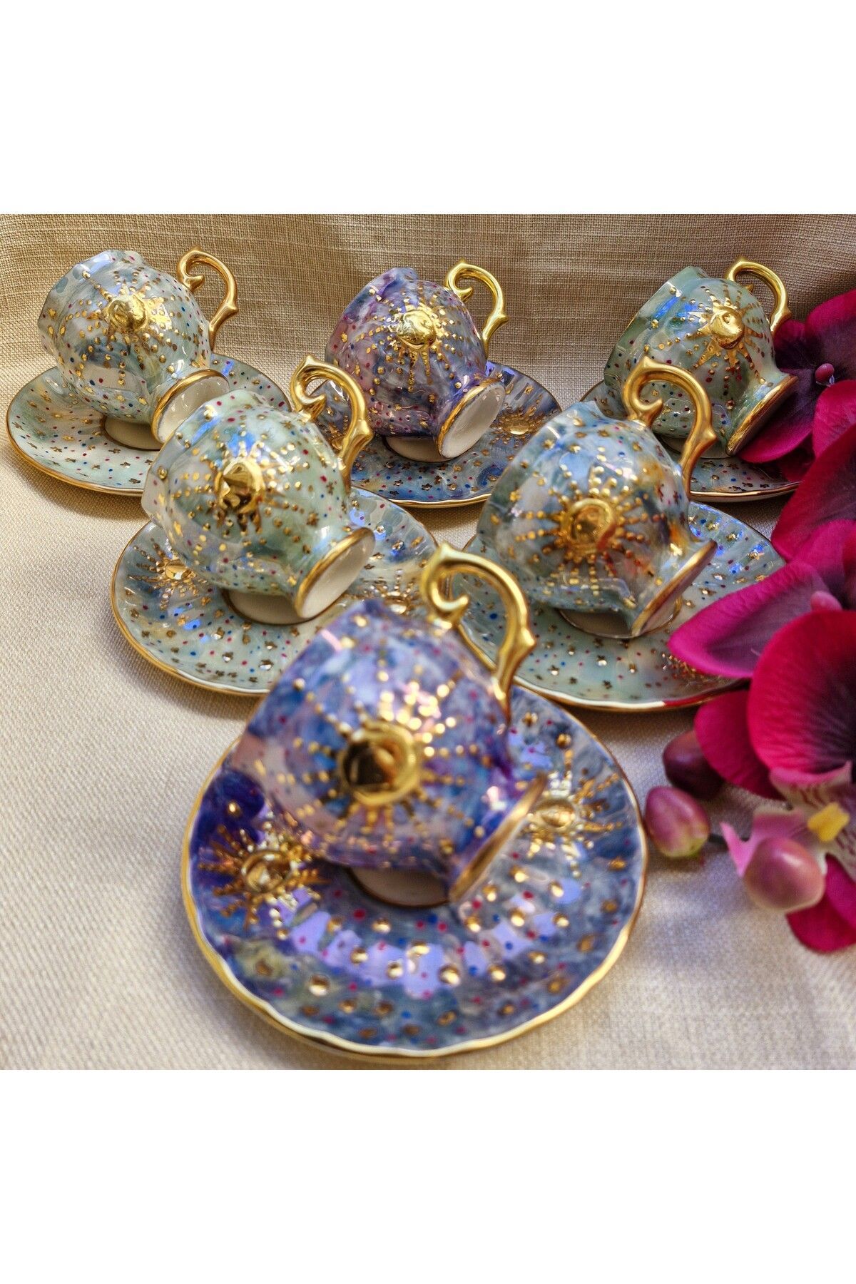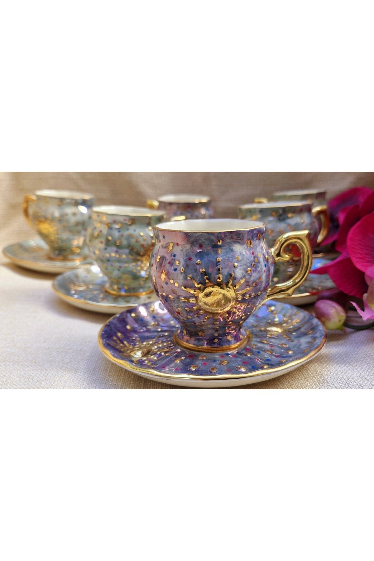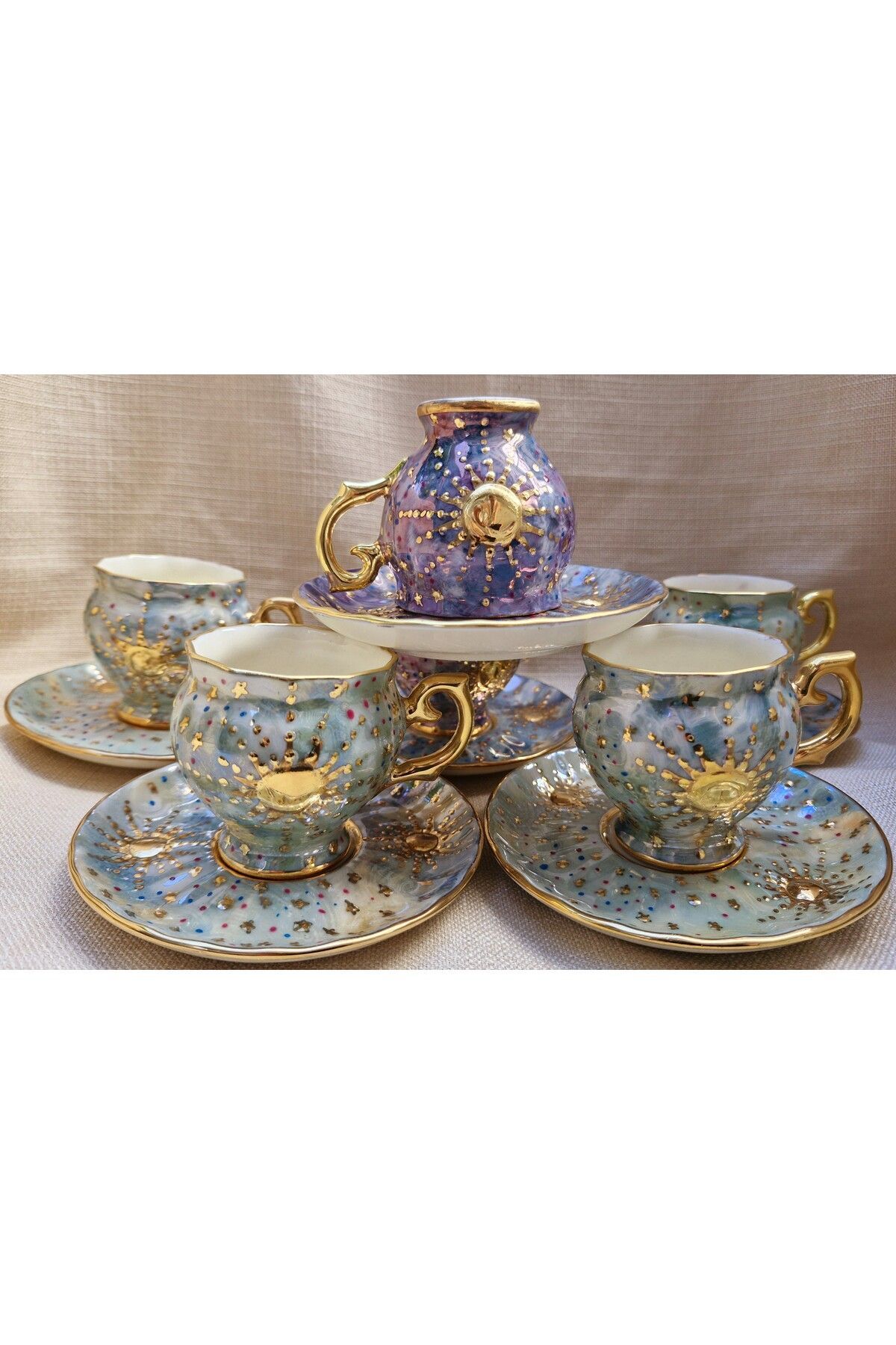 GALAKSİ PORSELEN EL BOYAMA KAHVE FİNCAN TAKIMI