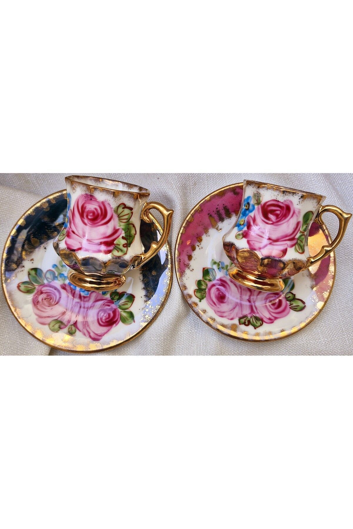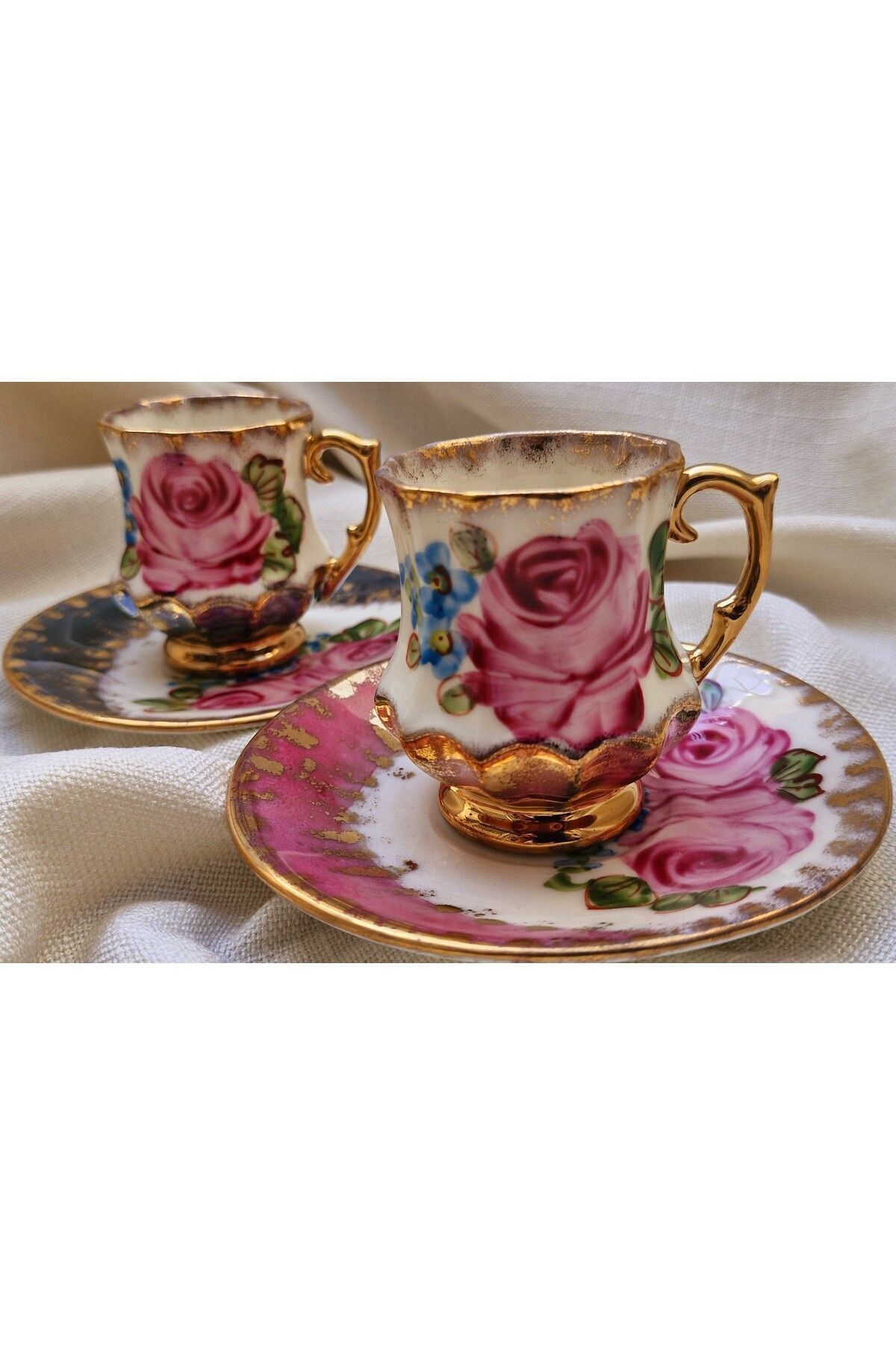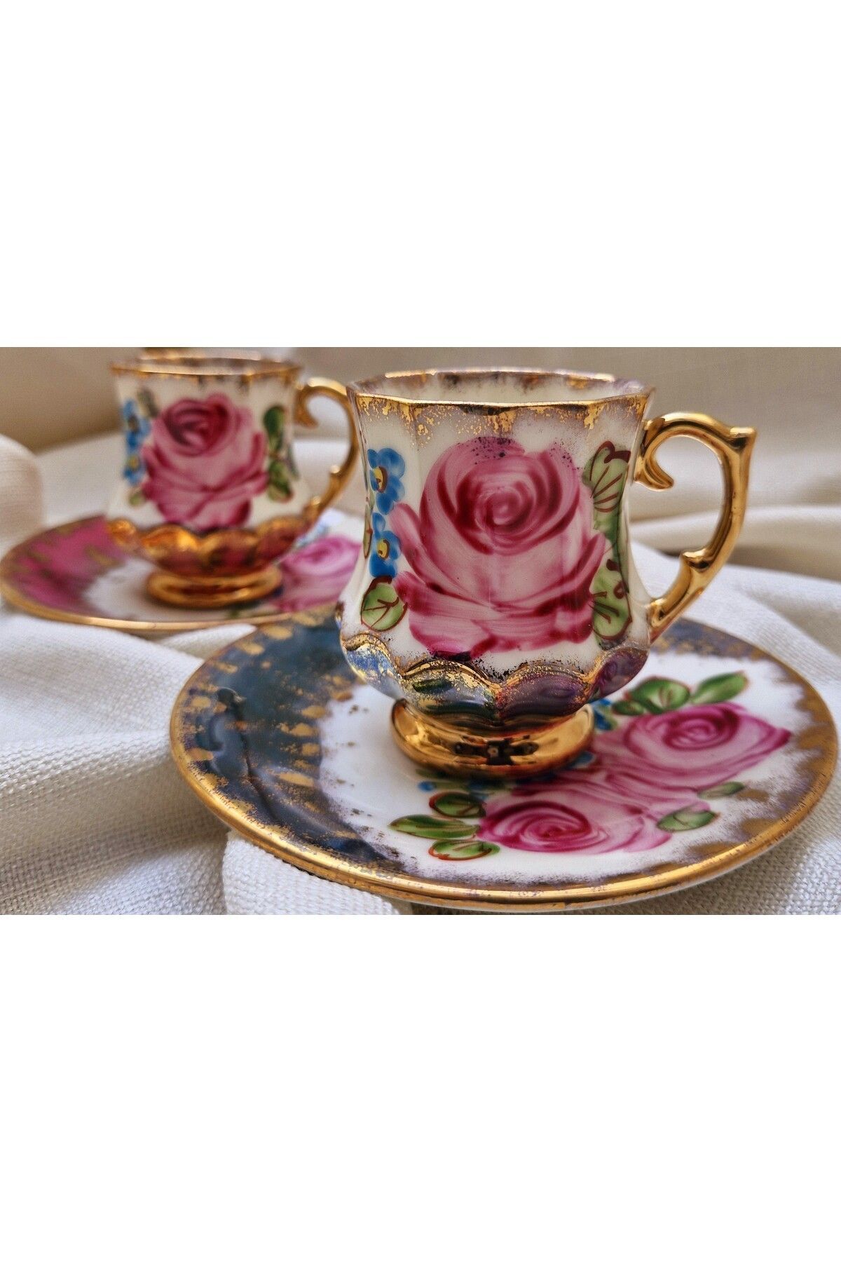 Hilal Porselen El Boyama 2li Kahve Fincan Takımı