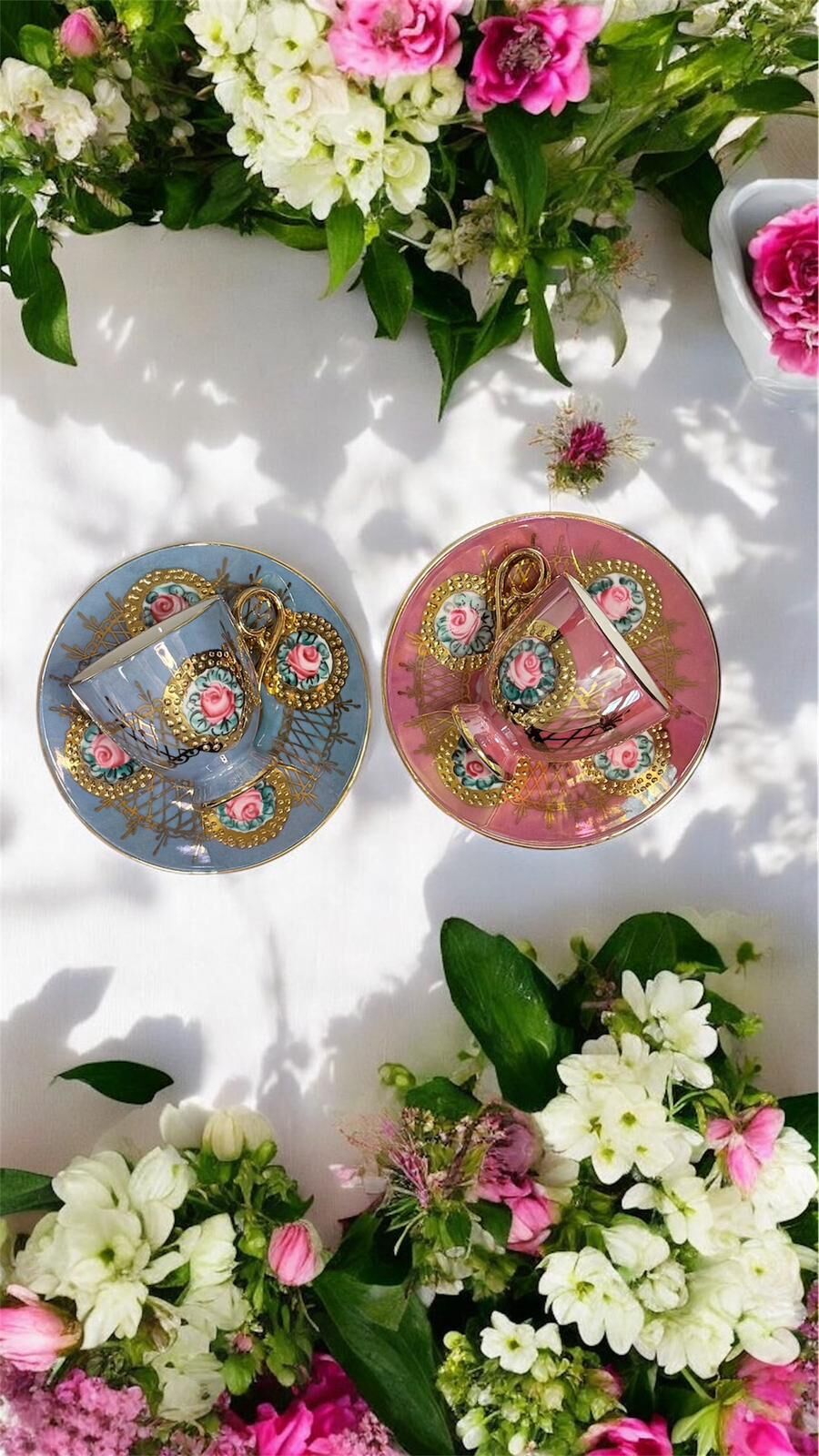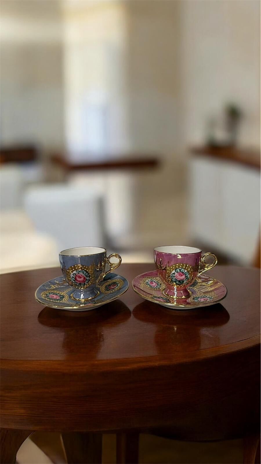 HÜNKAR 2 Lİ PORSELEN EL BOYAMA KAHVE FİNCAN TAKIMI