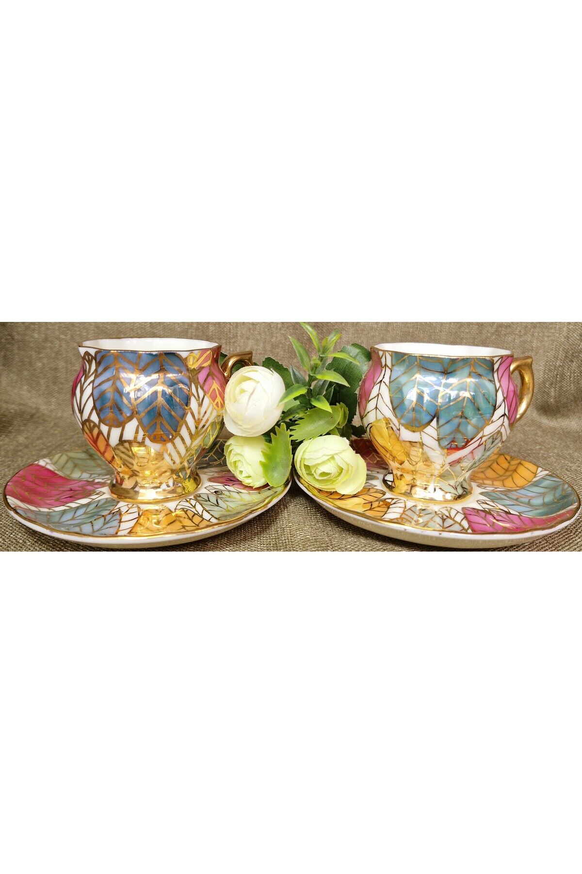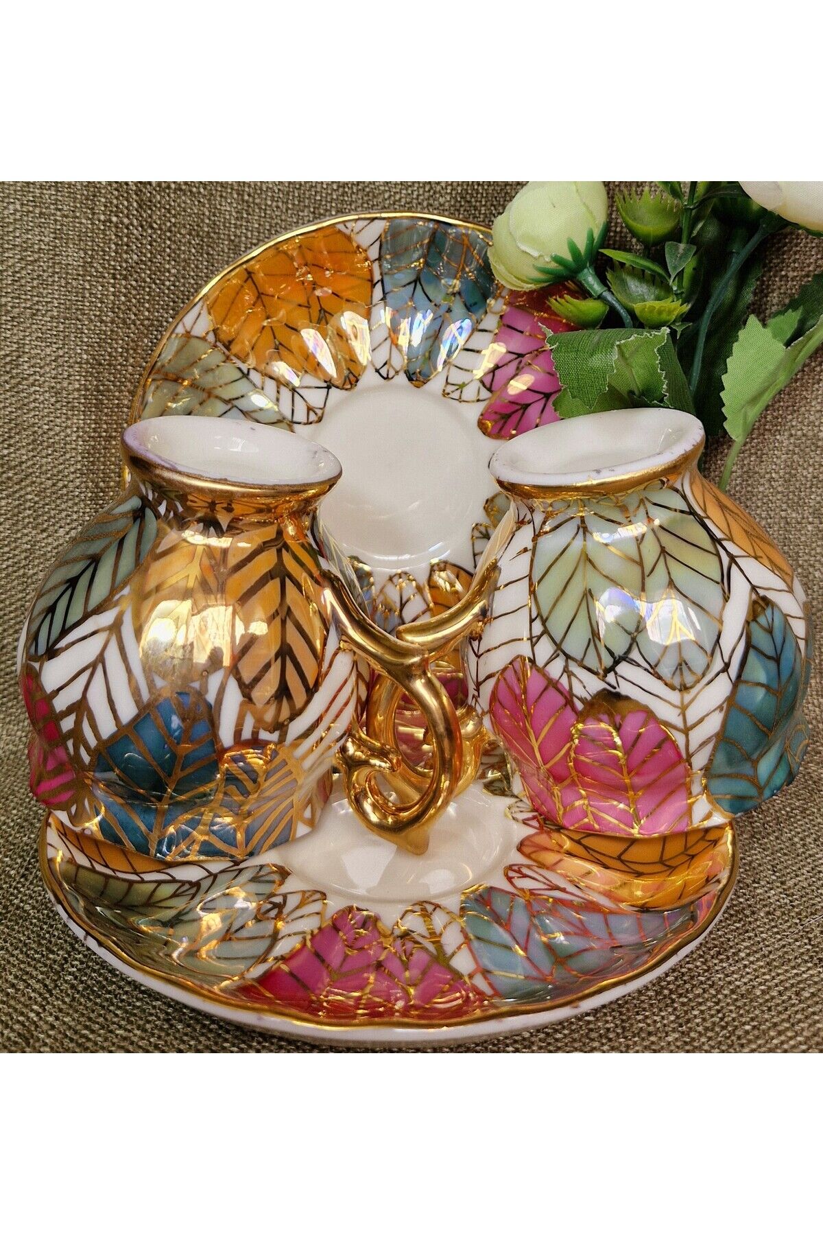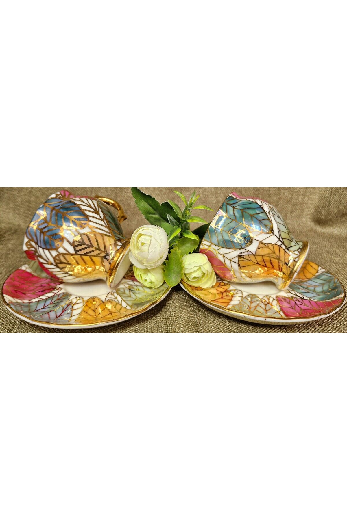 İkinci Bahar Porselen El Boyama 2li Kahve Fincan Takımı