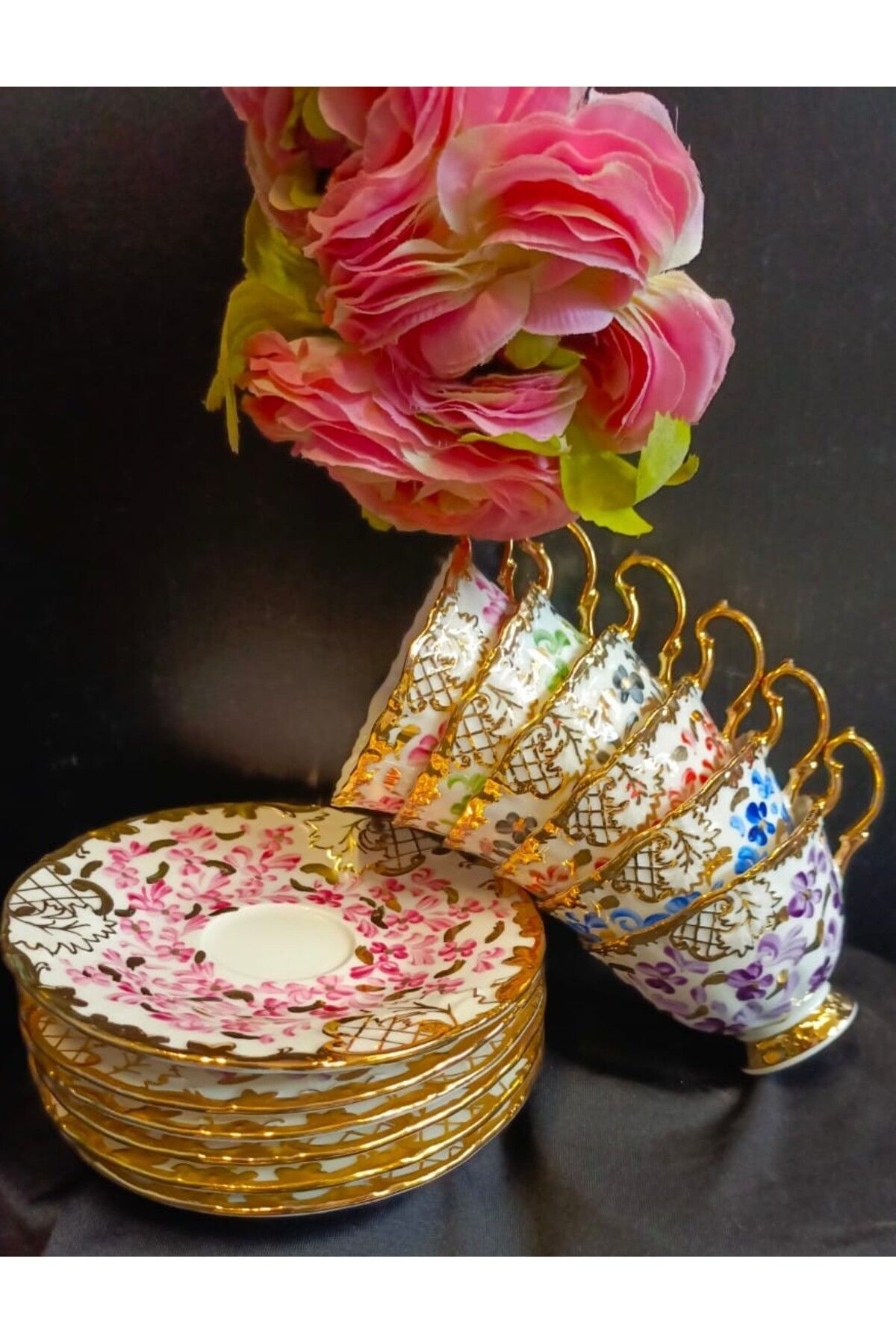 K.ÇİÇEK PORSELEN EL DEKOR BOYAMA FİNCAN TAKIMI