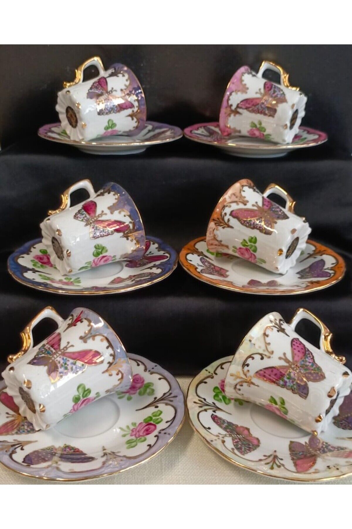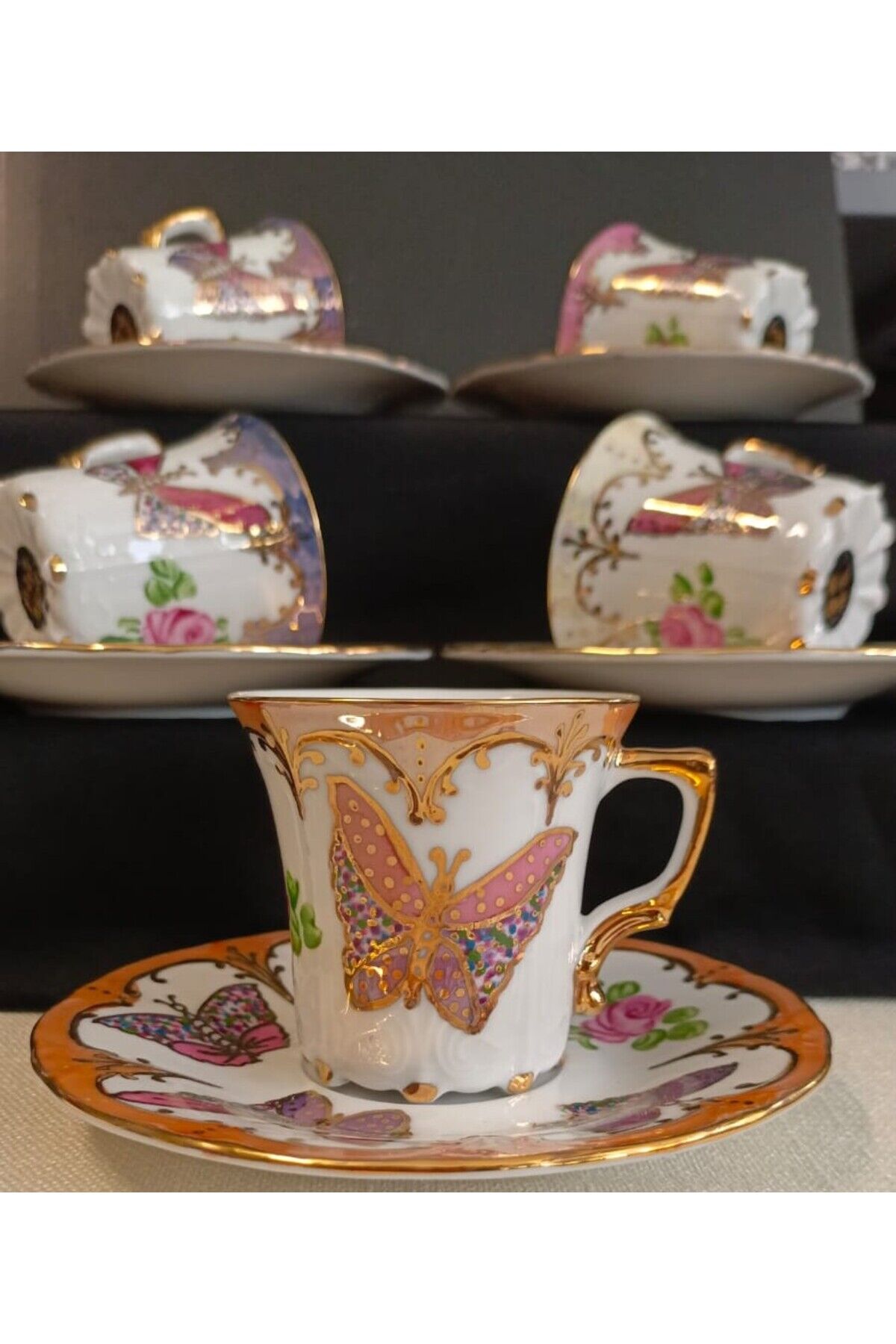 KELEBEK PORSELEN EL BOYAMA KAHVE FİNCAN TAKIMI