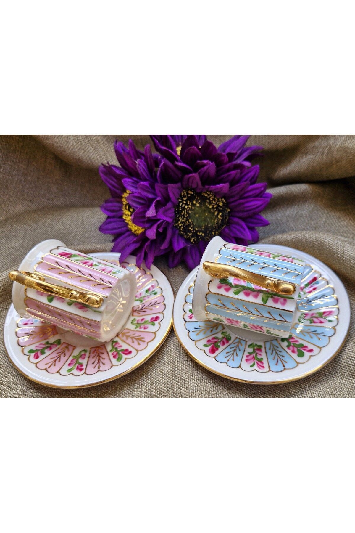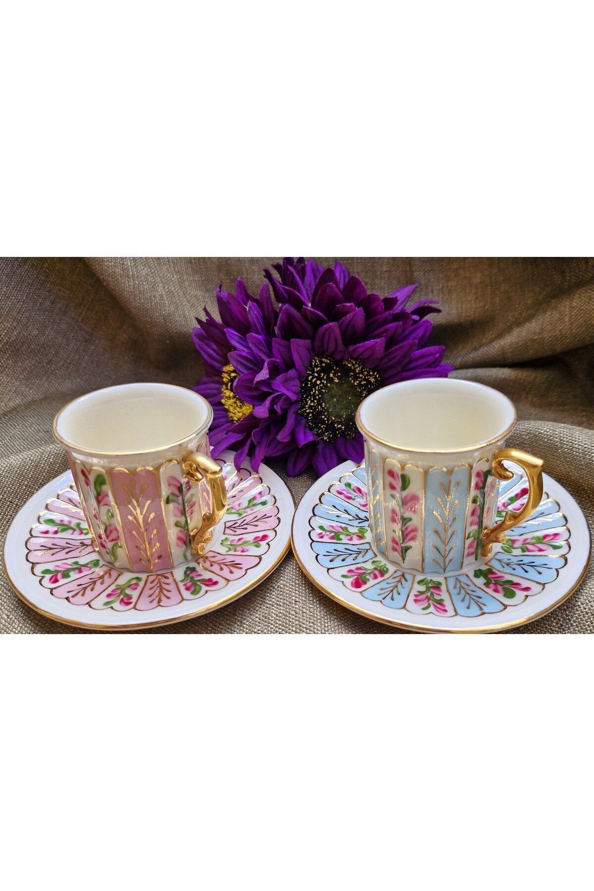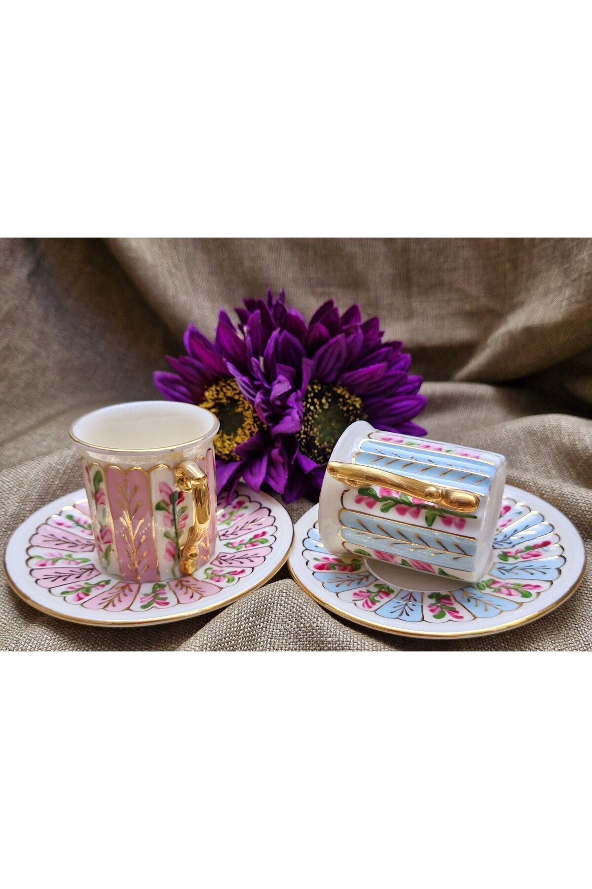 Klasik Efes Porselen El Boyaması 2li Kahve Fincan Takımı