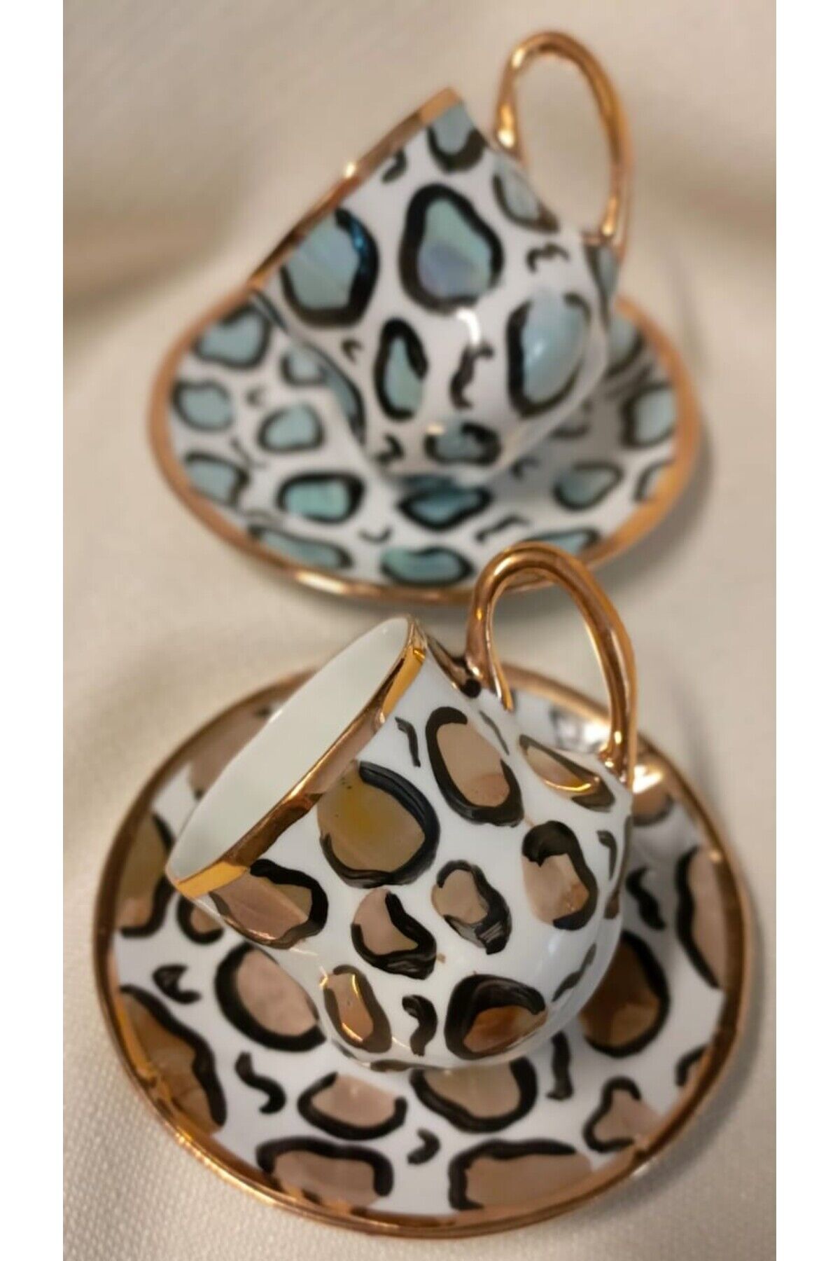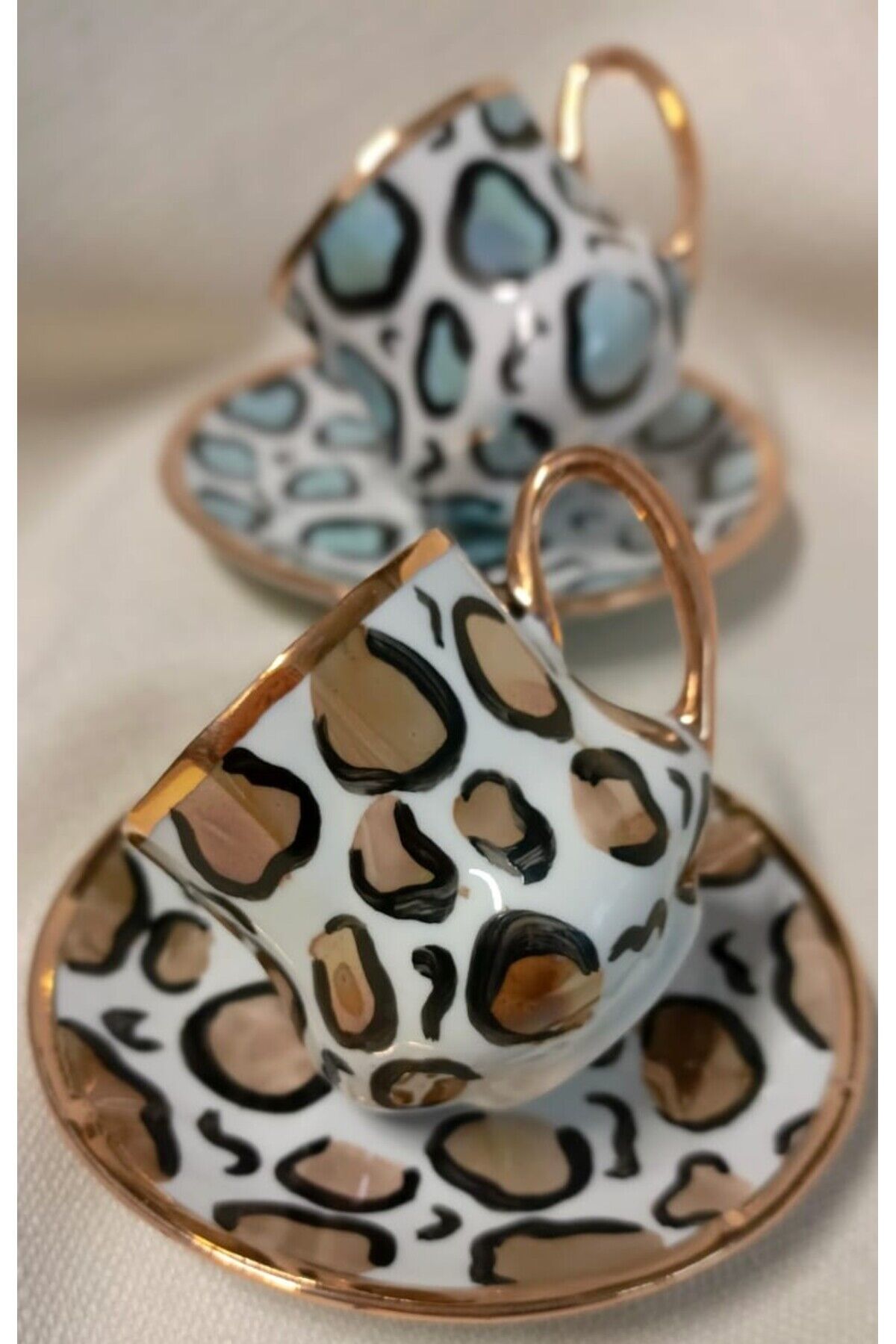 LEOPAR PORSELEN EL BOYAMA 2Lİ KAHVE FİNCAN TAKIMI