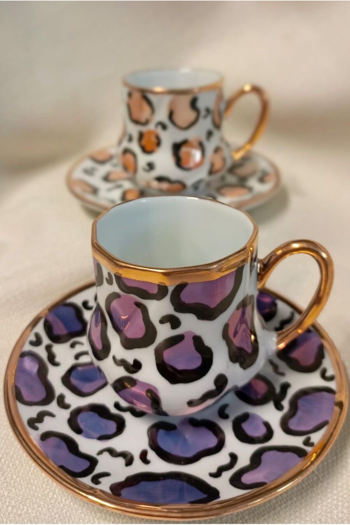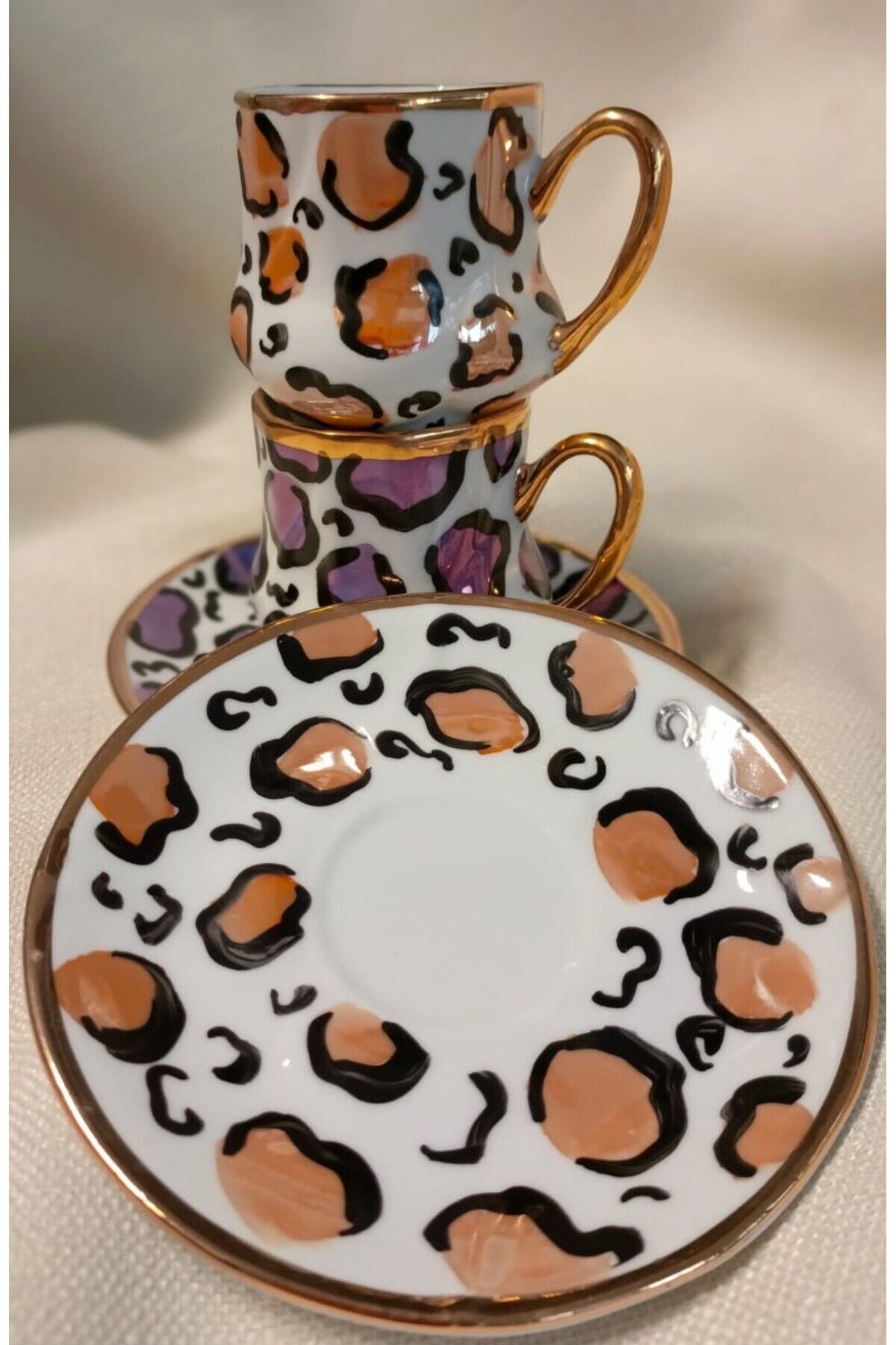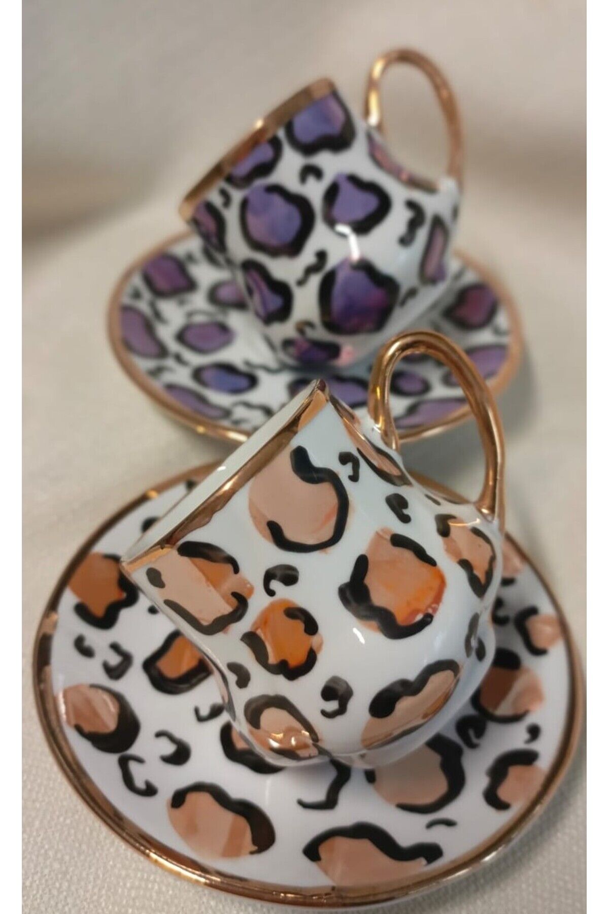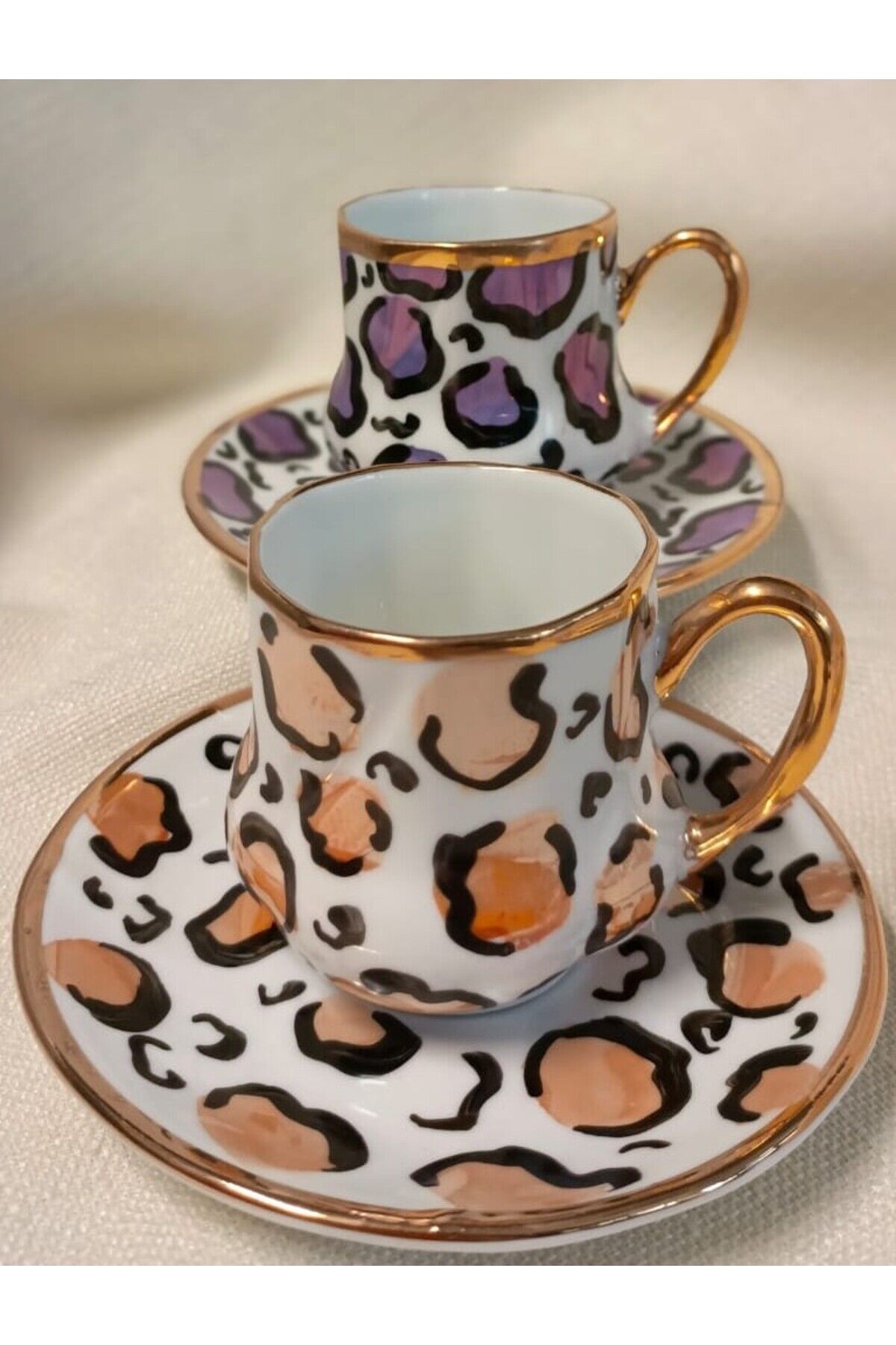 LEOPAR PORSELEN EL BOYAMA 2Lİ KAHVE FİNCAN TAKIMI