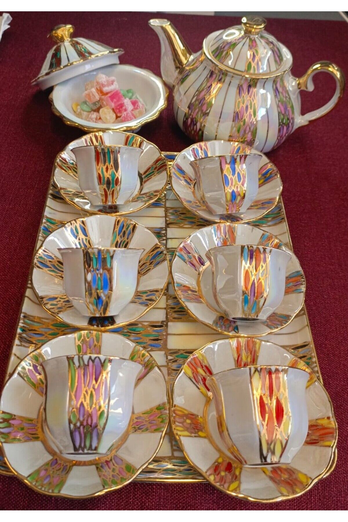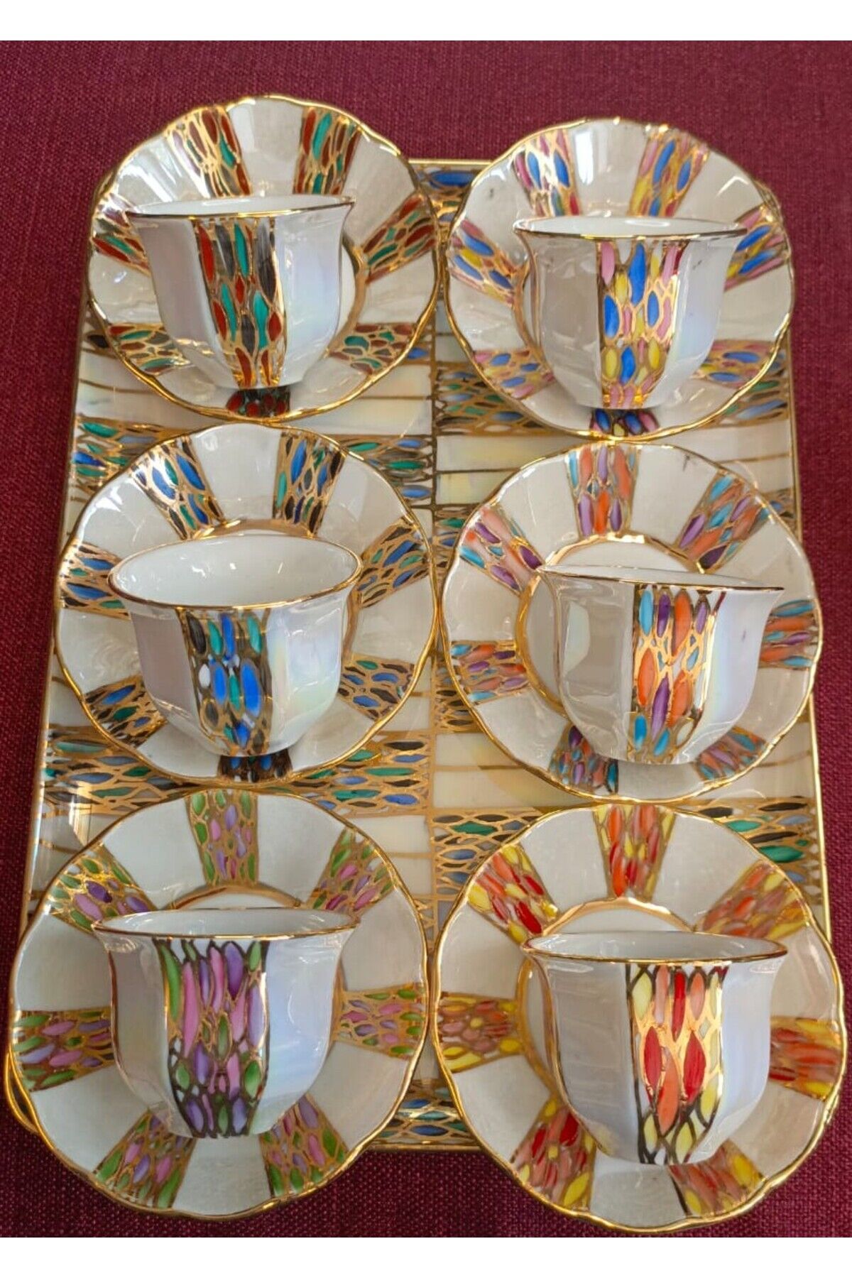 LİNE MIRRA PORSELEN EL DEKOR BOYAMA KAHVE FİNCAN TAKIMI