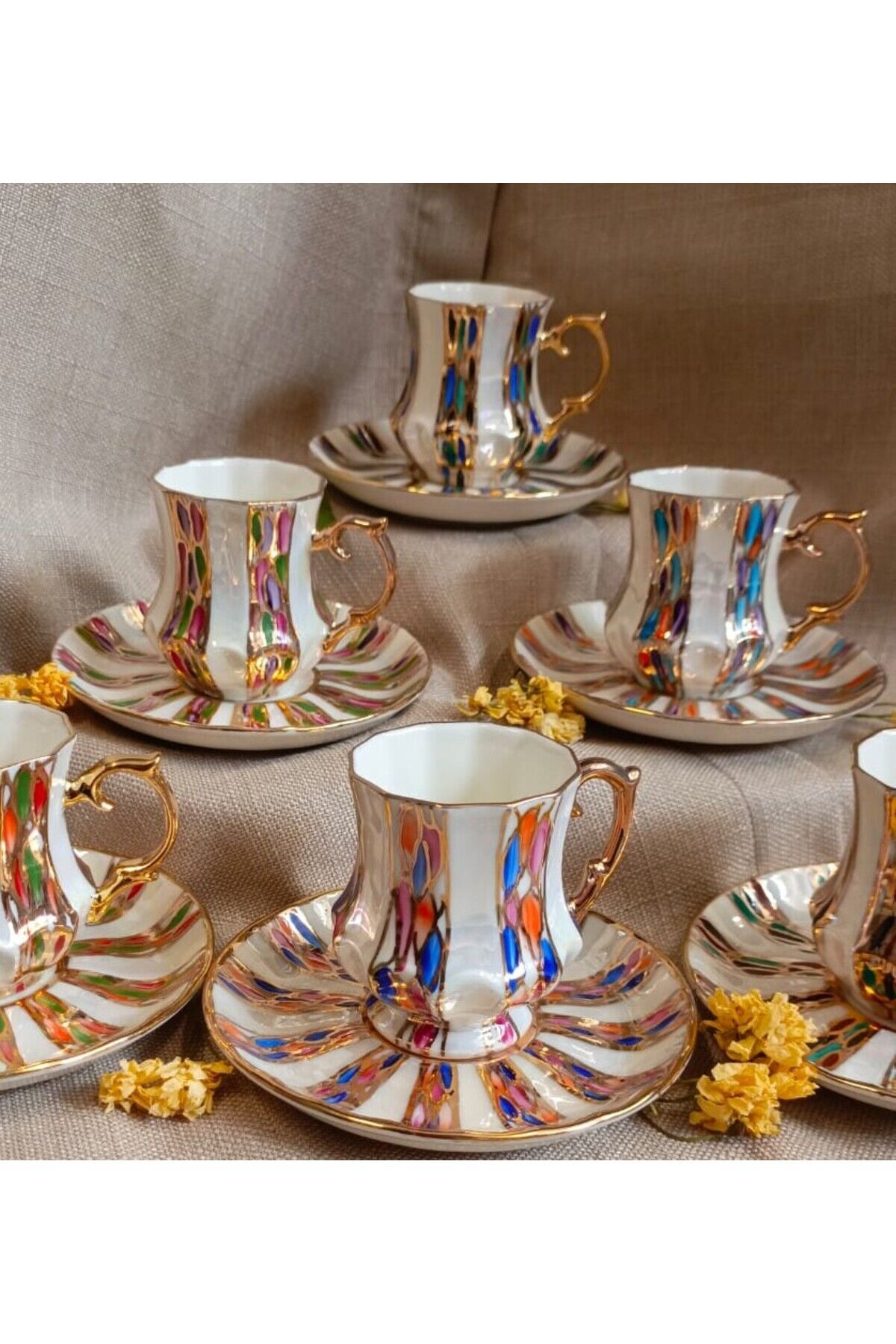 LİNE PORSELEN EL DEKOR BOYAMA FİNCAN TAKIMI