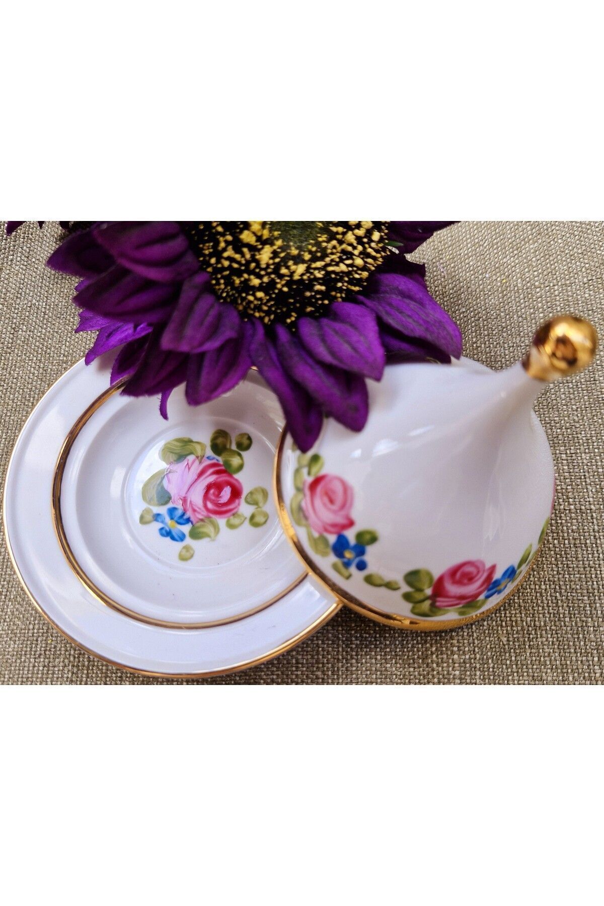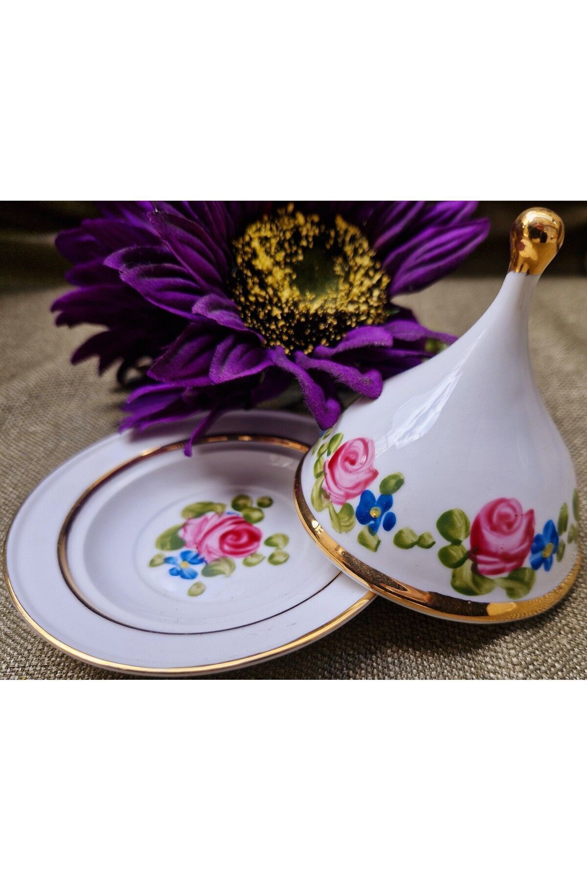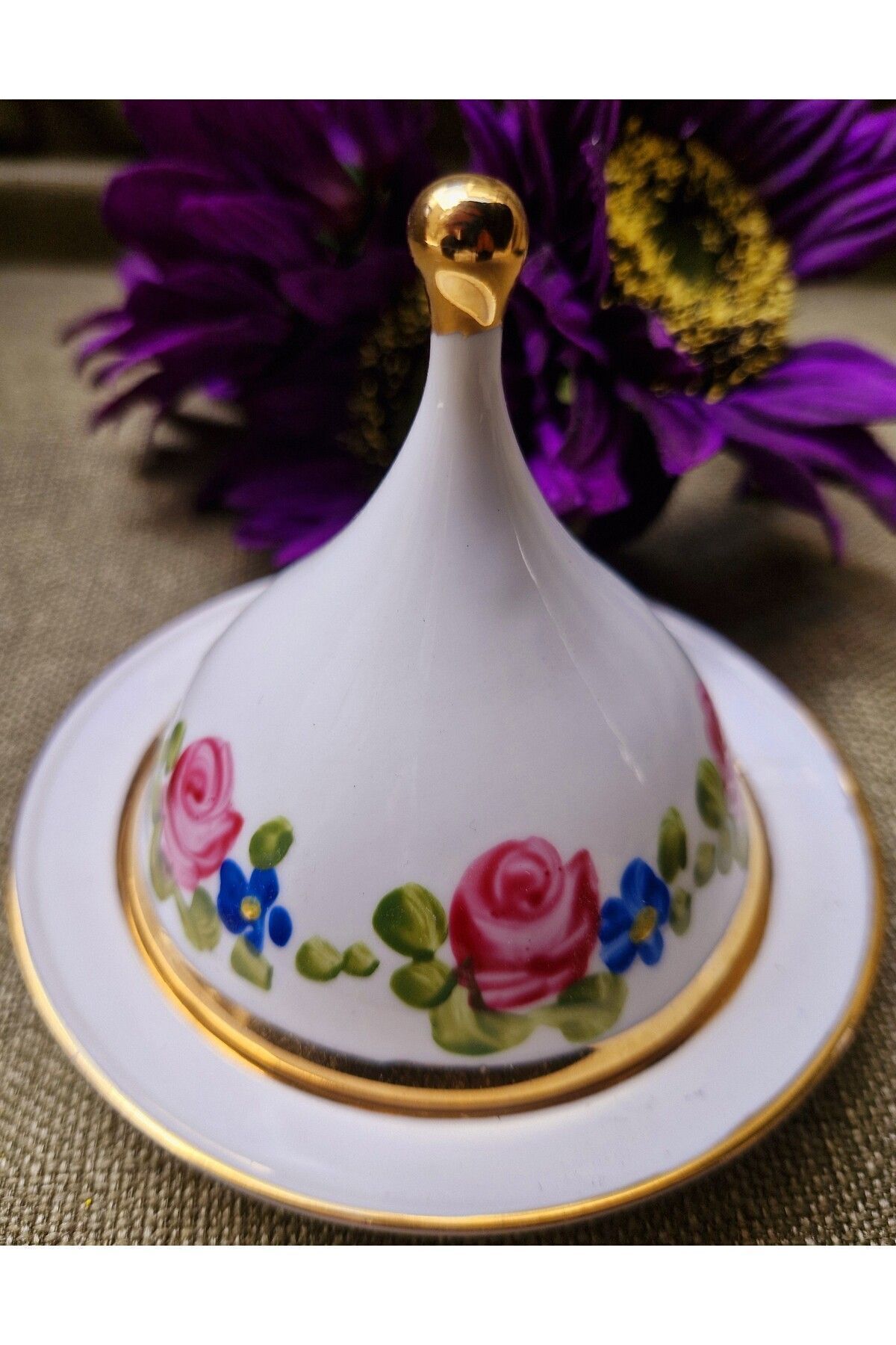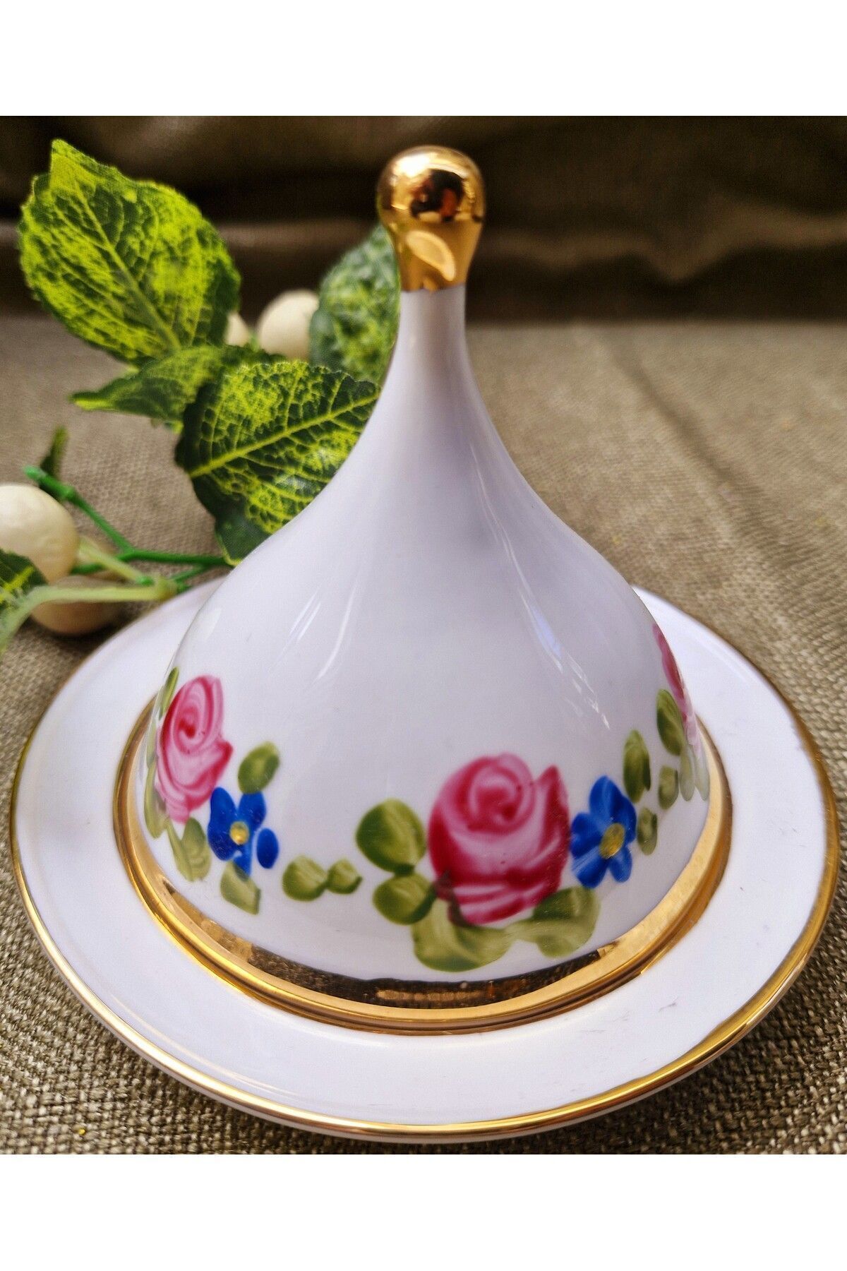 Porselen el boyama 10 cm çapında 1 adet lokumluk ve kapağı Ürünlerimiz sanatçılarımız tarafından tamamen elde boyanmış olup 24ayar altınla zenginleşmiştir; Bulaşık makinasına girer ancak daha uzun ömürlü olması açısından tavsiye etmiyoruz; Kimyasallardan uzak tutun (çamaşırsuyu, kireç sökücü v; S; );
