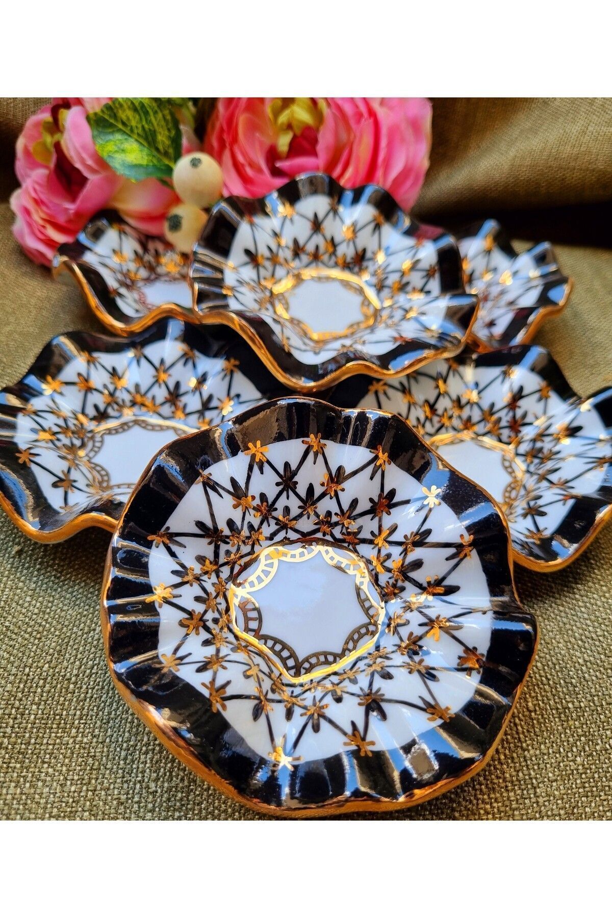 - Modern tasarımıyla her türlü sofra düzenine uyum sağlayan yuvarlak şekilli lokumluk seti, şıklığı ve fonksiyonelliği bir arada sunar; - Porselen malzemesi sayesinde uzun ömürlü kullanım ve kolay temizlik imkanı sağlar; - Belirtilmemiş tema ve stil özellikleriyle, kişisel zevkinize ve dekorasyonunuza göre özelleştirilebilir bir görünüm kazandırır; - Lokumluk seti, belirlenmemiş ürün tipi olarak sunulur; bu sayede farklı boyut ve tasarımlarda lokum sunumlarınız için idealdir;