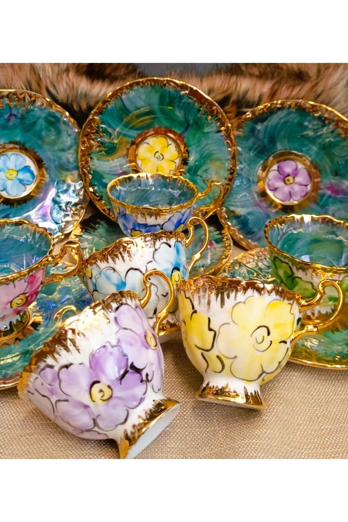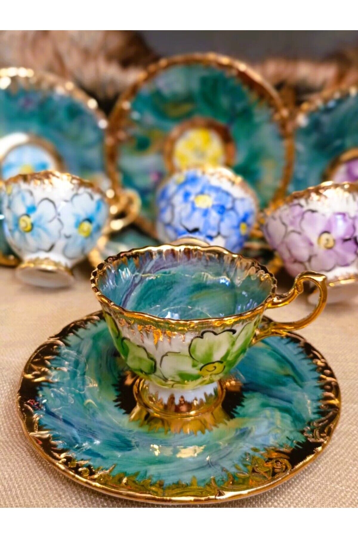MORRÜYA PORSELEN EL DEKOR BOYAMA FİNCAN TAKIMI