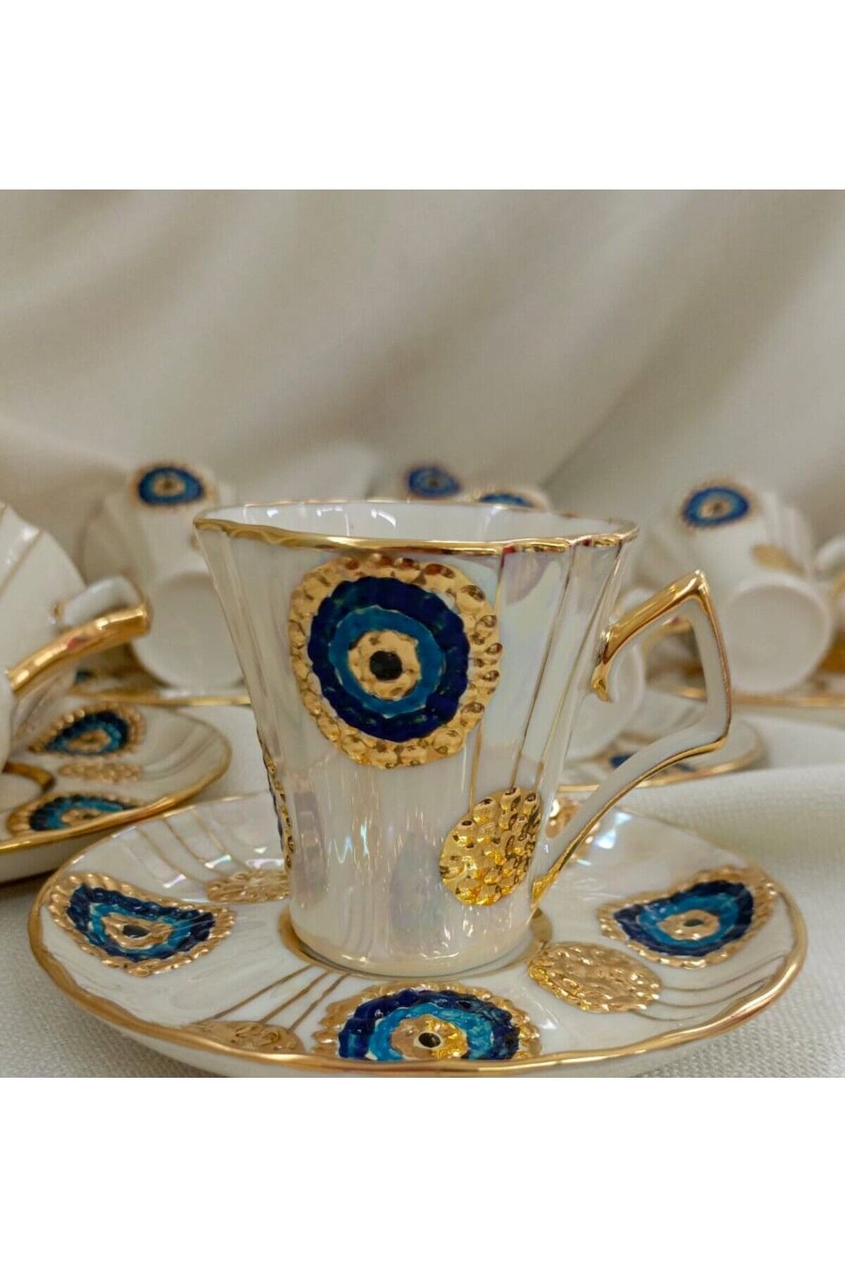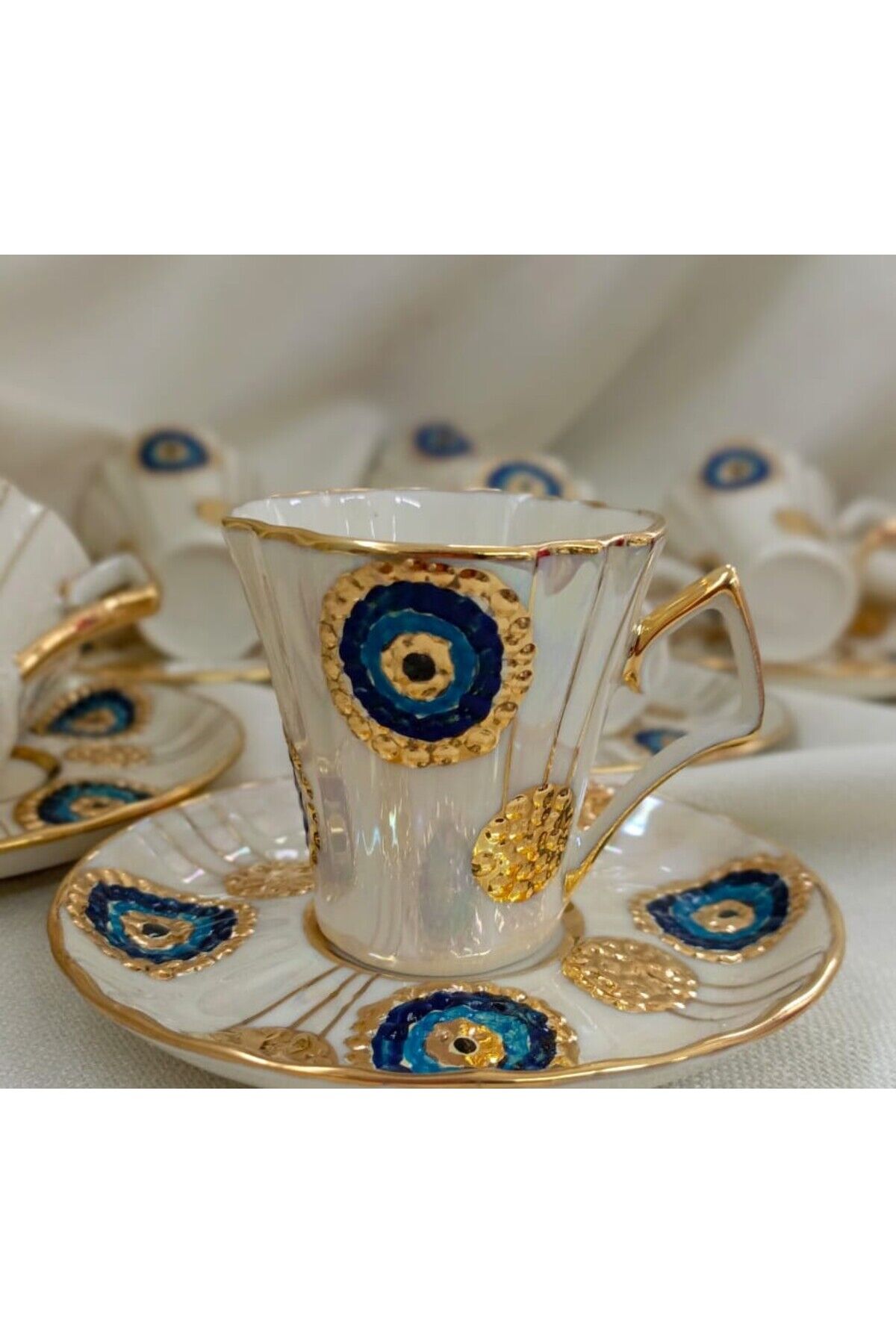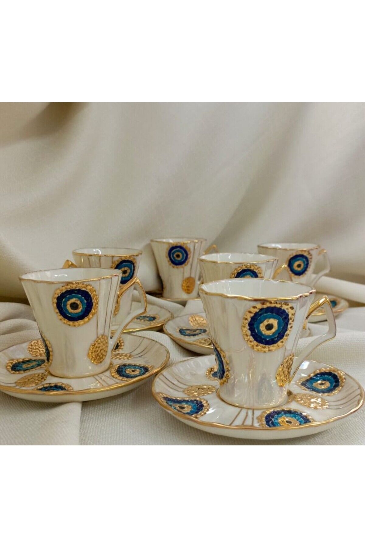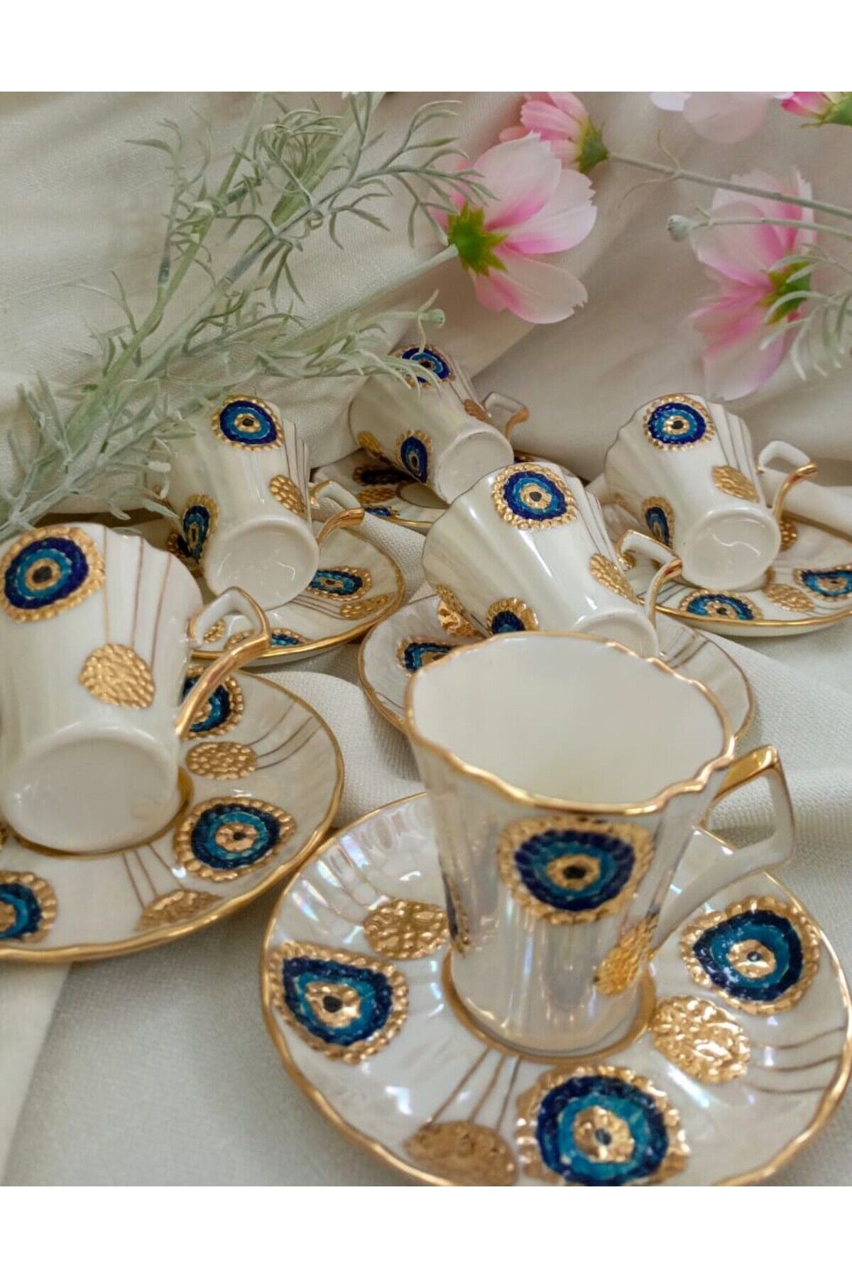 NAZAR BONCUĞU PORSELEN EL BOYAMA KAHVE FİNCAN TAKIMI
