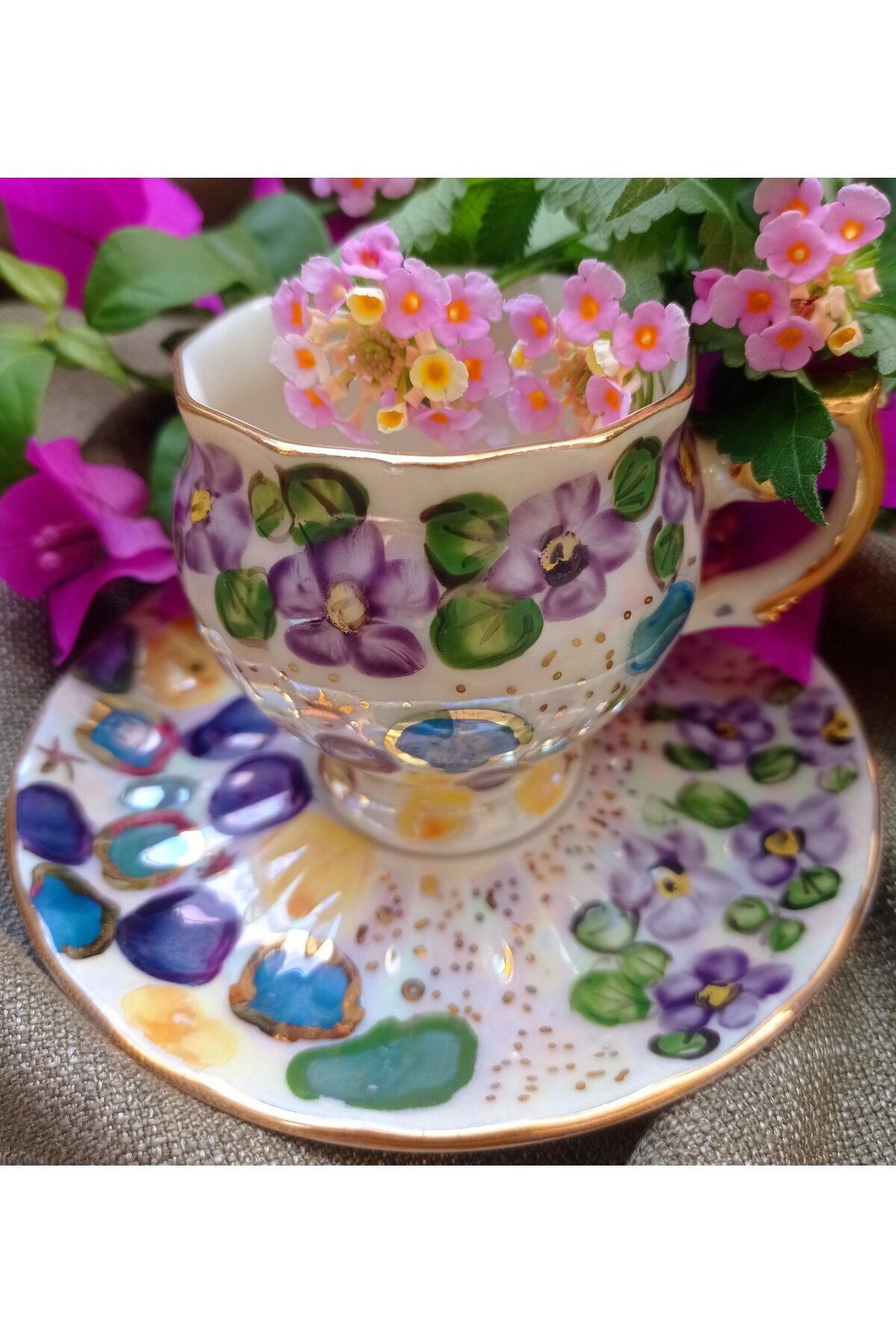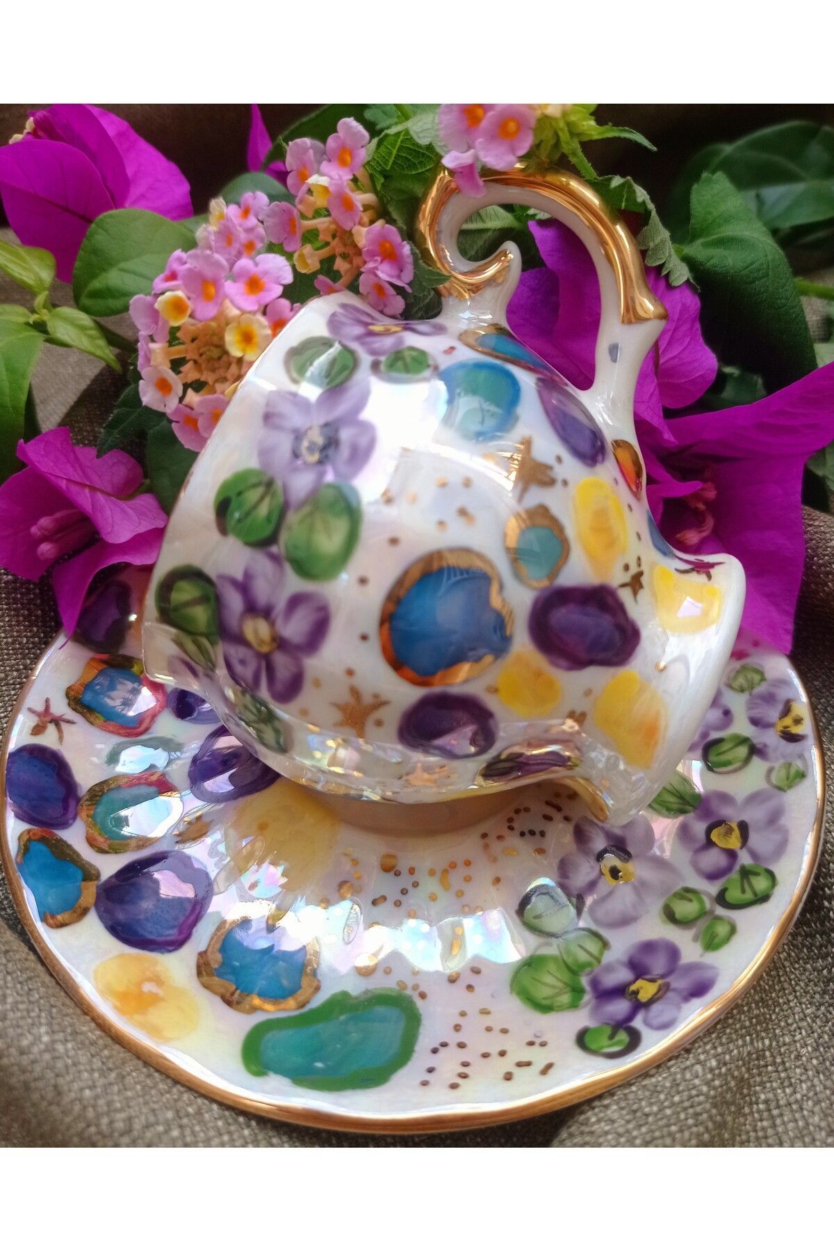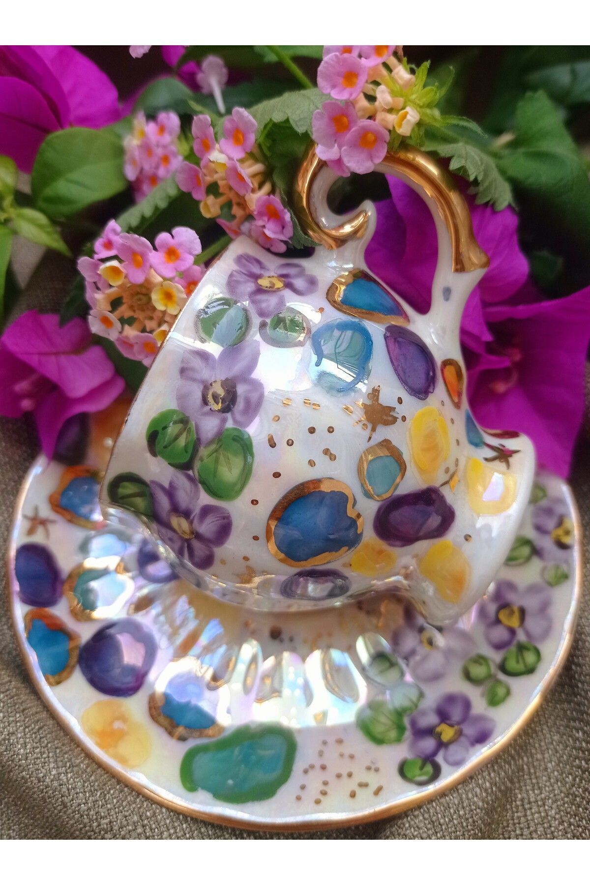 Nazar Boncuğu Porselen El Dekor Boyama 2li Fincan Takımı