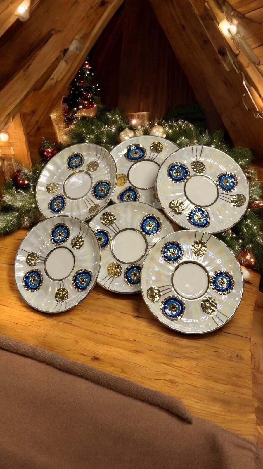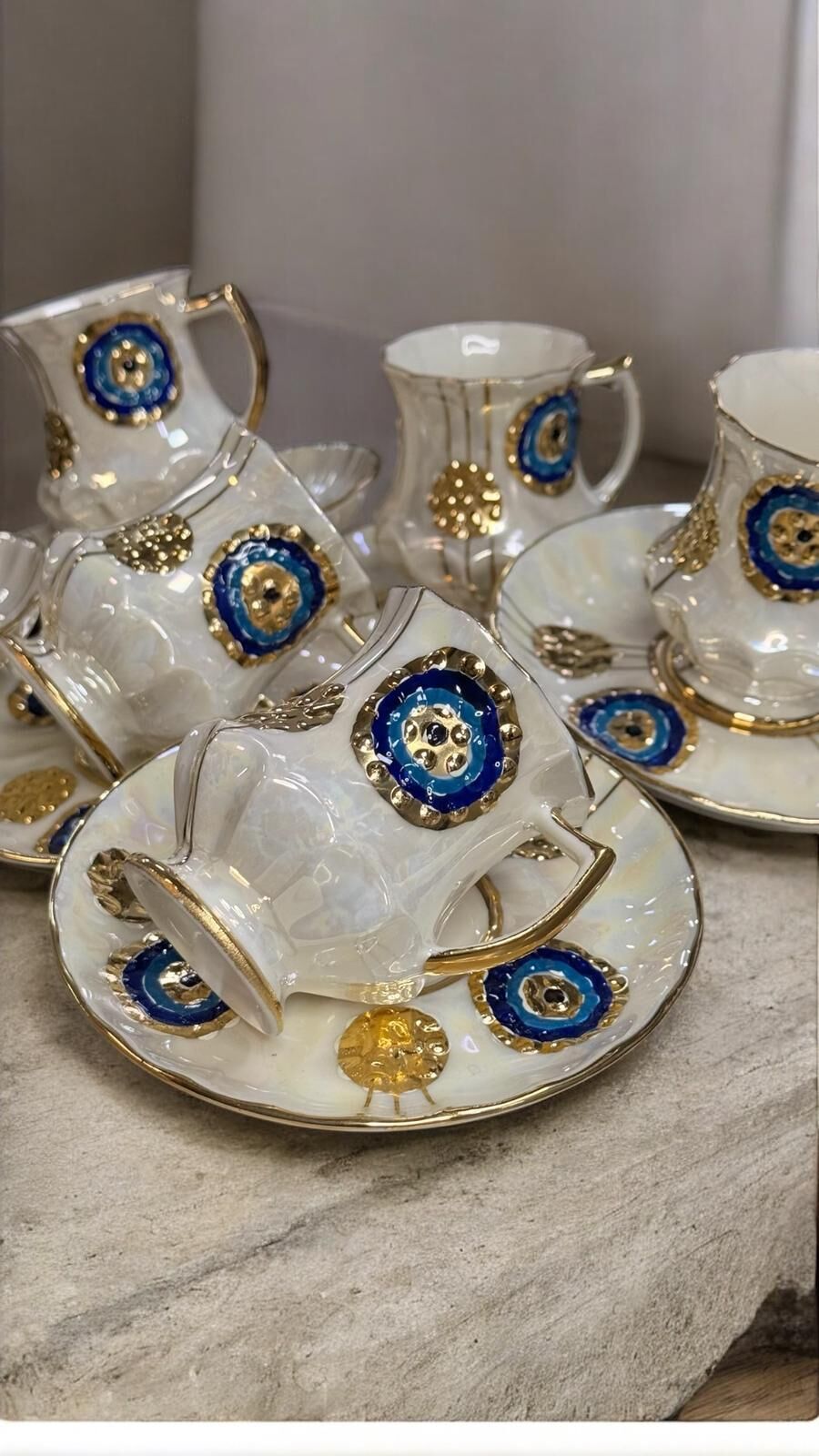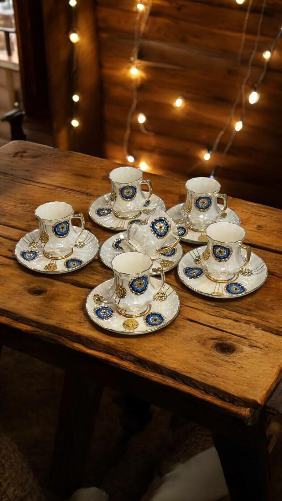 Her bir parça özenle elde boyanmış olup, nazar motifleriyle geleneksel ve modern estetiği birleştirir.