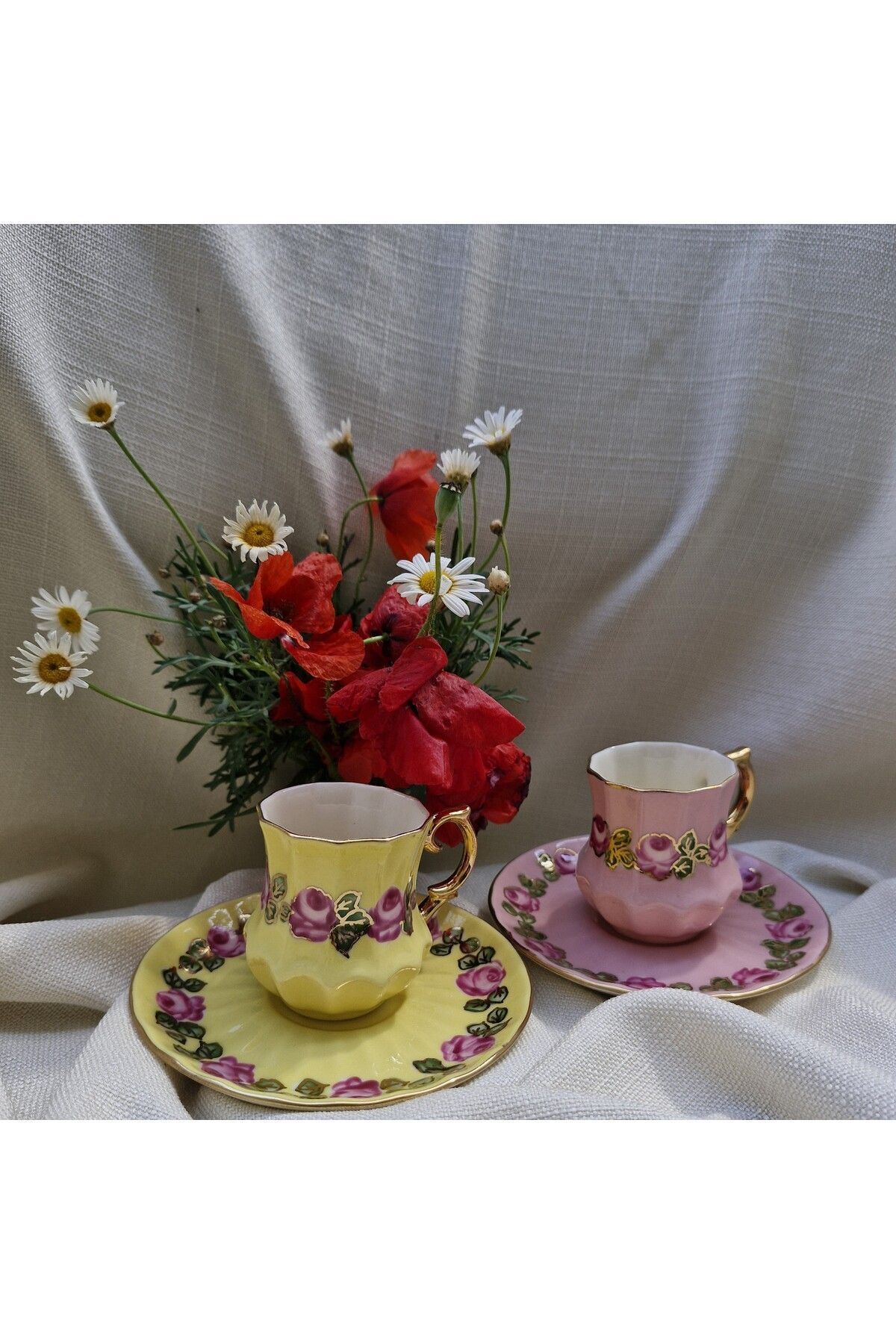 Pervil Porselen El Boyama 2li Fincan Takımı