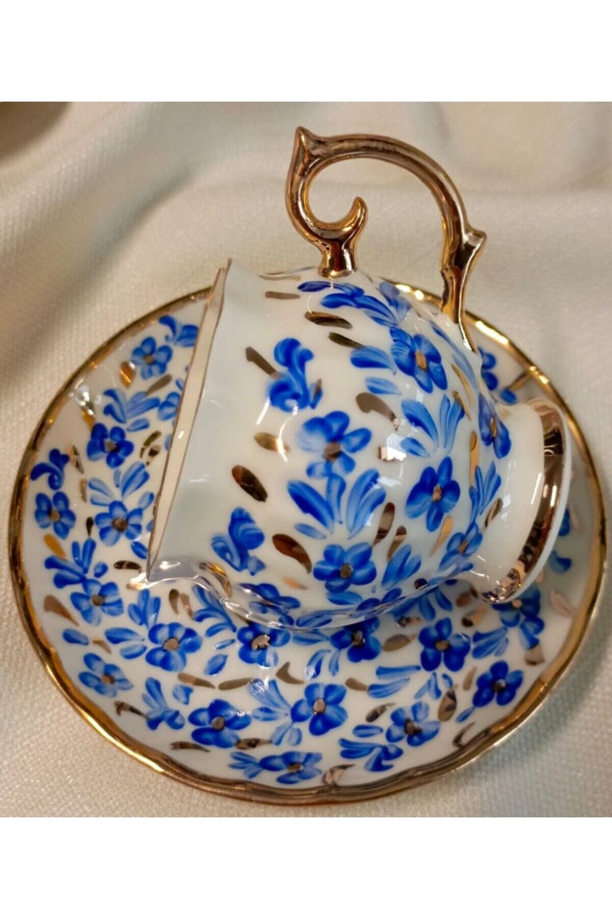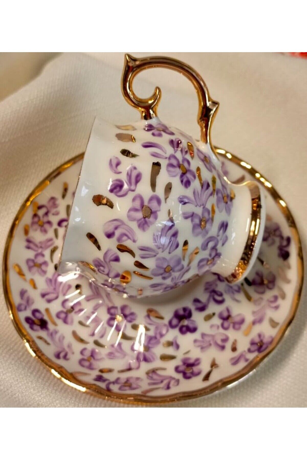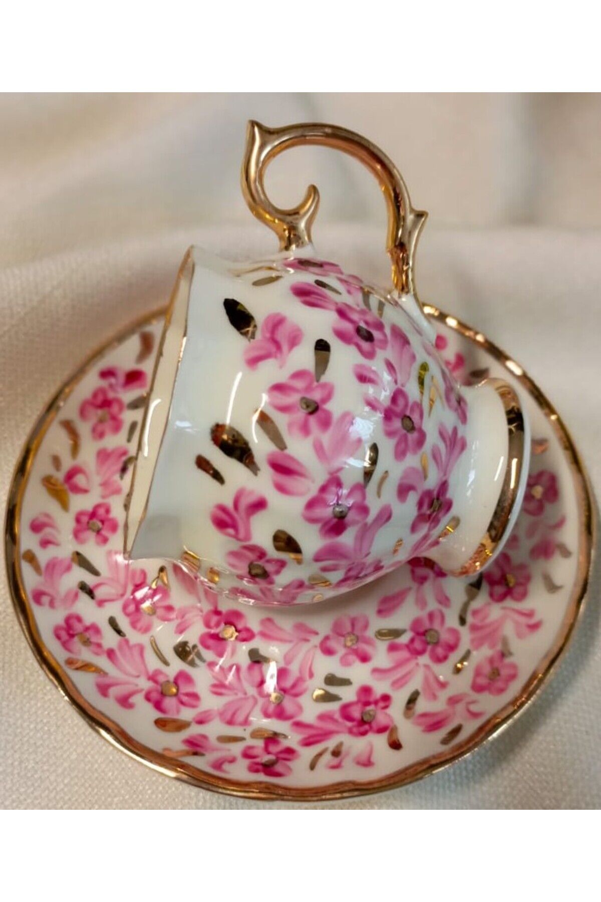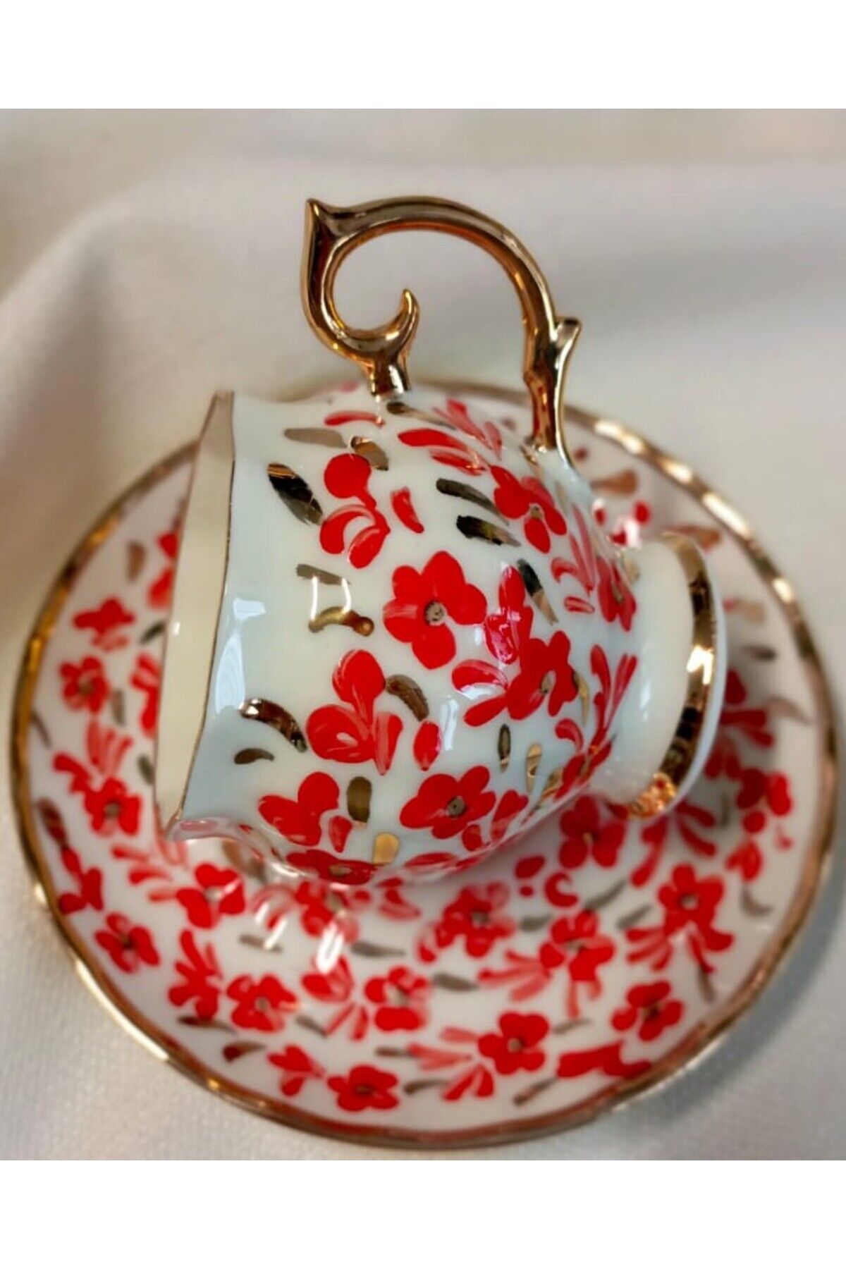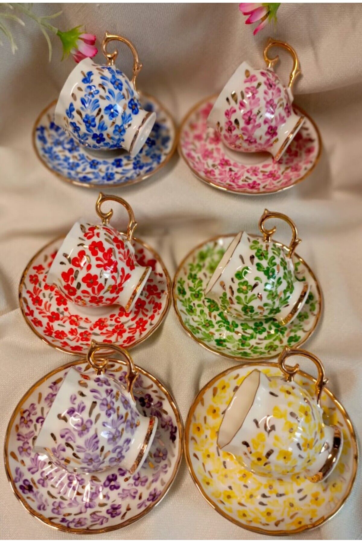 PERVİZ KARÇİÇEK PORSELEN EL BOYAMA KAHVE FİNCAN TAKIMI