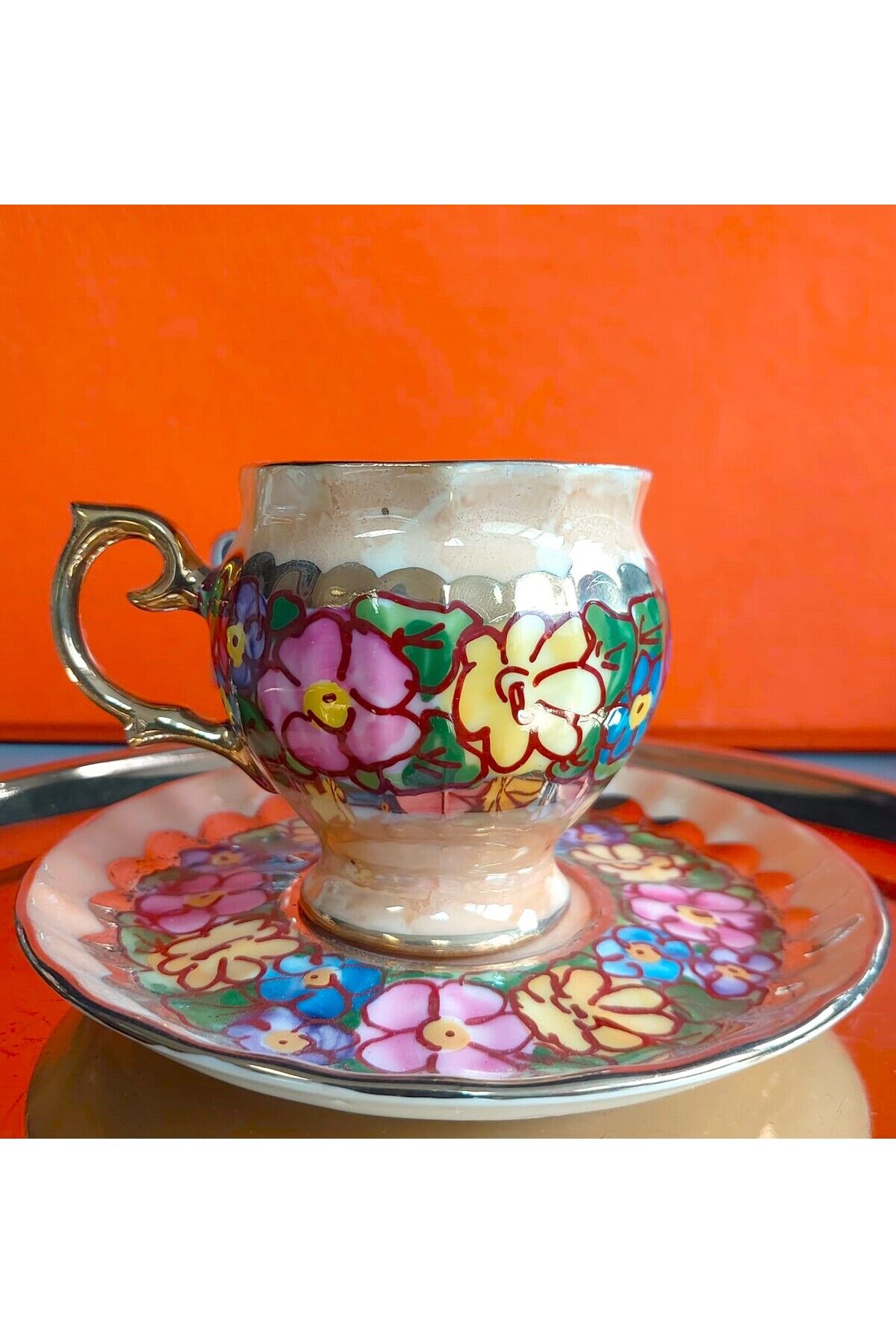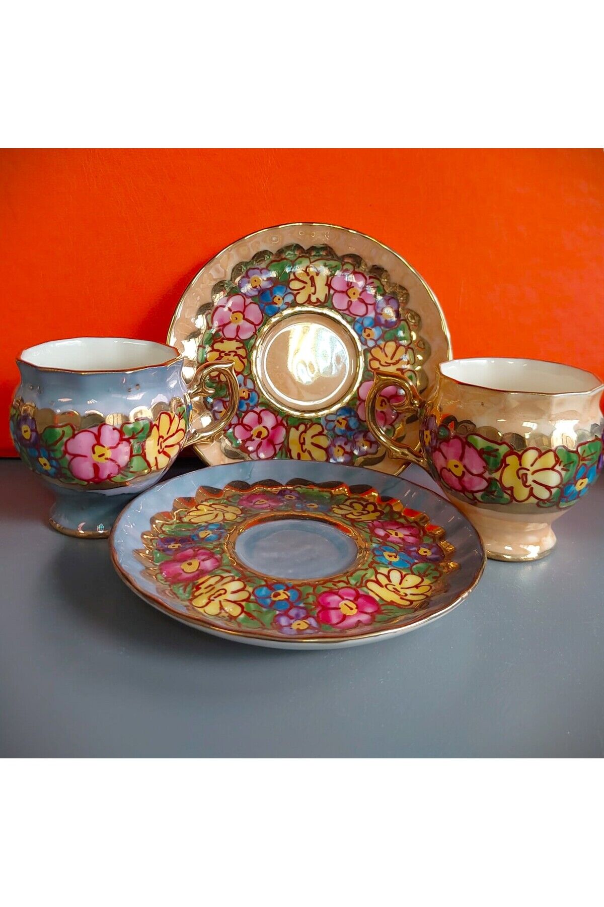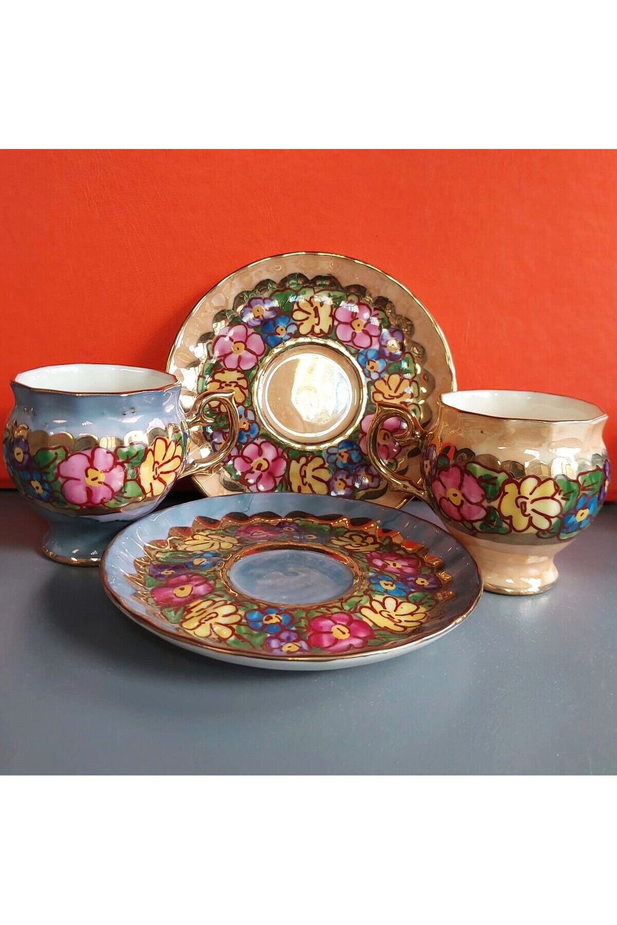 Perviz Lebriz Porselen El Boyama 2li Kahve Fincan Takımı