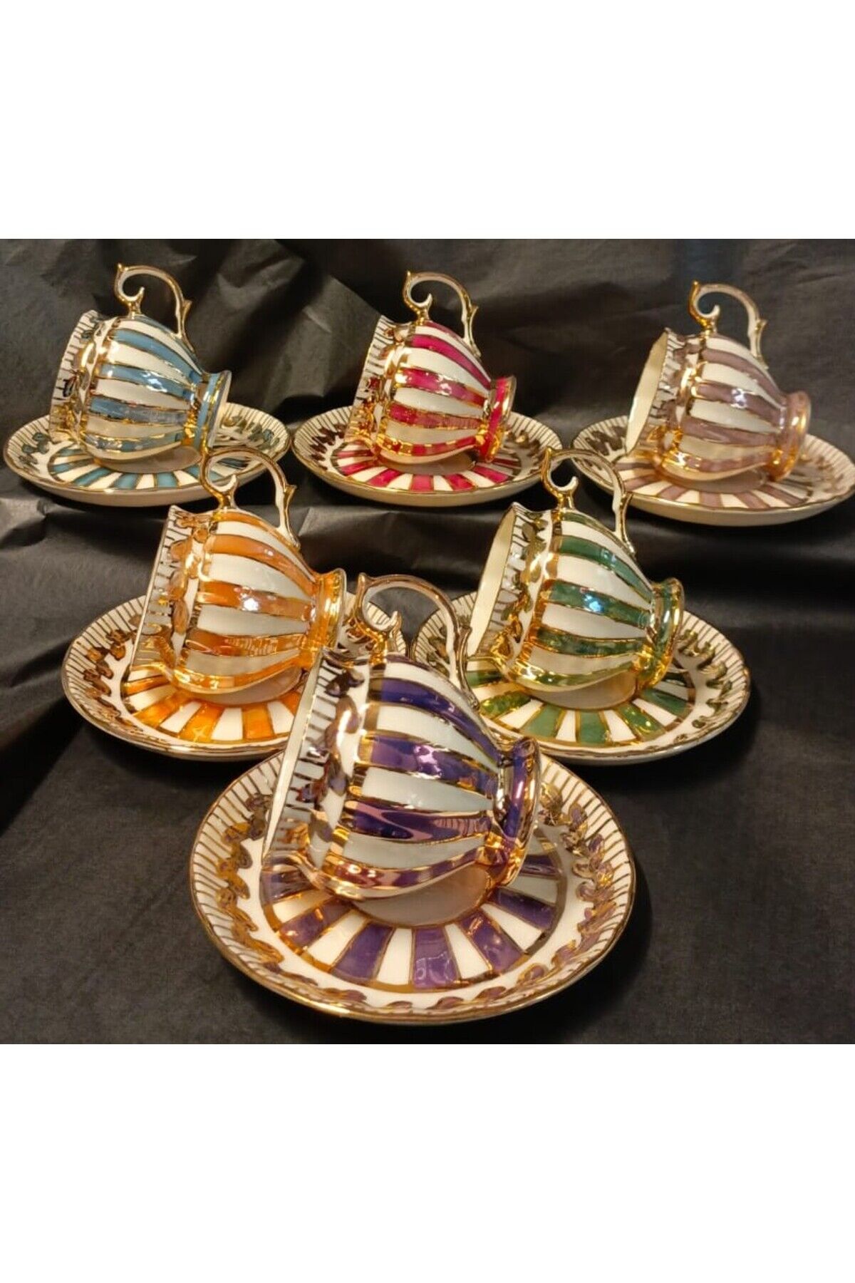 PERVİZ PORSELEN EL BOYAMA 6LI FİNCAN TAKIMI