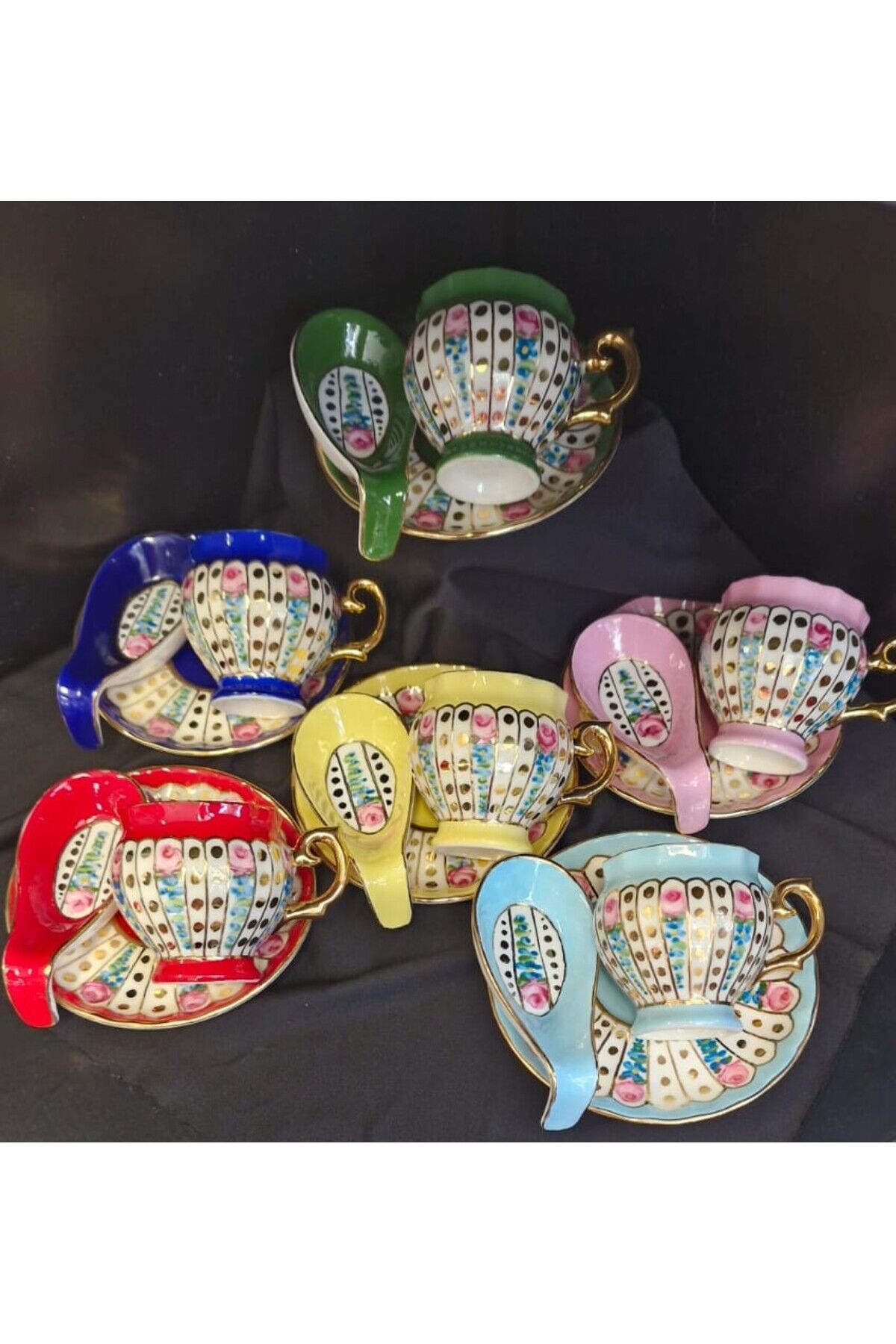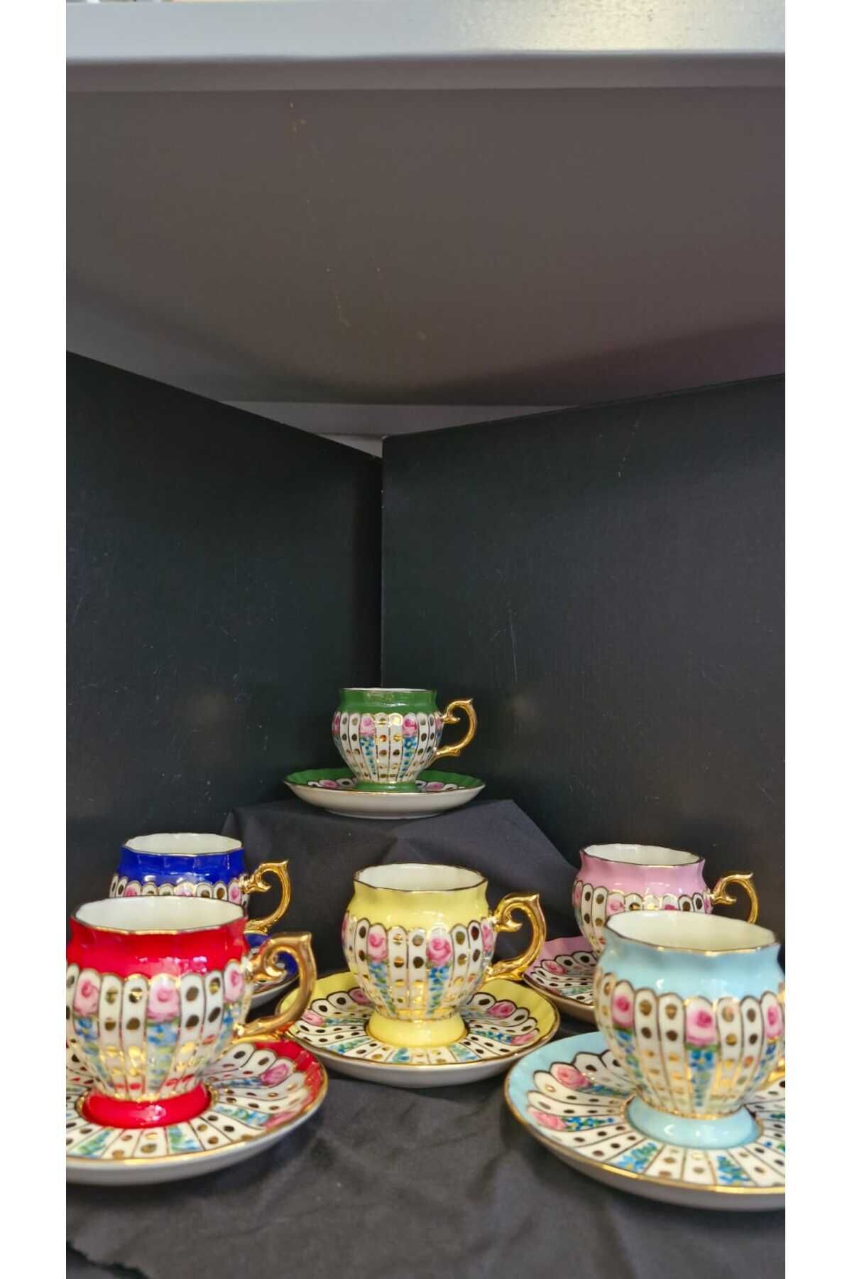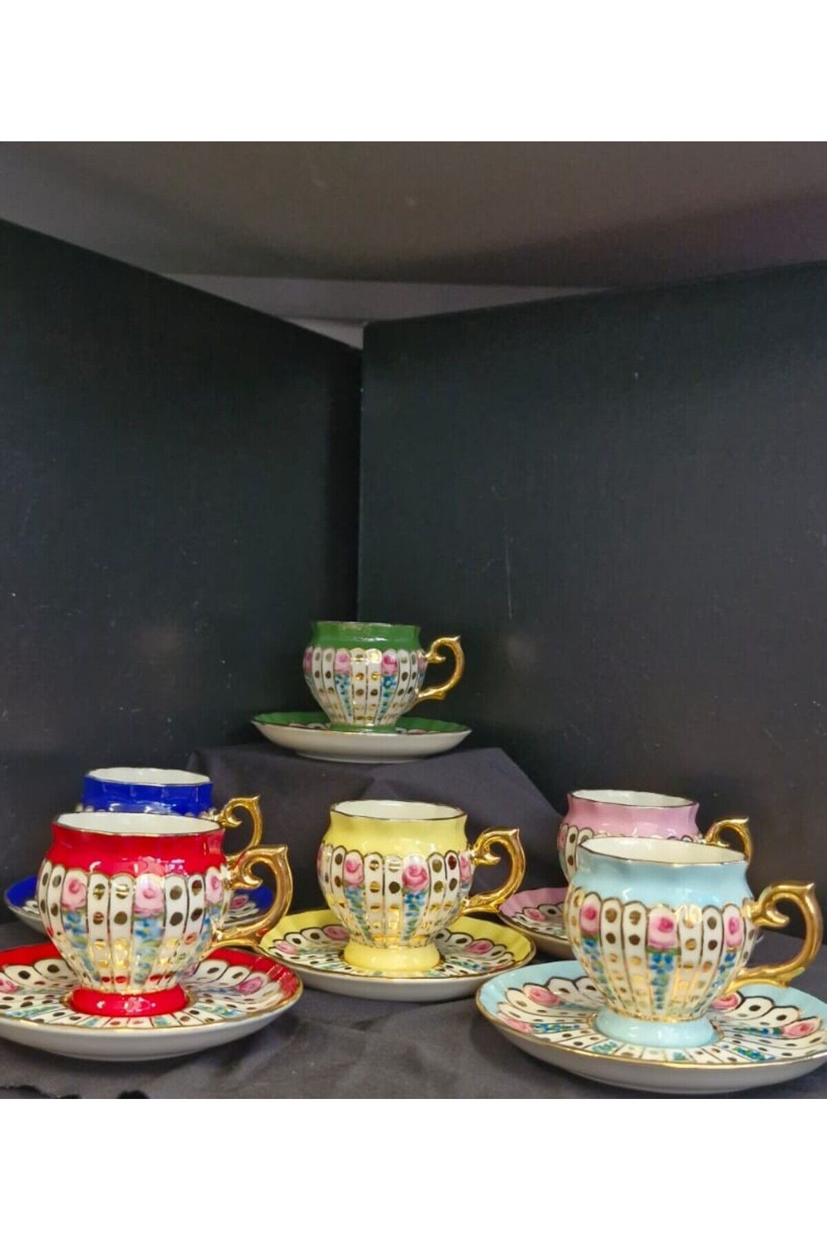 PERVİZ PORSELEN EL DEKOR BOYAMA KAHVE FİNCANI VE LOKUMLUK
