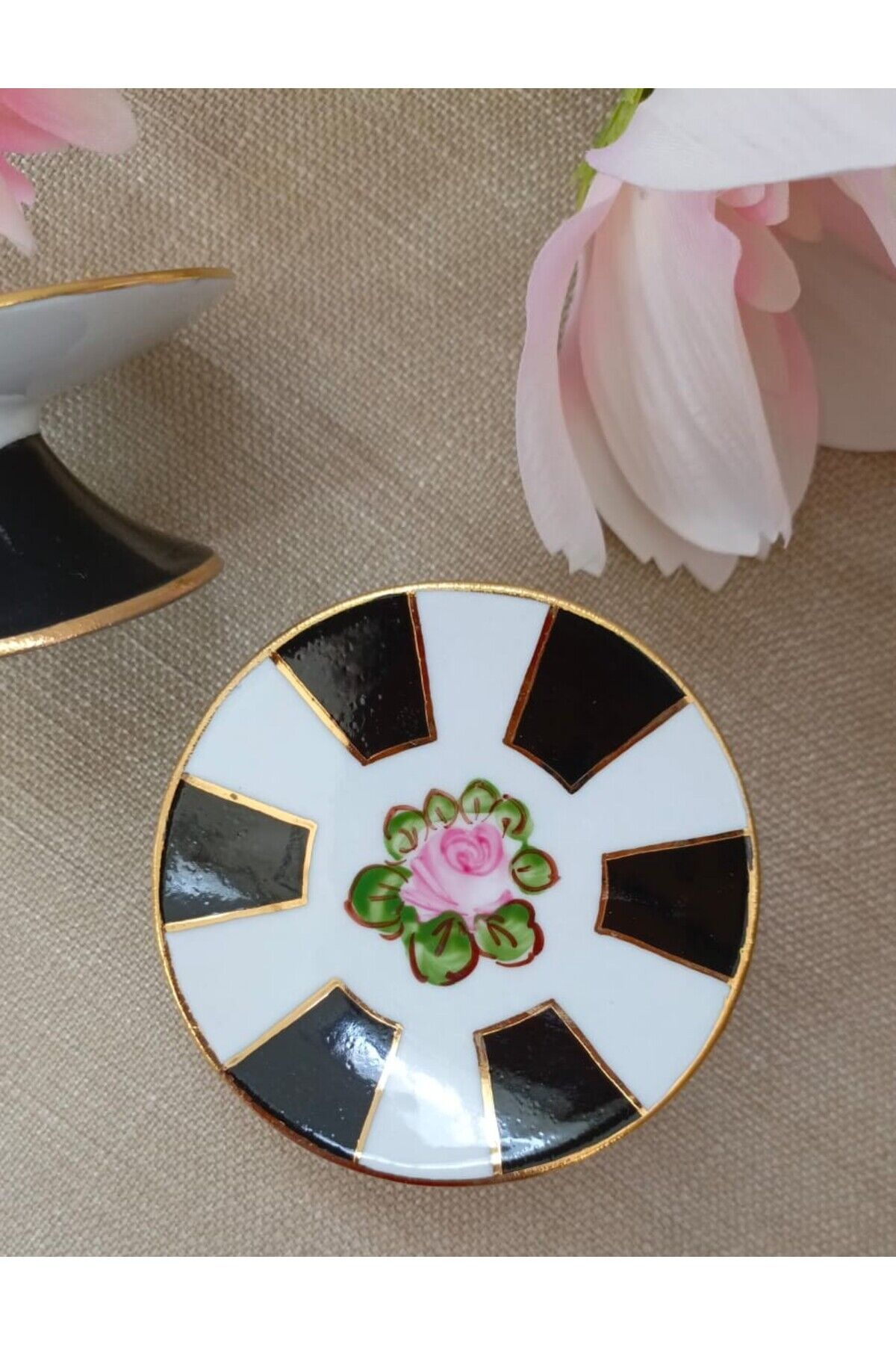 Ürünümüz tamamen el boyaması olup 6 adettir.; Çapı 7,5 cm dir.; ÜRÜNÜMÜZ KAHVE SUNUMLARINIZA ZARAFET VE SADELİĞİNŞIKLIĞINI SİZE SUNACAK ŞEKİLDE TASARLANMIŞTIR.; SEVDİKLERİNİZE KEYİFLİ VE ŞIK SUNUMLAR HAZIRLAYIPKENDİNİZİ VE SEVDİKLERİNİZİ MUTLU EDİN.; ÜRÜNLERİMİZ SANATÇILARIMIZ TARAFINDAN TAMAMEN ELDEBOYANMIŞ OLUP 24AYAR ALTINLA ZENGİNLEŞTİRİLMİŞTİR.; BULAŞIK MAKİNASINA GİRER ANCAK DAHA UZUN ÖMÜRLÜ OLMASIAÇISINDAN TAVSİYE ETMİYORUZ.; KİMYASALLARDAN UZAK TUTUN (ÇAMAŞIRSUYU, KİREÇ SÖKÜCÜV.; S.; ) GELECEĞİN ANTİKASI