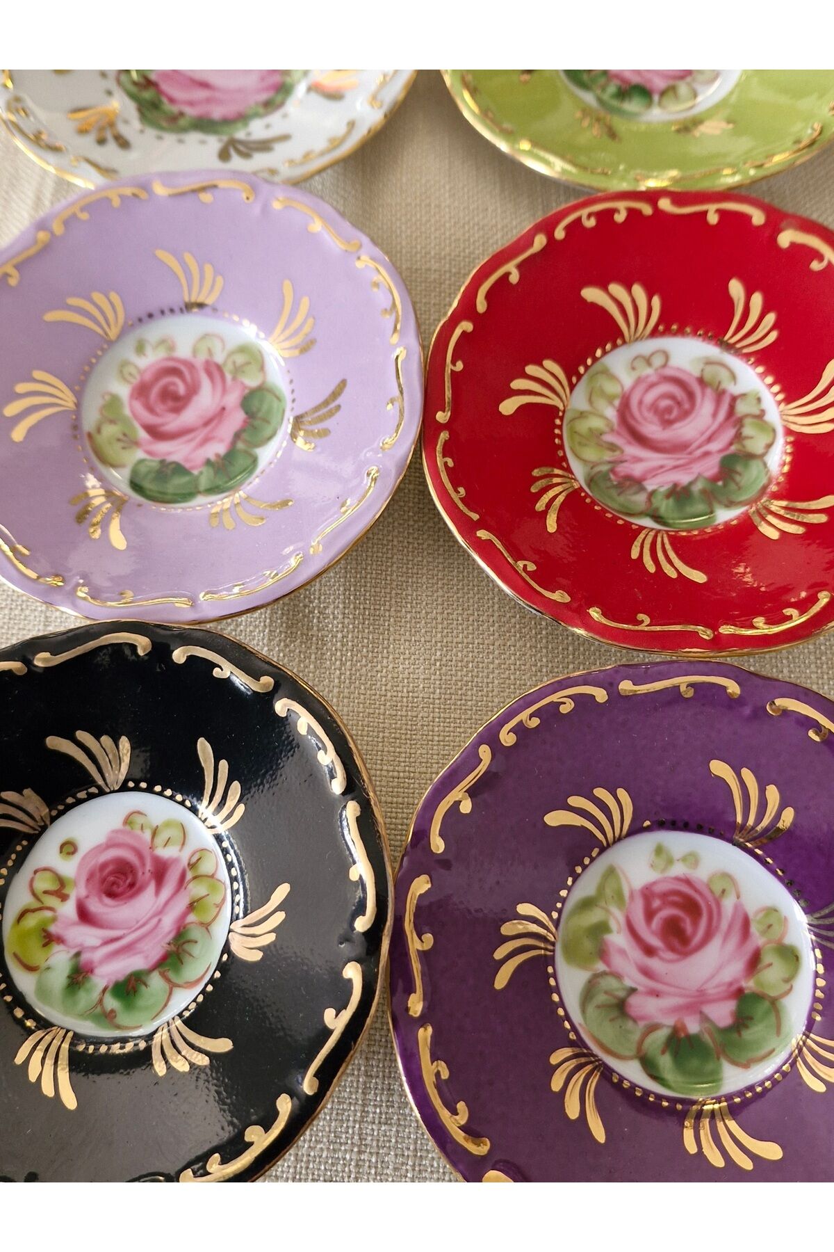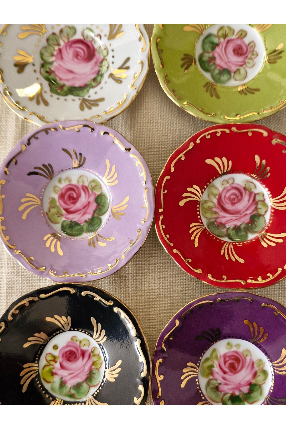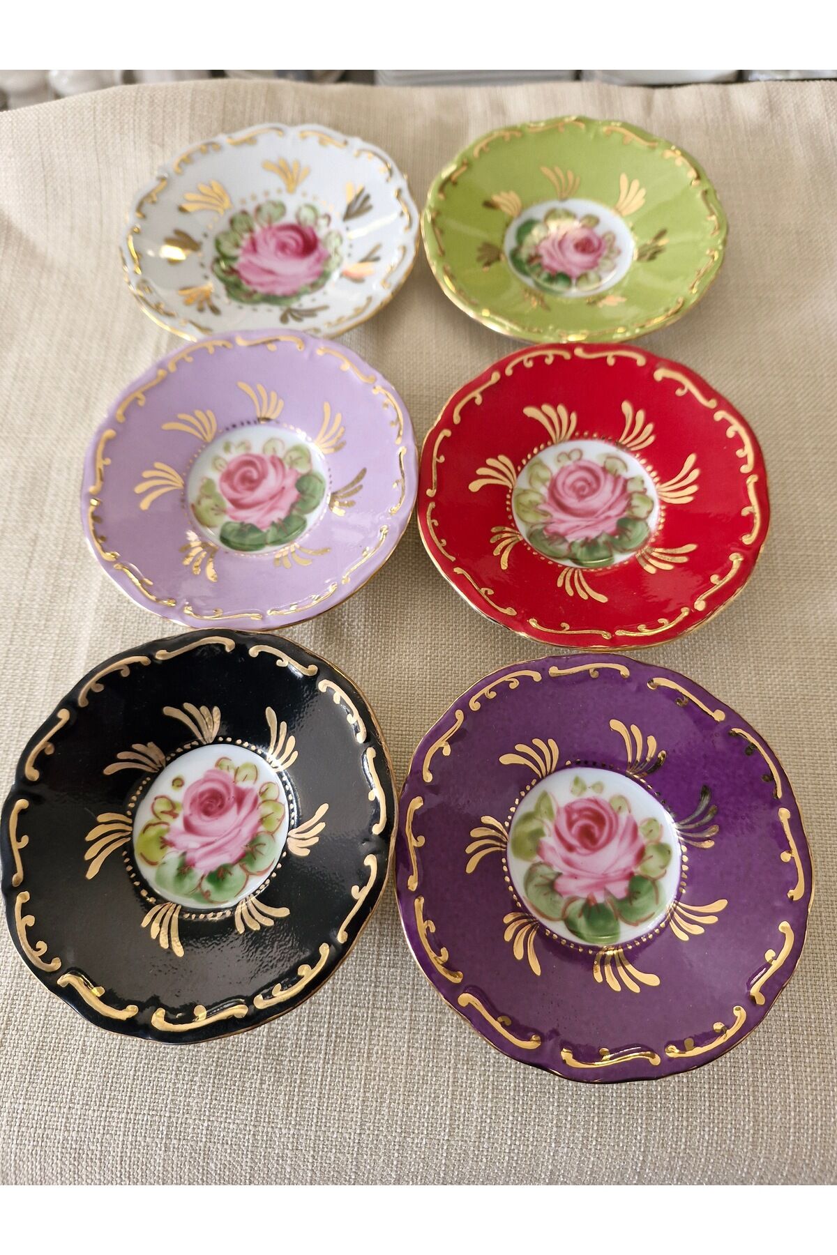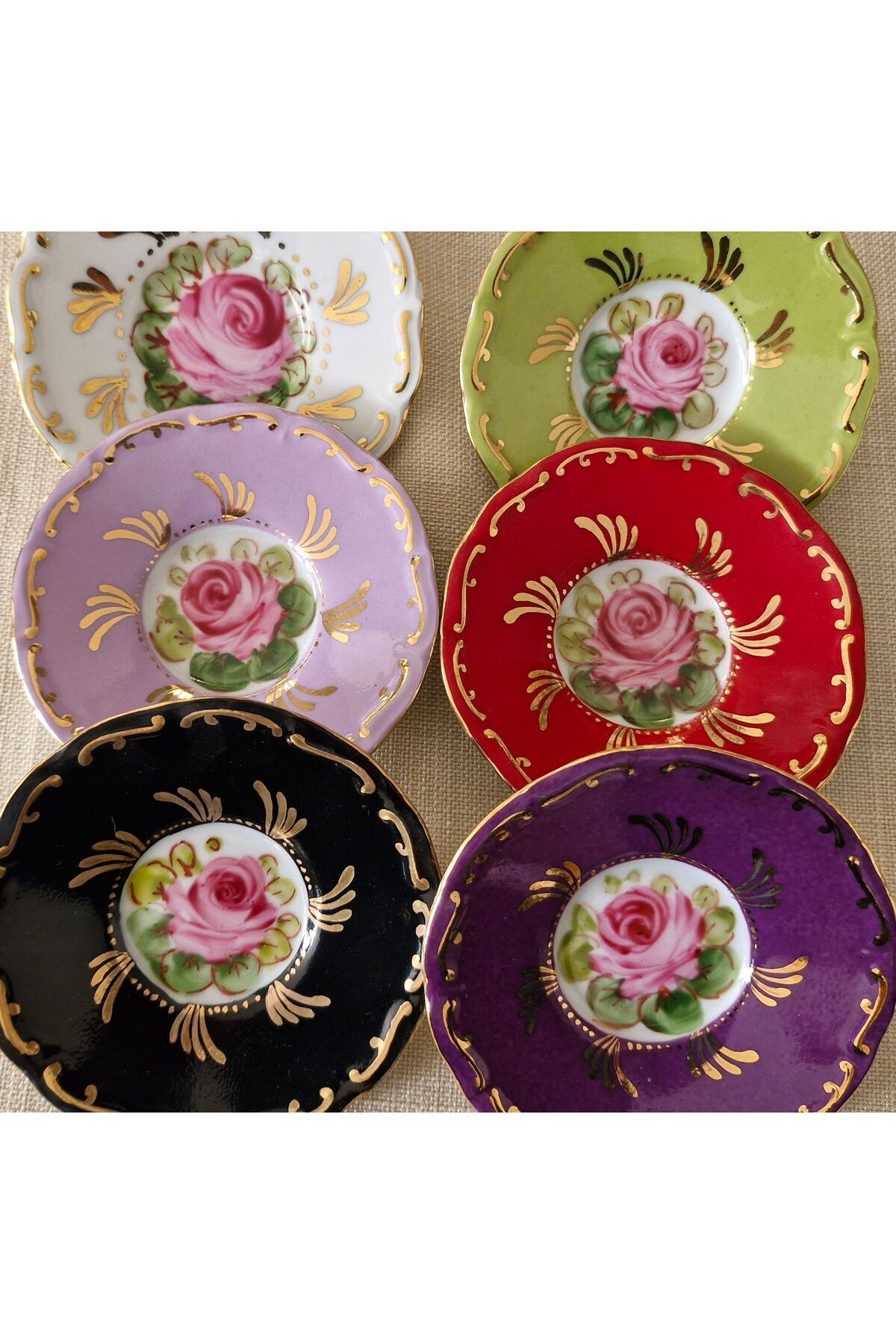 Porselen el boyama 6li cay tabagi seti