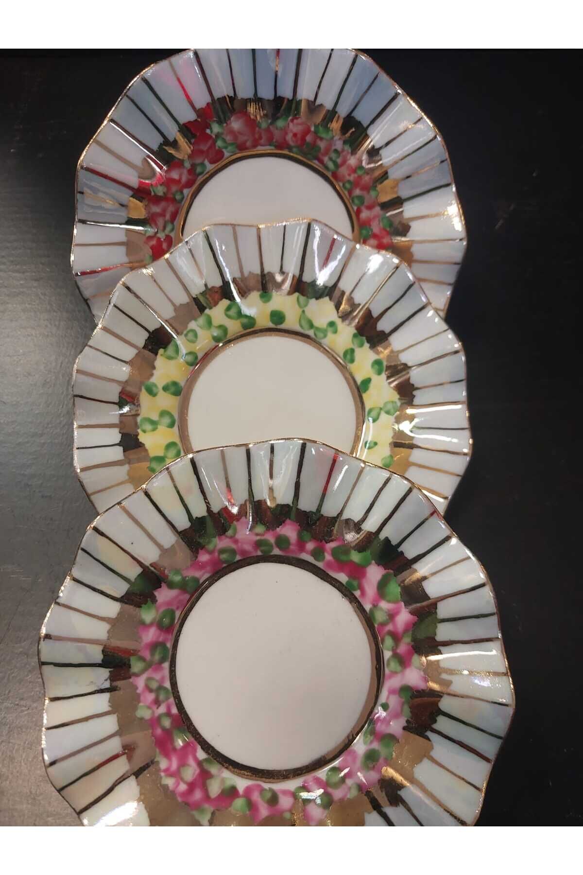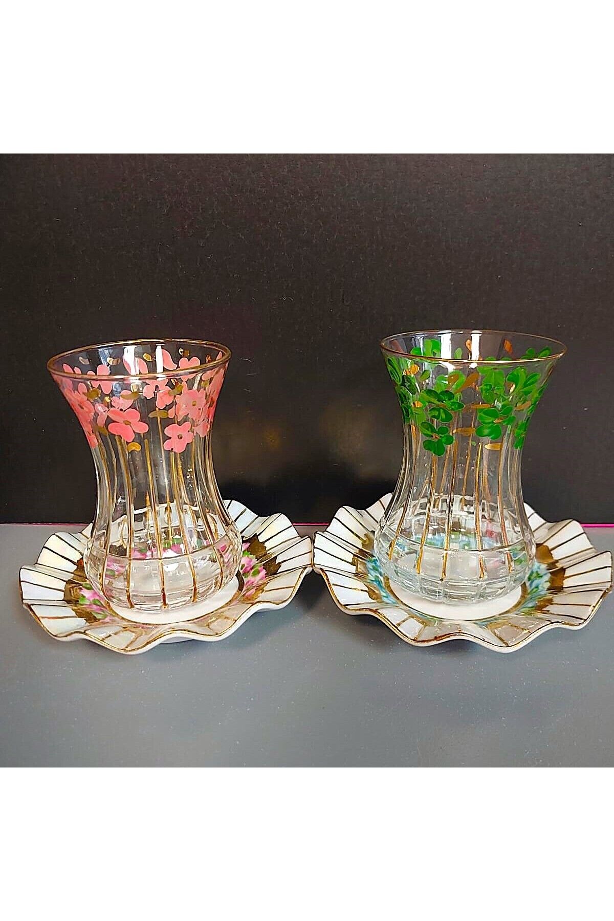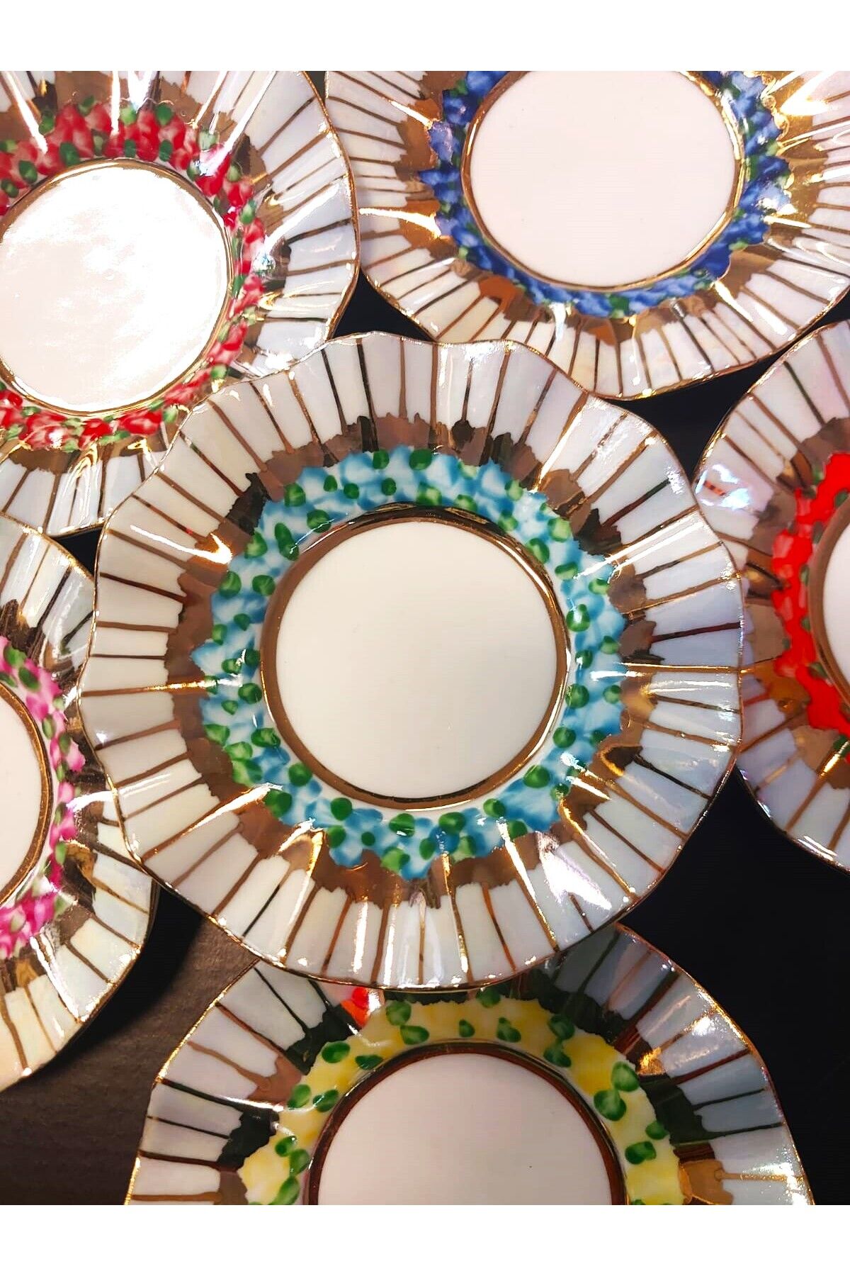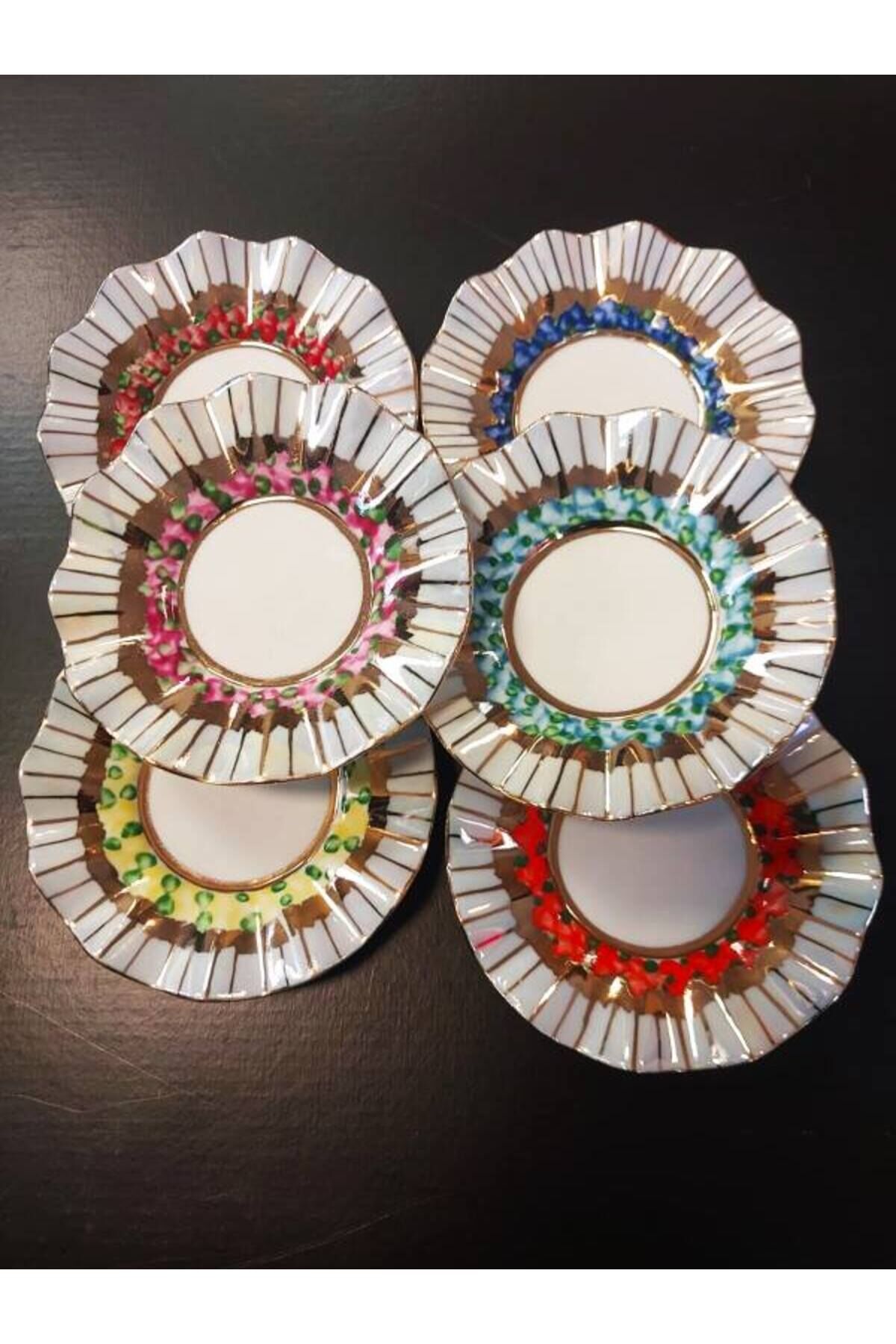 Porselen El Boyama Altı Kişilik Çay Tabağı Seti