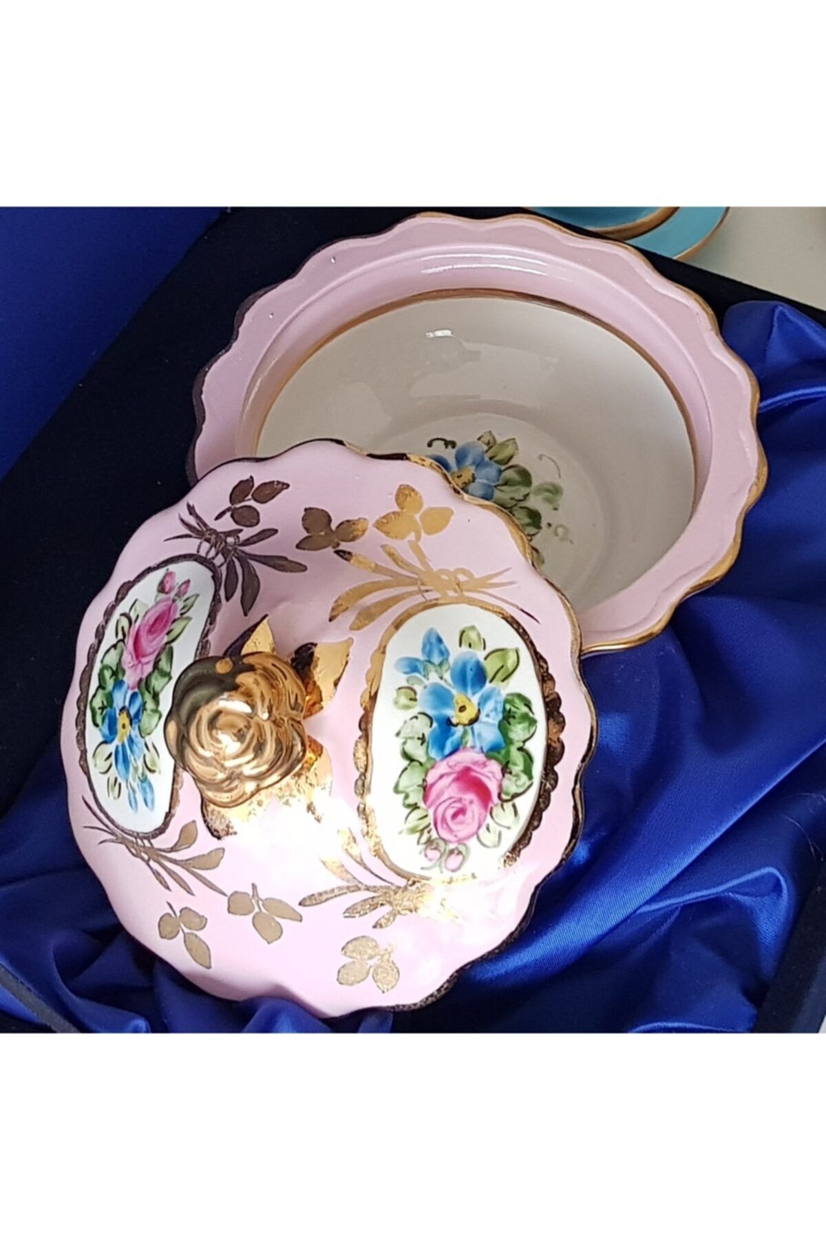 Zarif porselen malzeme kullanılarak üretilmiş, uzun ömürlü ve dayanıklı bir yapıya sahiptir.; El boyama tekniği ile detaylandırılan gül bahar teması, her kullanımda göz alıcı bir estetik sunar.; Şık tasarımıyla mutfak dekorasyonunuza modern bir dokunuş katar ve misafirlerinizi etkilemenize olanak tanır.; Porselen malzemesi sayesinde kolay temizlenebilir, bakımı pratiktir ve leke tutmaz özelliği ile hijyenik kullanım sağlar.; Güzel görünümlü gül bahar çiçekleri ile süslenmiş sekerliği, çay saatlerinizde veya kahve molalarınızda keyifle kullanabilirsiniz.; Özel günlerinizde hediye olarak tercih edebileceğiniz şık ve anlamlı bir seçenektir.;