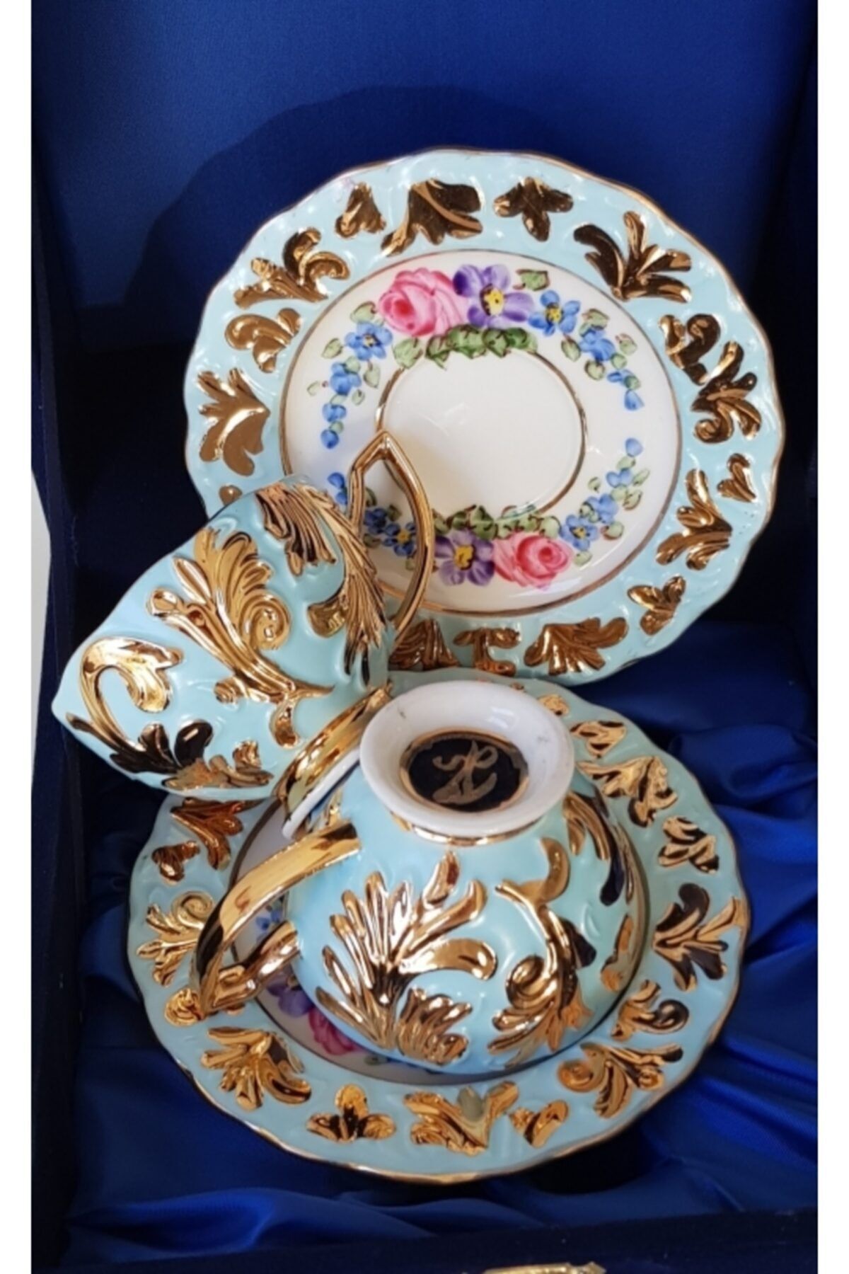 Porselen El Boyama Ikili Fincan Seti