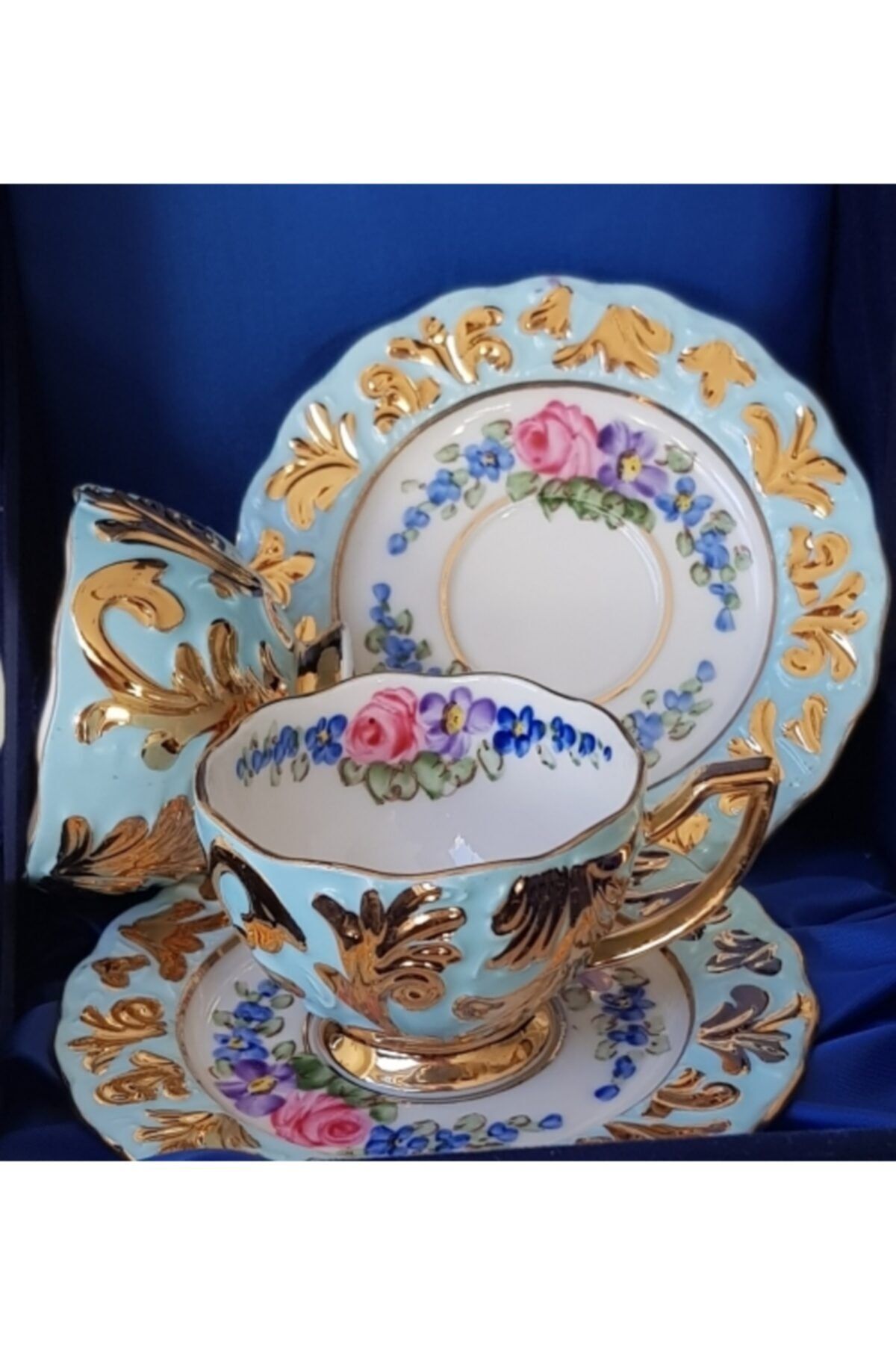 İki kişilik özel tasarımıyla, sevdiklerinizle keyifli kahve sohbetleri için ideal bir seçim; Yüksek kaliteli porselen malzemesi sayesinde uzun ömürlü kullanım ve dayanıklılık sunar; Klasik temaya sahip bu fincan seti, her türlü sofra düzenine zarif bir dokunuş katar;