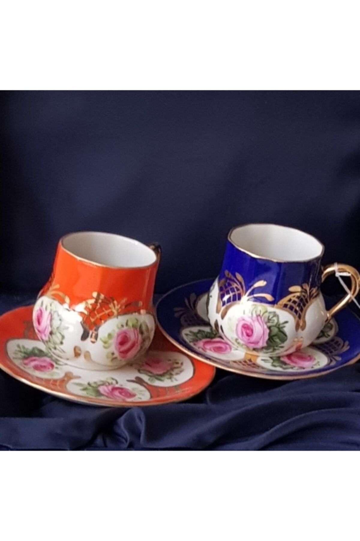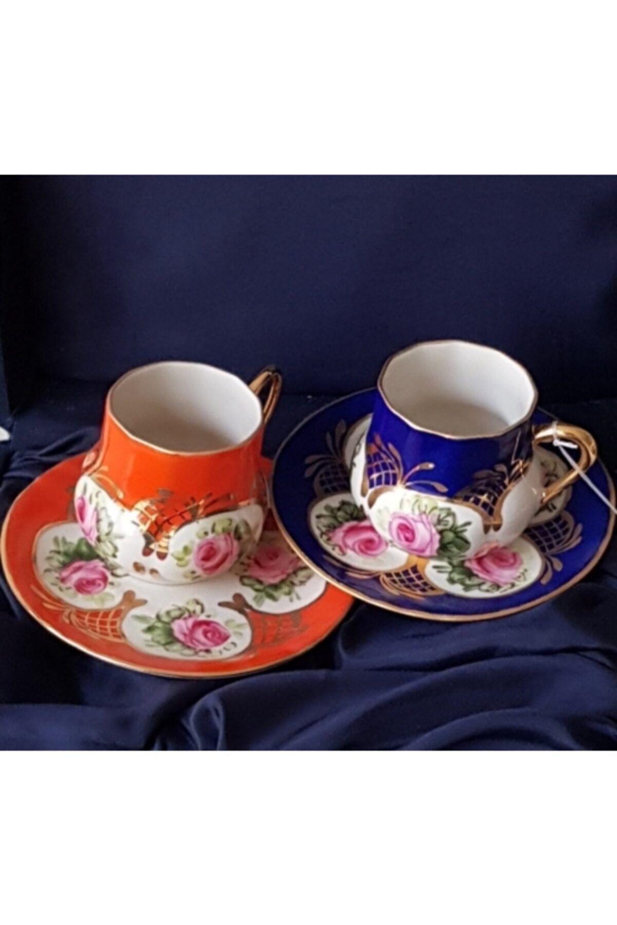 Porselen El Boyama Ikili Kahve Fincan Seti