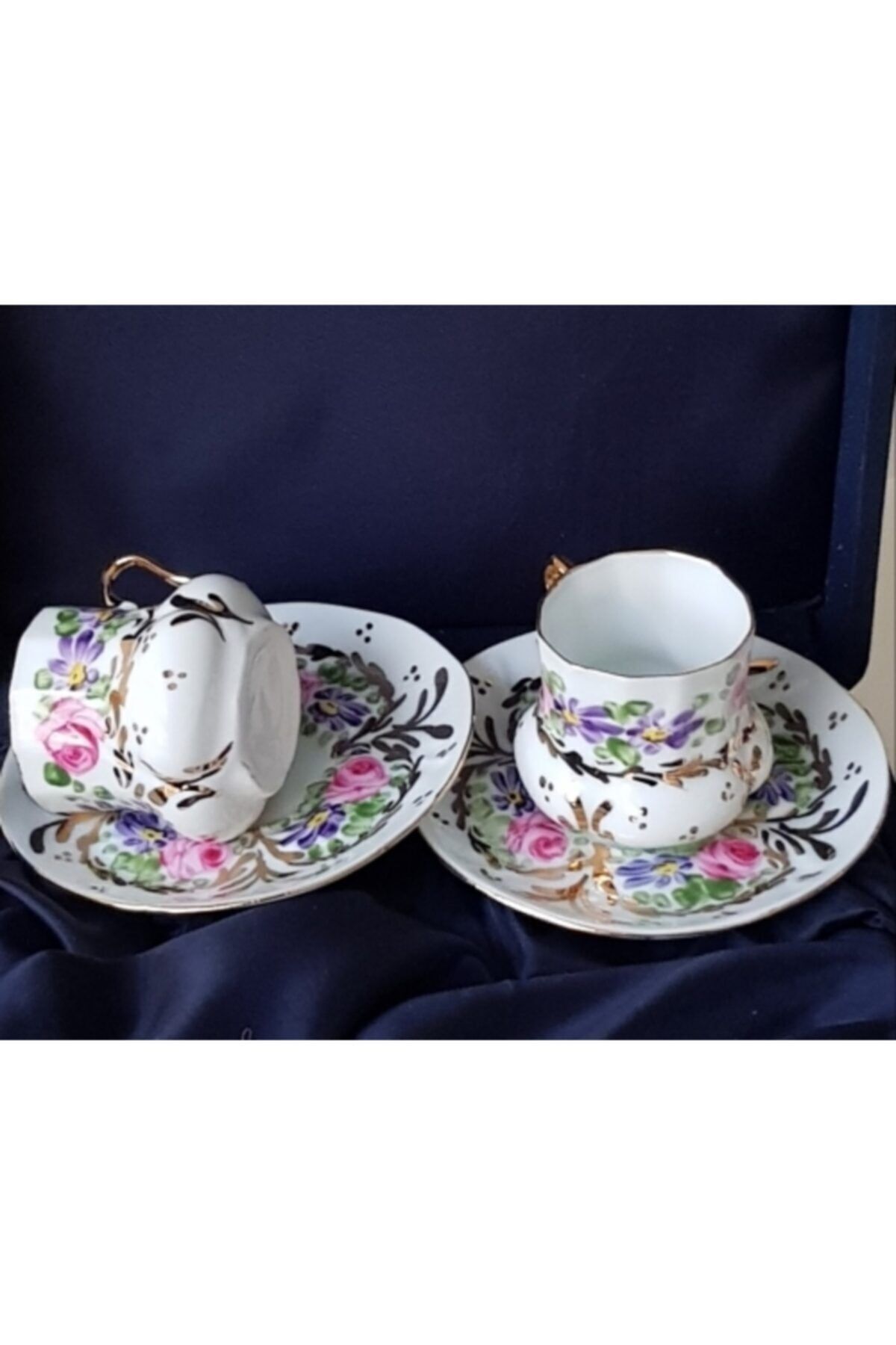 Porselen El Boyama Ikili Kahve Fincan Seti