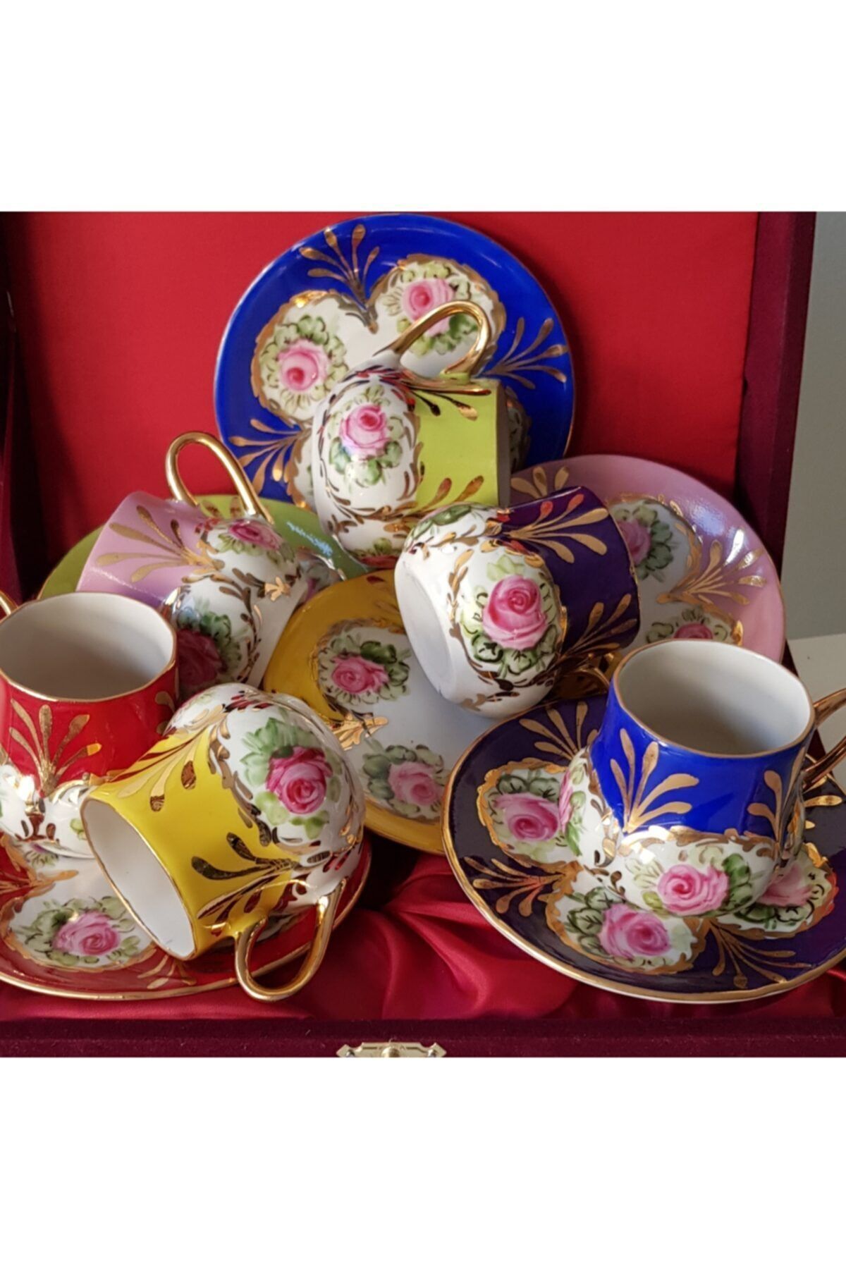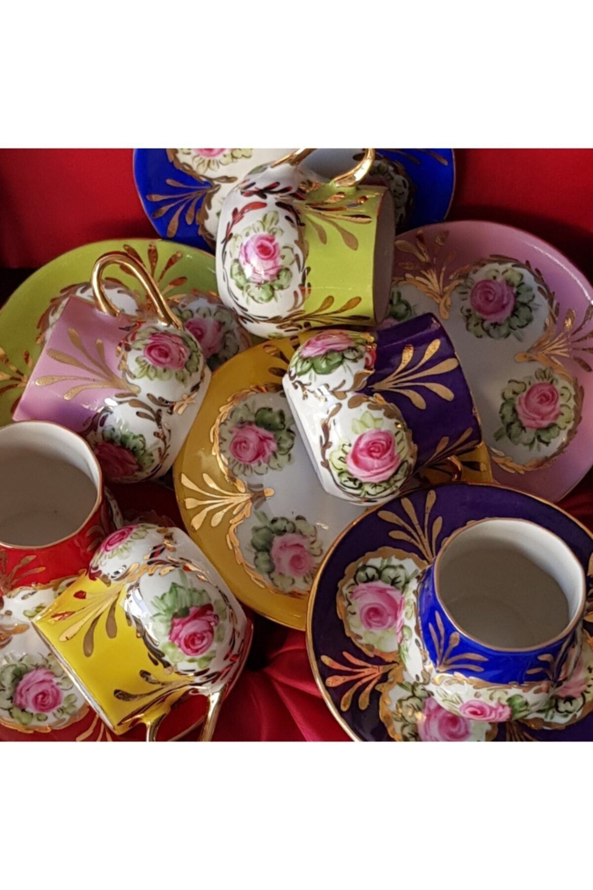 Porselen El Boyama Kahve Fincan Takimi