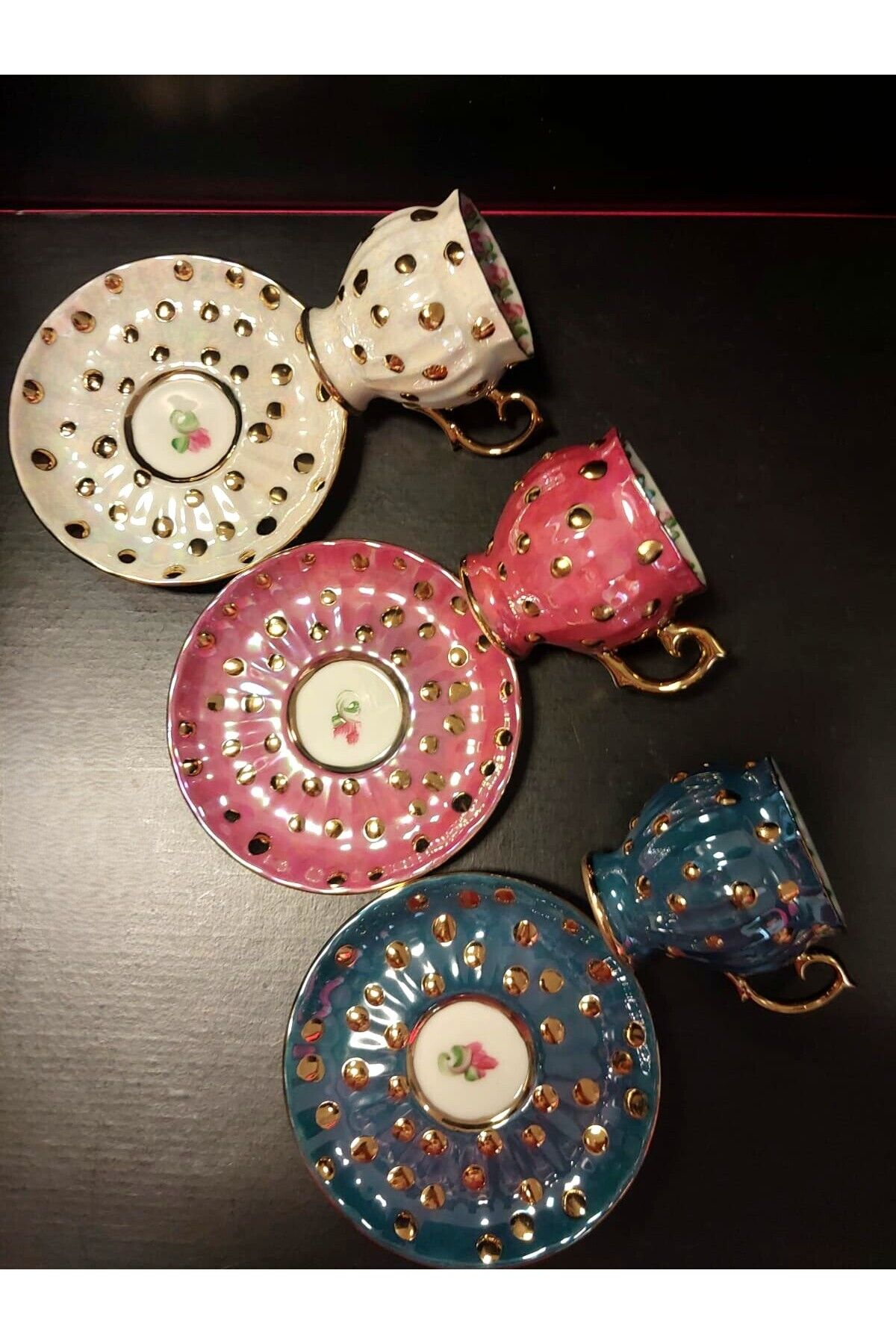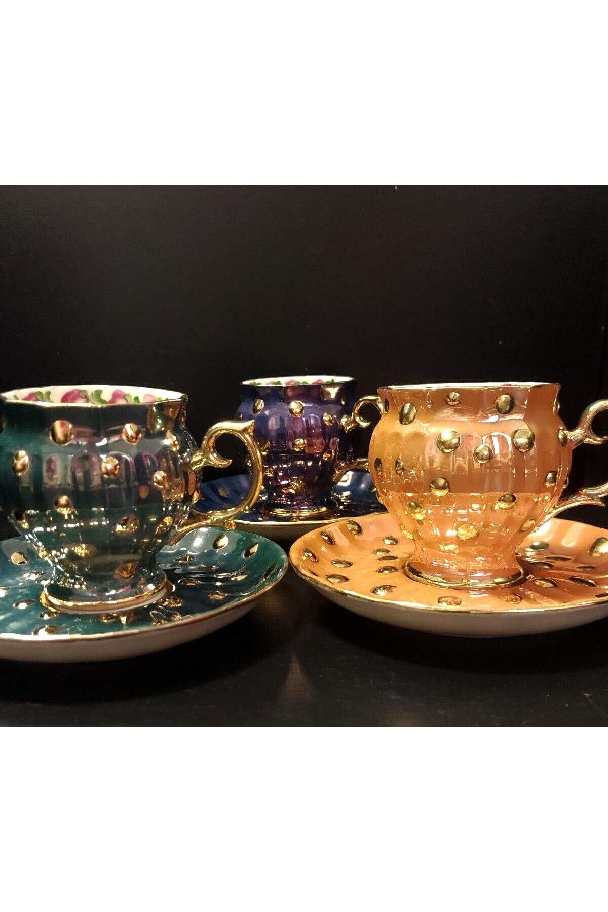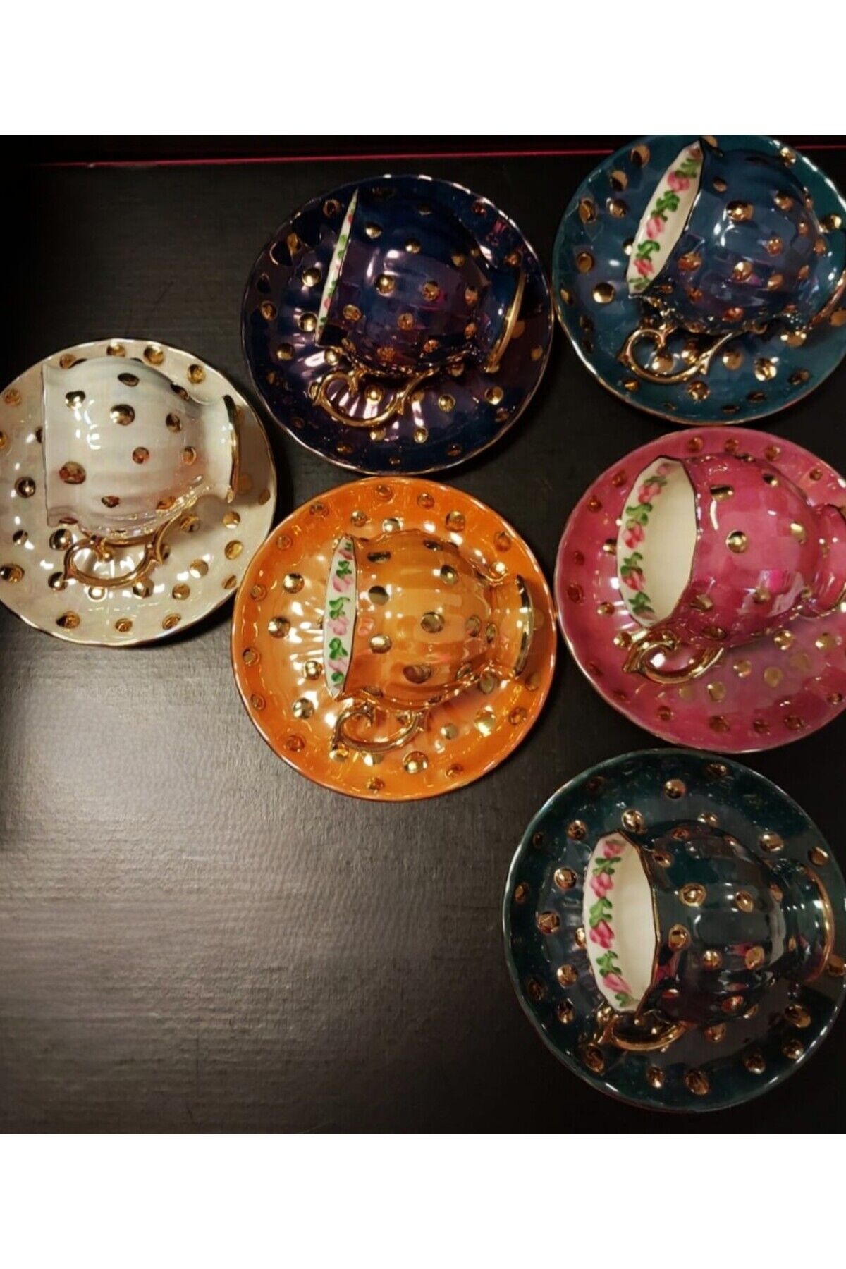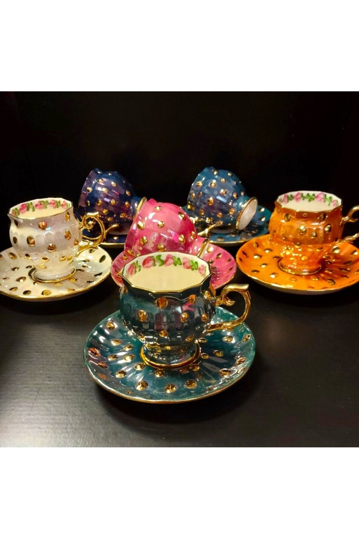 PORSELEN EL BOYAMA KAHVE FİNCAN TAKIMI ALTI KİŞİLİK