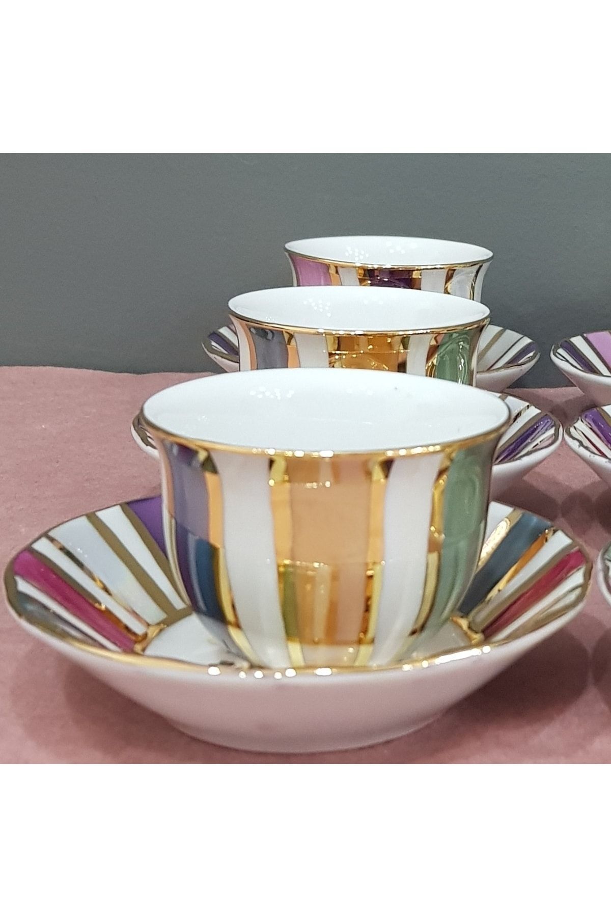 Porselen el boyama 6li mirra fincani ve tabagi; Urunlerimiz tamamen elde boyanmis olup 24ayar altinla bezenmistir; Kusursuz degier; Yarinin antikasi; 800derecede defalarca pistigi icin boyalar dayiniklidir tel ile ovalamadiktan sonra cikmaz fakat daha uzun omurlu olmasi acisindan elde sungerin yumusak tarafi ile yikamayi tavsiye ederiz; ?;